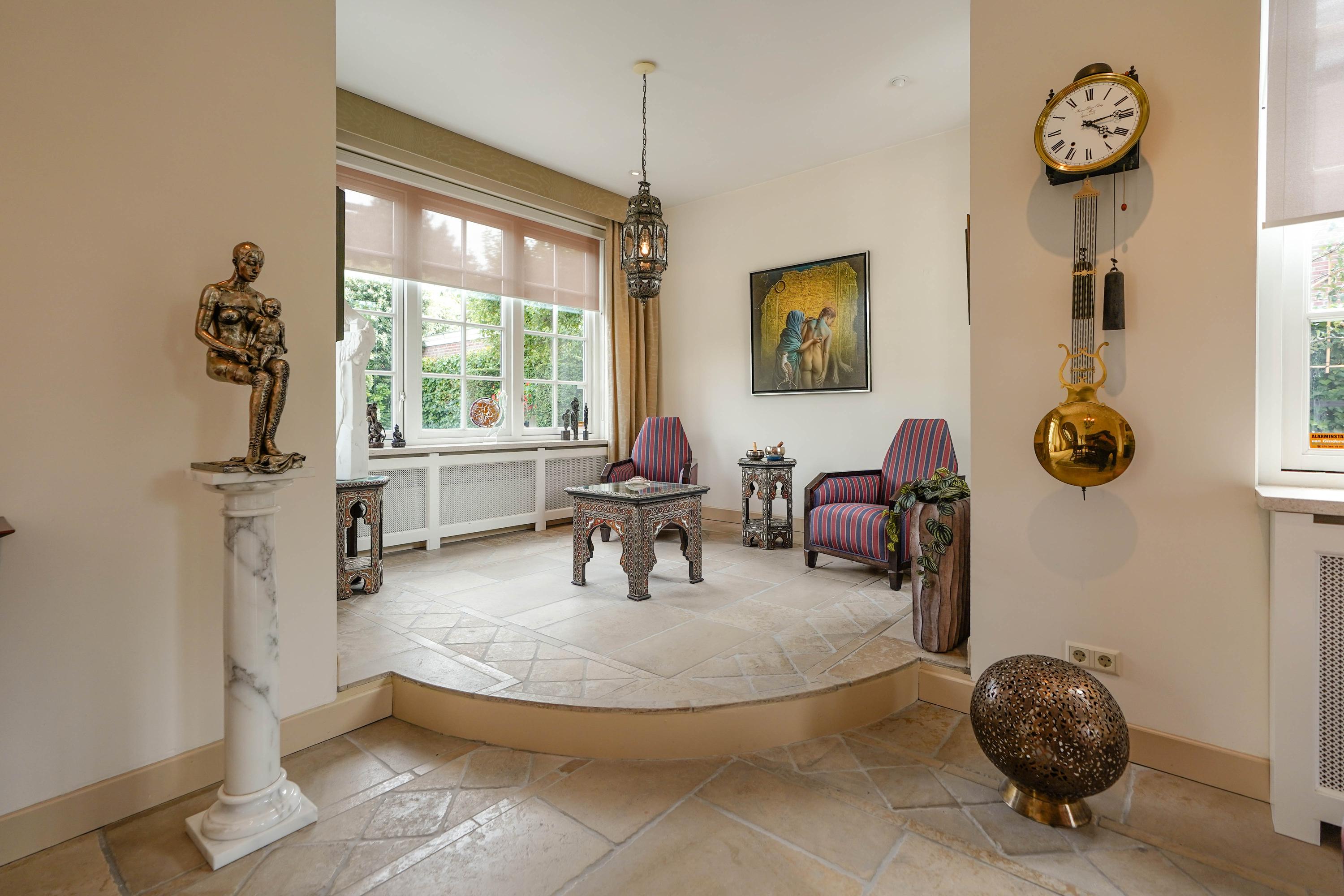 Country-style villa The Hague Vroondaal Hofstedepark defines understated luxury in one of The Hague’s most prestigious residential enclaves. This bespoke villa, known locally as "The House with the Clock", offers 326 m² of living space on an 826 m² plot, with 6 bedrooms and 2 bathrooms. Its setting in Hofstedepark, surrounded by the landscaped grounds and bordering Madestein Park, ensures both exceptional privacy and a refined living environment.