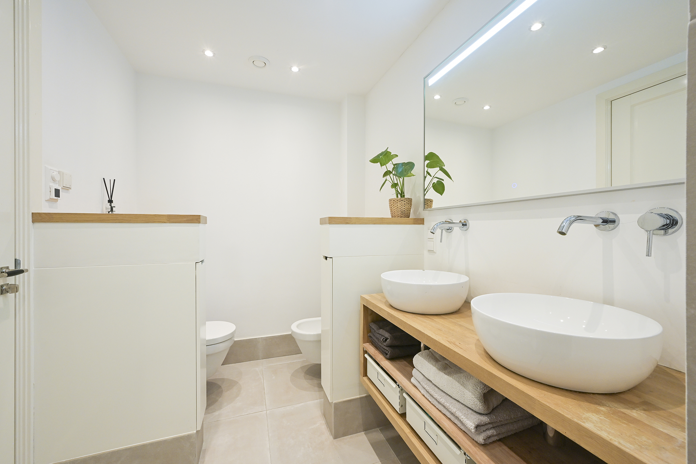 This unique home has been designed with great style and originality and is in excellent condition. With its three south-facing terraces spread across three floors, you have the perfect choice of where to enjoy a cup of coffee or a glass of wine. In the summer months, enjoy a BBQ with friends on your own terrace in front of the house. In the evenings and on weekends, the imposing entrance gate is closed, ensuring total privacy.