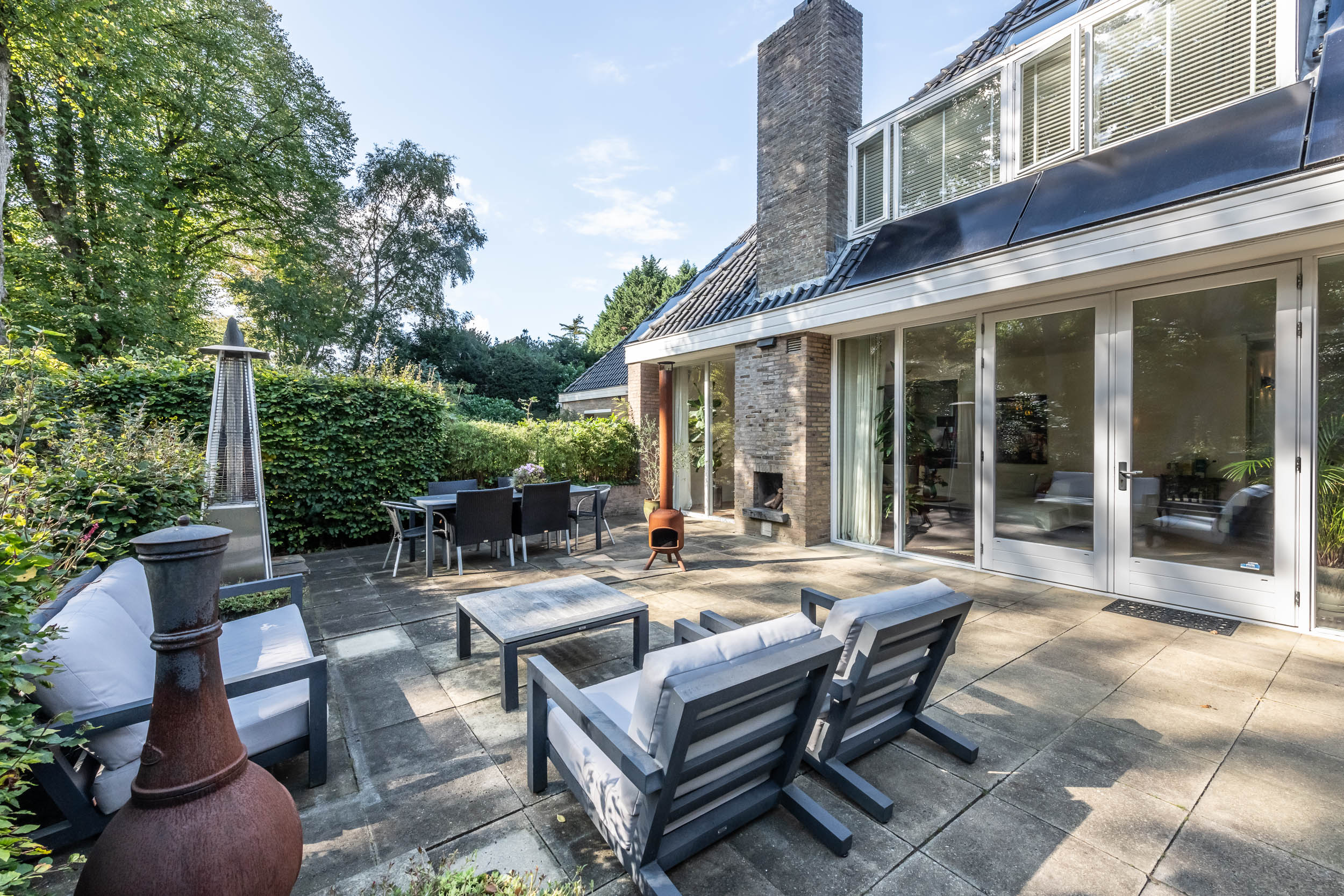 Large family villa featuring 370 m² of living space! This recently modernised, semi-detached villa is located on a beautiful avenue in Aerdenhout and features a beautifully landscaped garden of over 1,000 m², including multiple terraces where you can enjoy optimal privacy. There is a hockey/football pitch for the children, an outdoor fireplace, garden lighting and a sprinkler system. The house is situated perfectly: opposite a walking forest bordering the Naaldenveld, but also close to the beach (15 minutes by bicycle). the shops and Heemstede-Aerdenhout station (8 minutes by bicycle).
