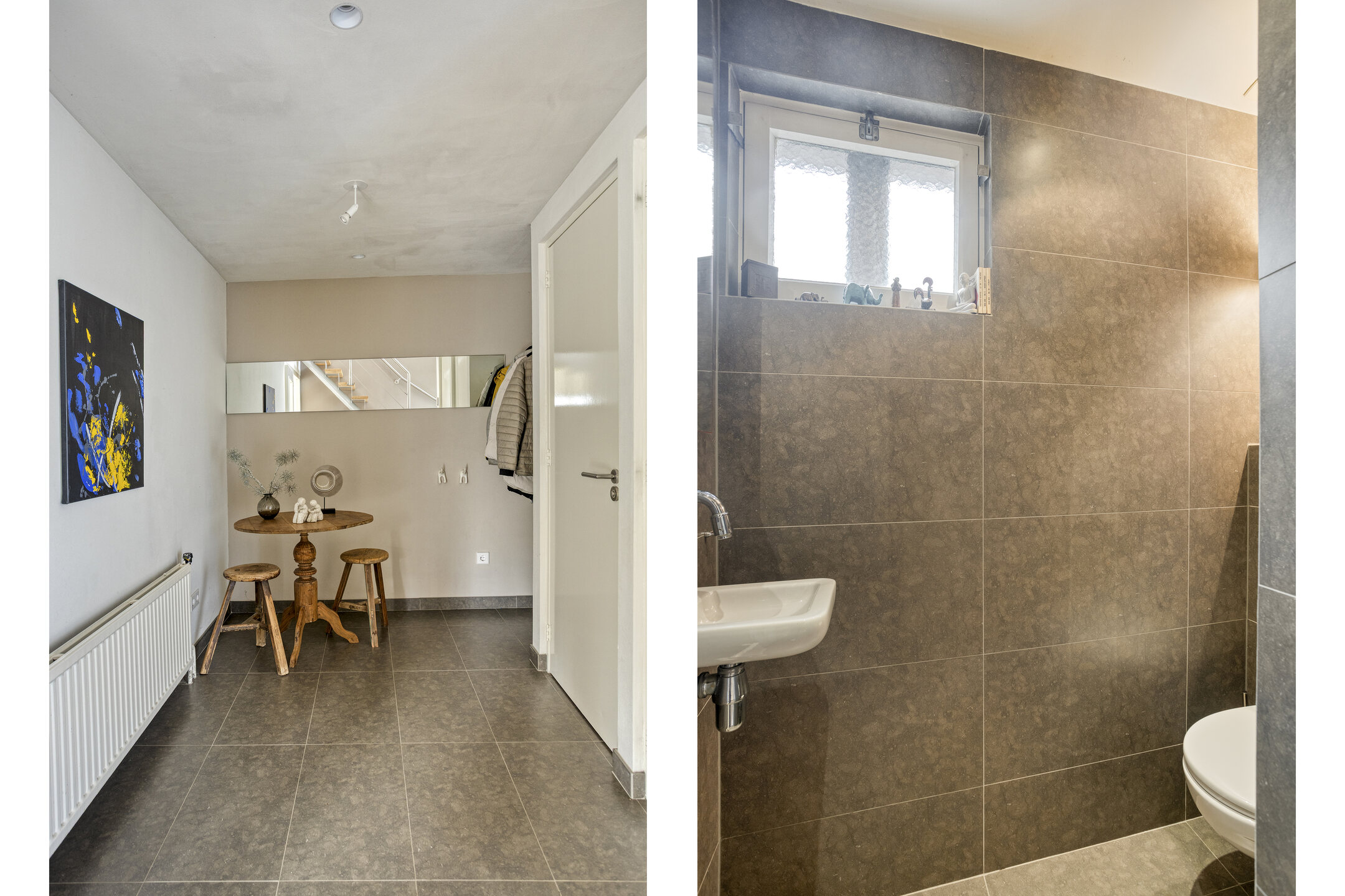 As soon as you step inside, the spacious hallway with its impressive void and beautiful open wooden staircase immediately catches your eye. The hall provides access to the neatly finished toilet with hand basin, the meter cupboard, and a convenient storage space behind the cloakroom. From the hall, glass doors lead you into the living room and kitchen-diner. The solid oak flooring adds warmth, while the smooth walls and ceilings create a sense of calm. A Bellfire double-sided gas fireplace stylishly connects the two living areas.