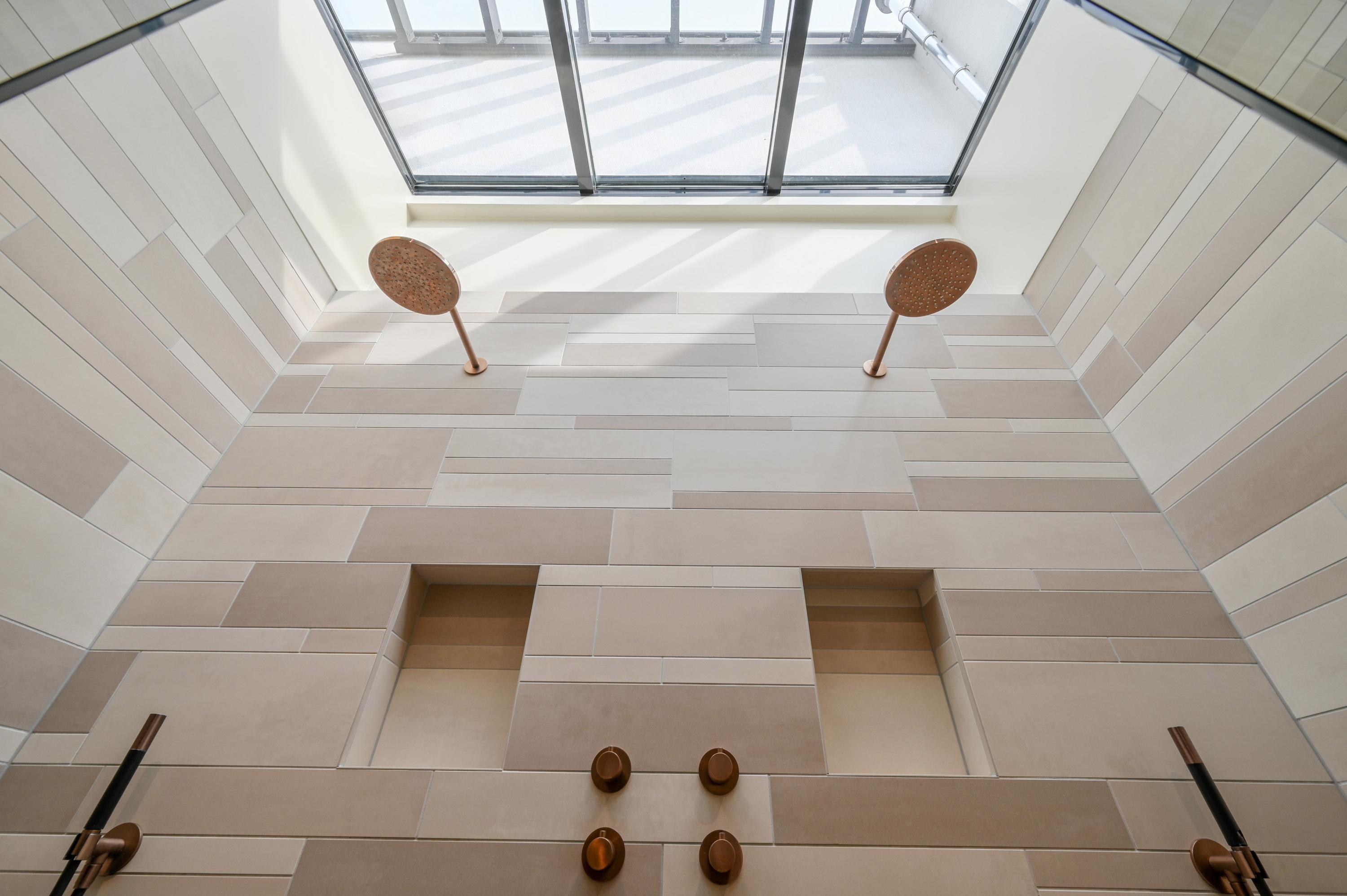 The hallway also provides access to a practical utility room with the central heating system, as well as the washing machine and dryer. Custom-built storage cabinets along the hallway and staircase to the roof terrace offer ample storage and a well-organized living space.
