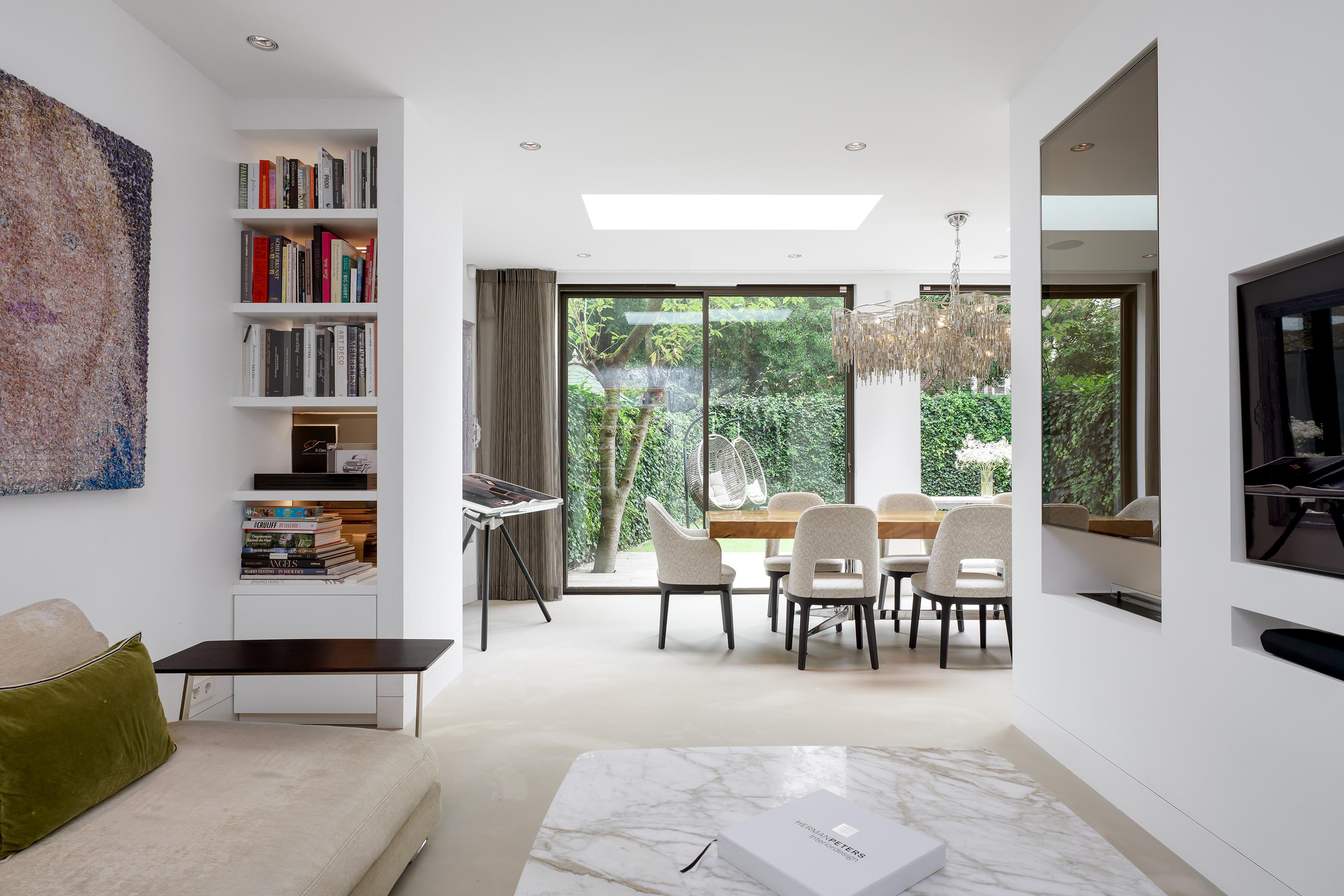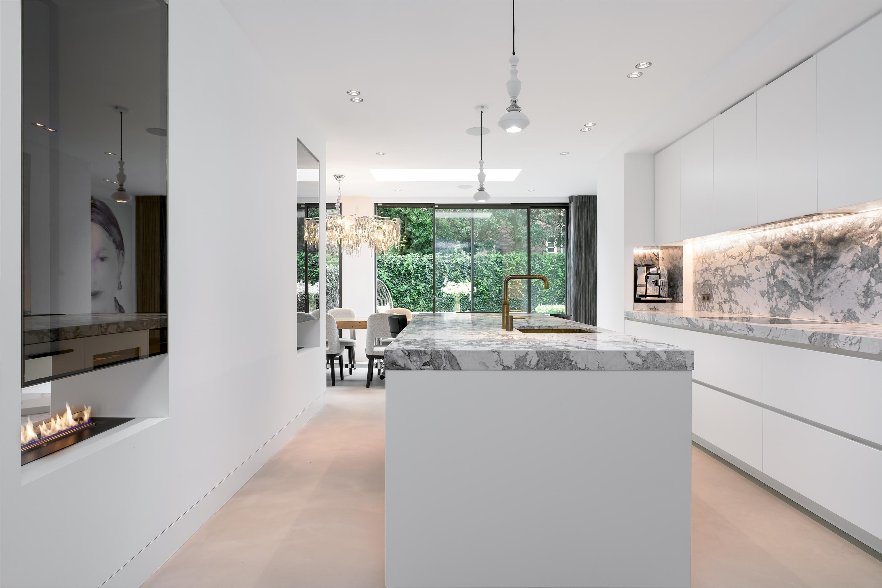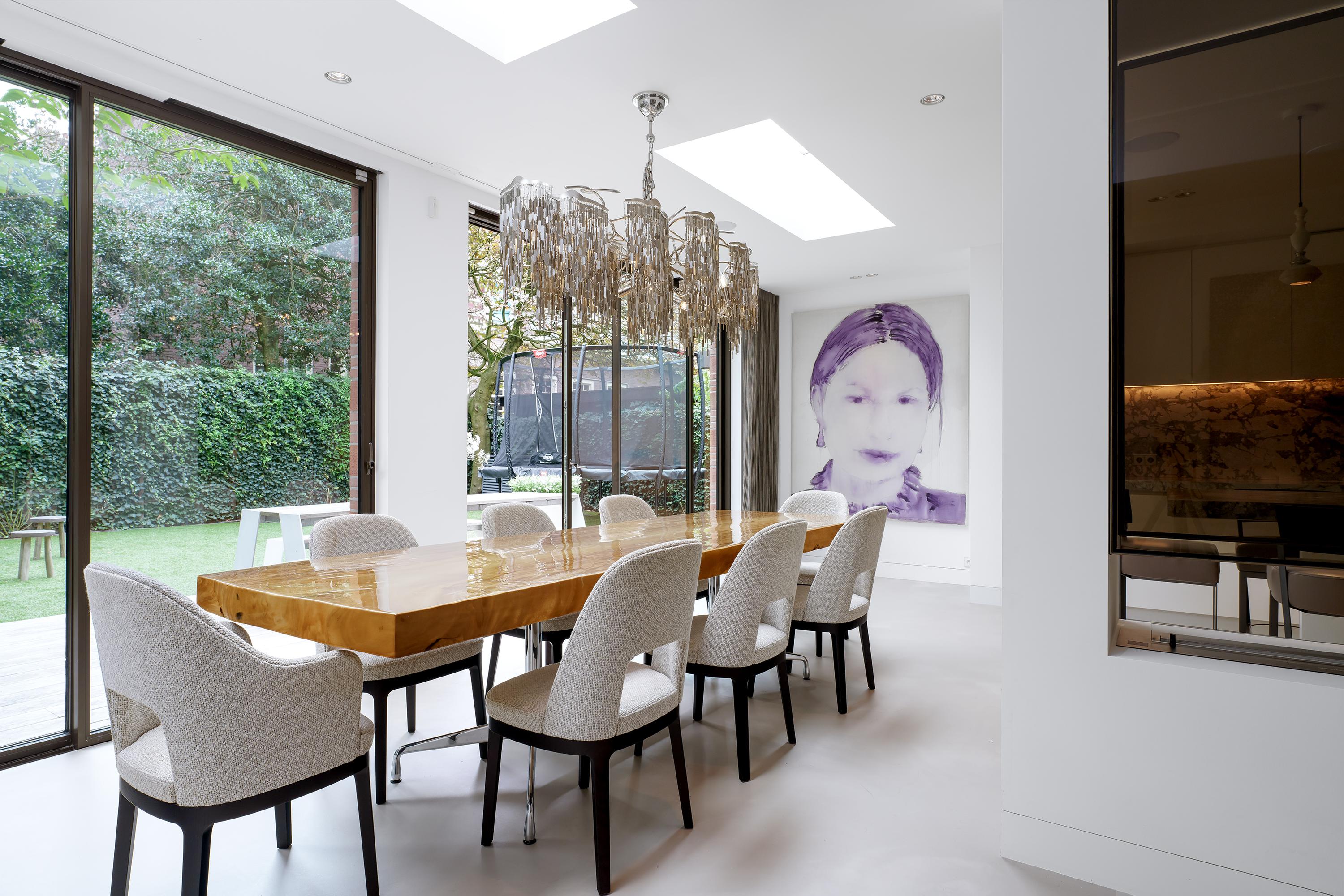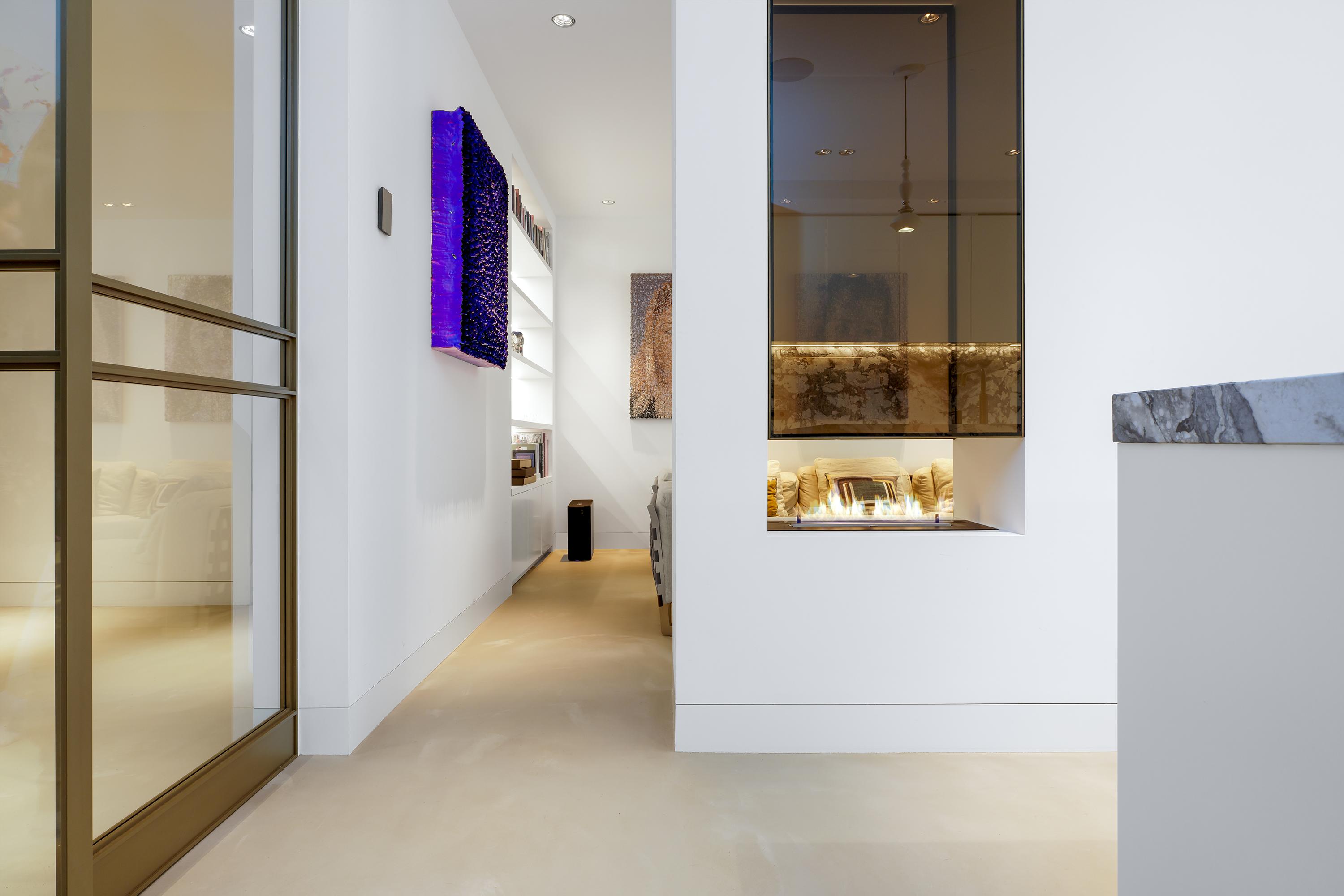 Every surface and detail was reimagined by Herman Peters Interiordesign using only the highest quality materials. Gaggenau kitchen appliances, marble floors, steel pivot doors, and expansive skylights create a sense of calm rhythm and timeless elegance. The living space, anchored by two Planika ethanol fireplaces, flows seamlessly to the dining area, kitchen, and terrace, offering an inviting interplay of natural light and privacy. Underfloor heating, air conditioning, and domotica ensure year-round comfort and quiet efficiency throughout the home.