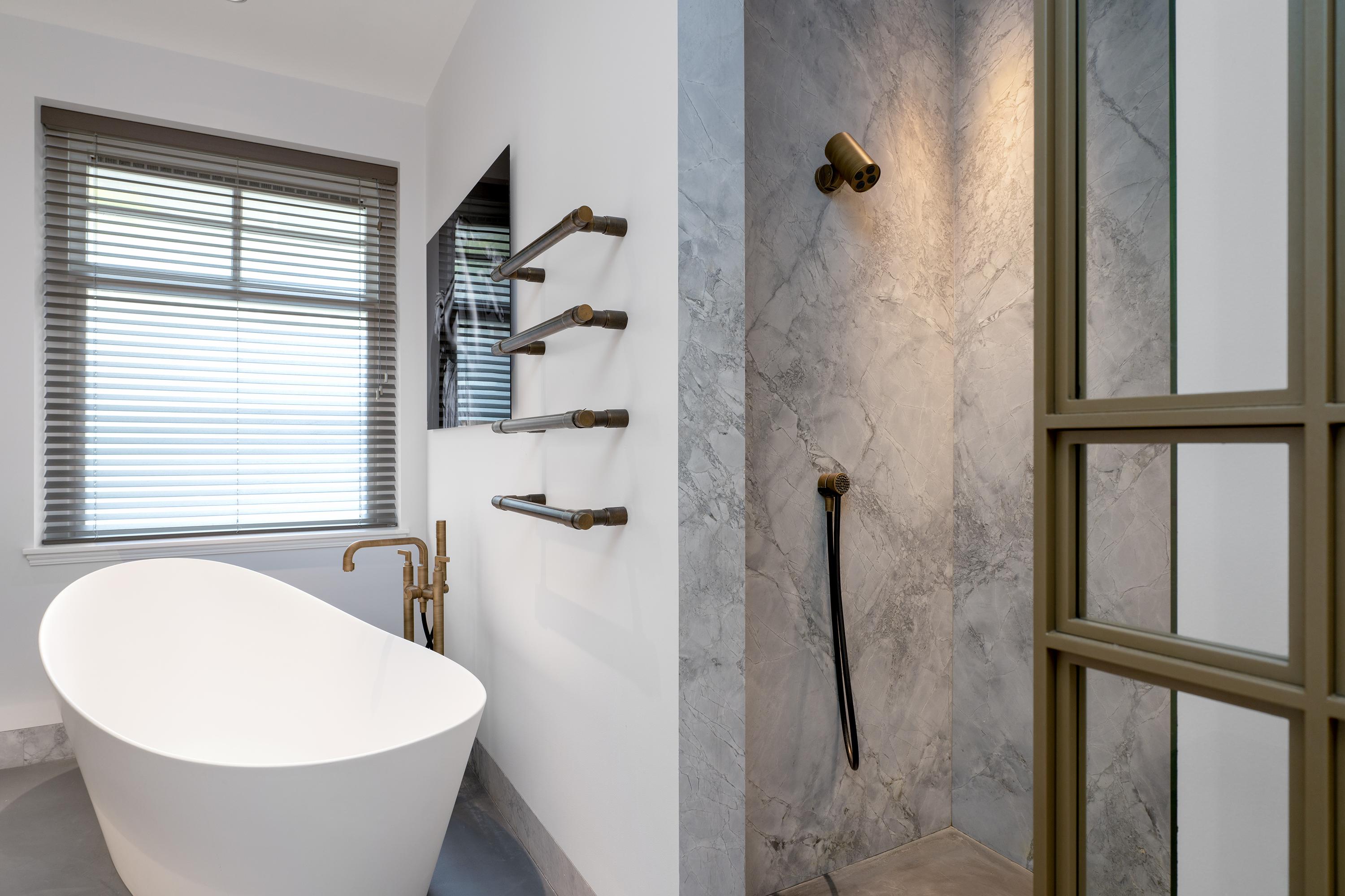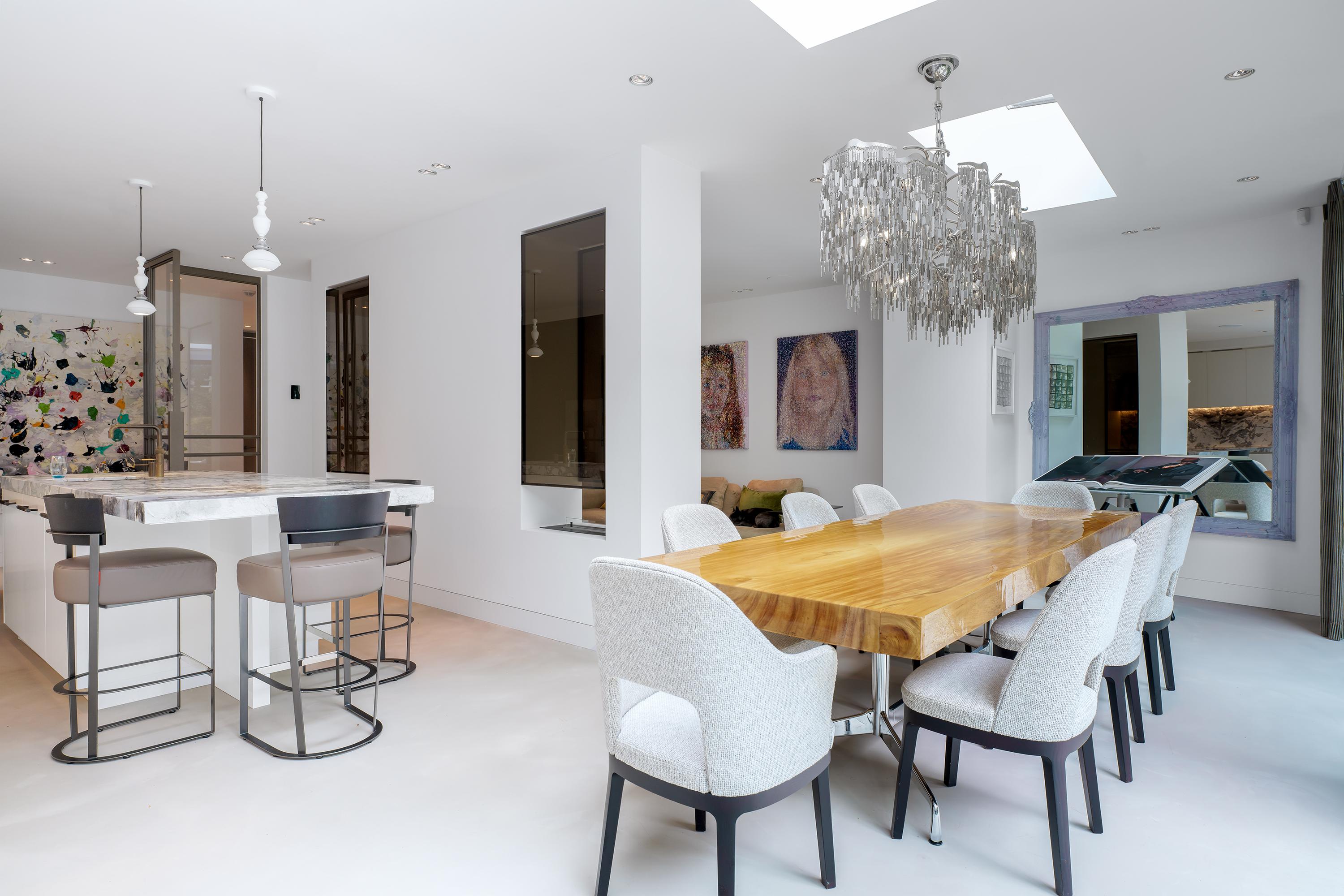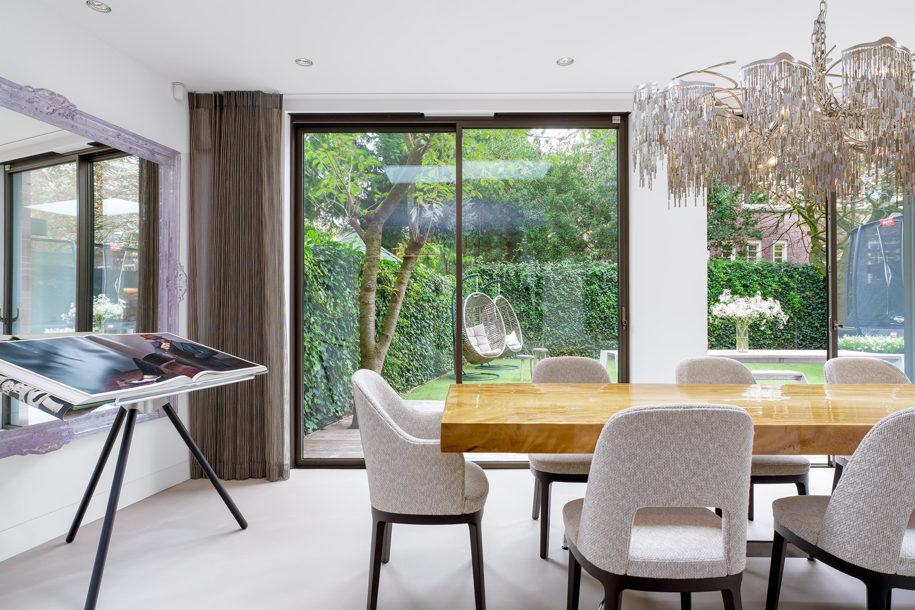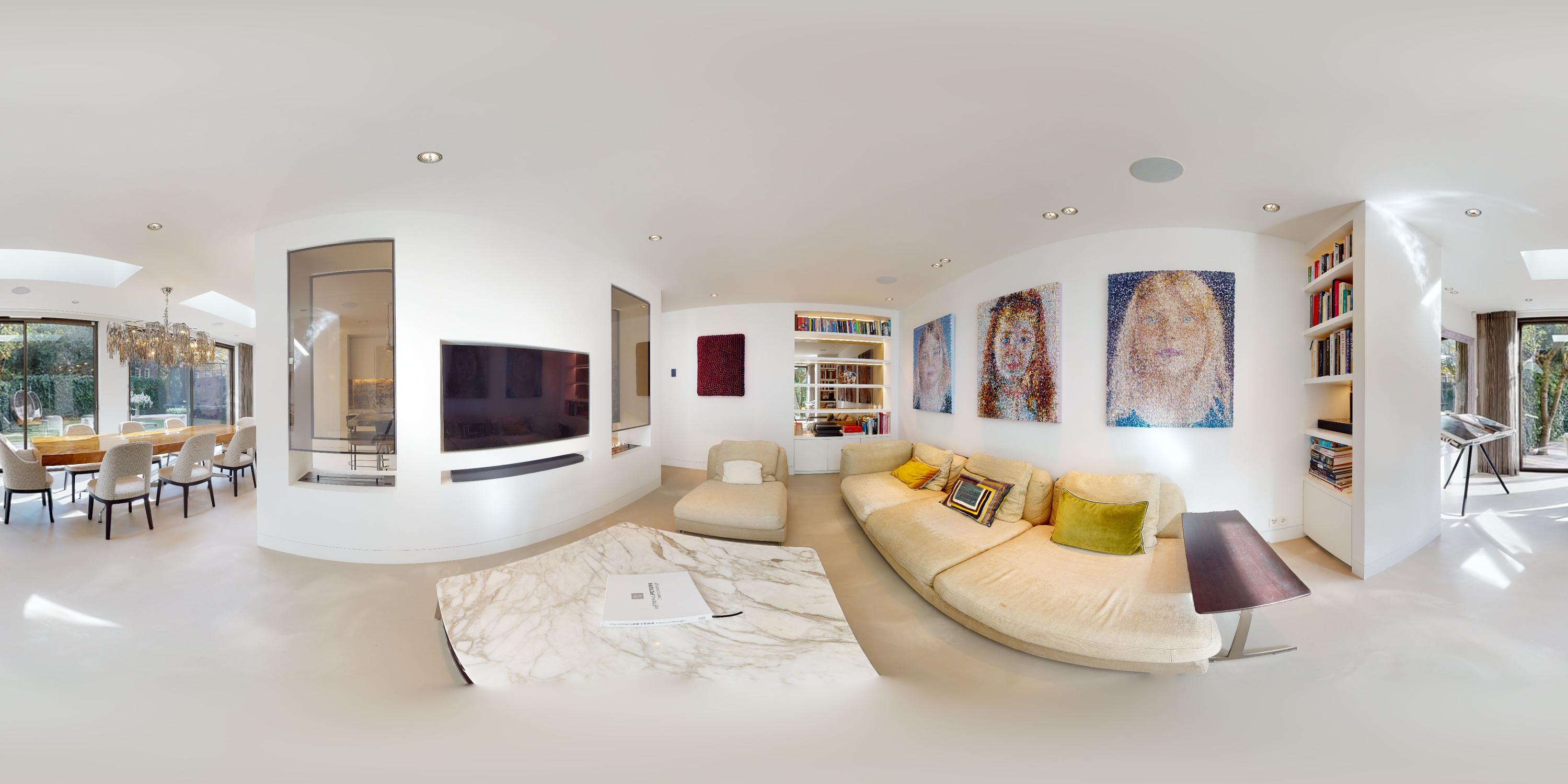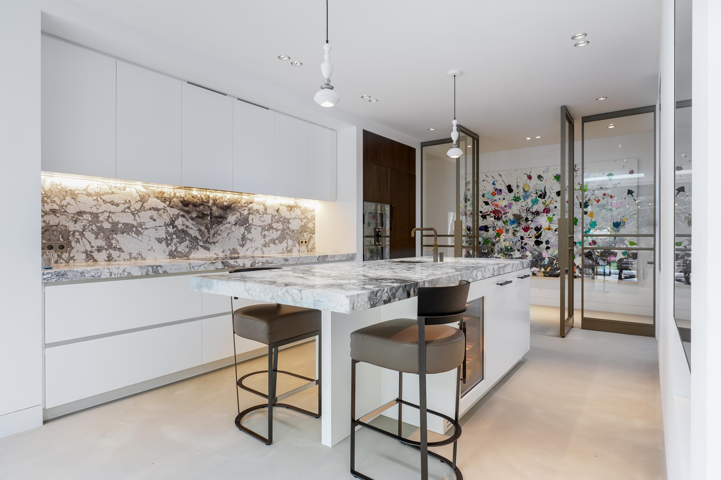 Every surface and detail was reimagined by Herman Peters Interiordesign using only the highest quality materials. Gaggenau kitchen appliances, marble floors, steel pivot doors, and expansive skylights create a sense of calm rhythm and timeless elegance. The living space, anchored by two Planika ethanol fireplaces, flows seamlessly to the dining area, kitchen, and terrace, offering an inviting interplay of natural light and privacy. Underfloor heating, air conditioning, and domotica ensure year-round comfort and quiet efficiency throughout the home.