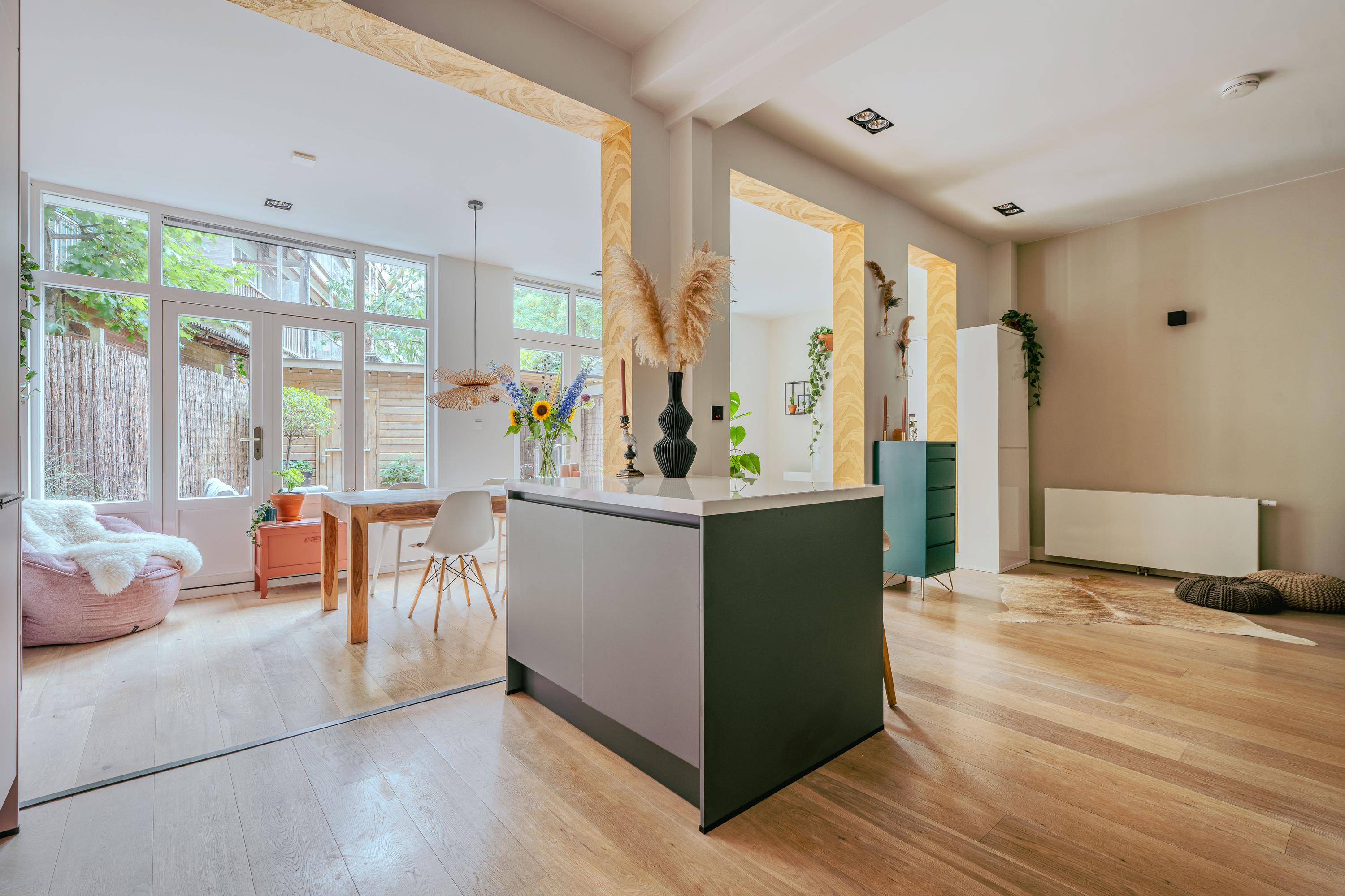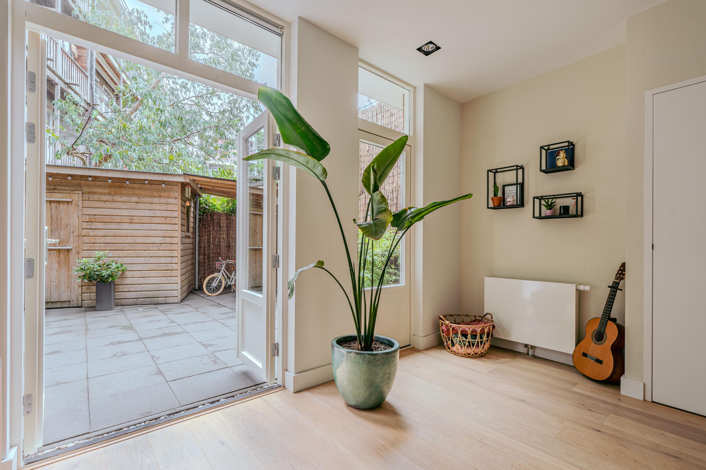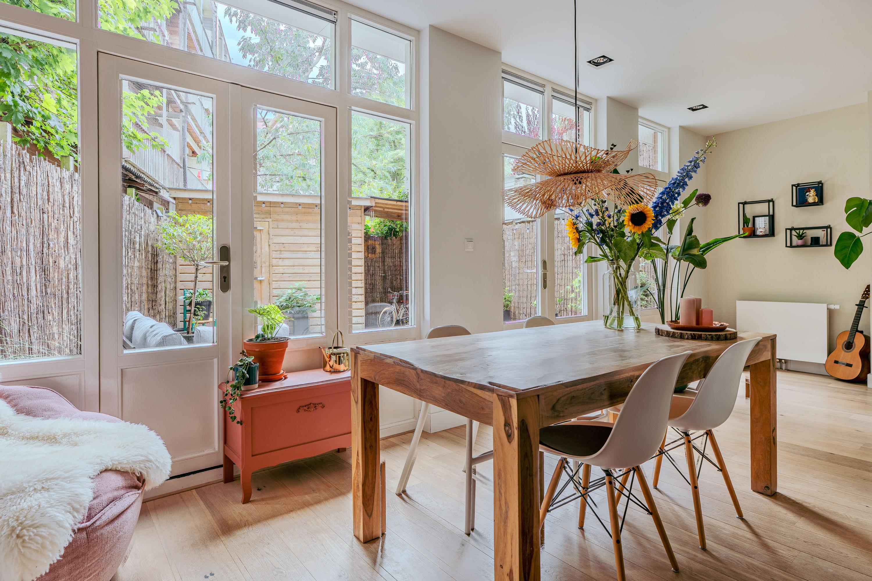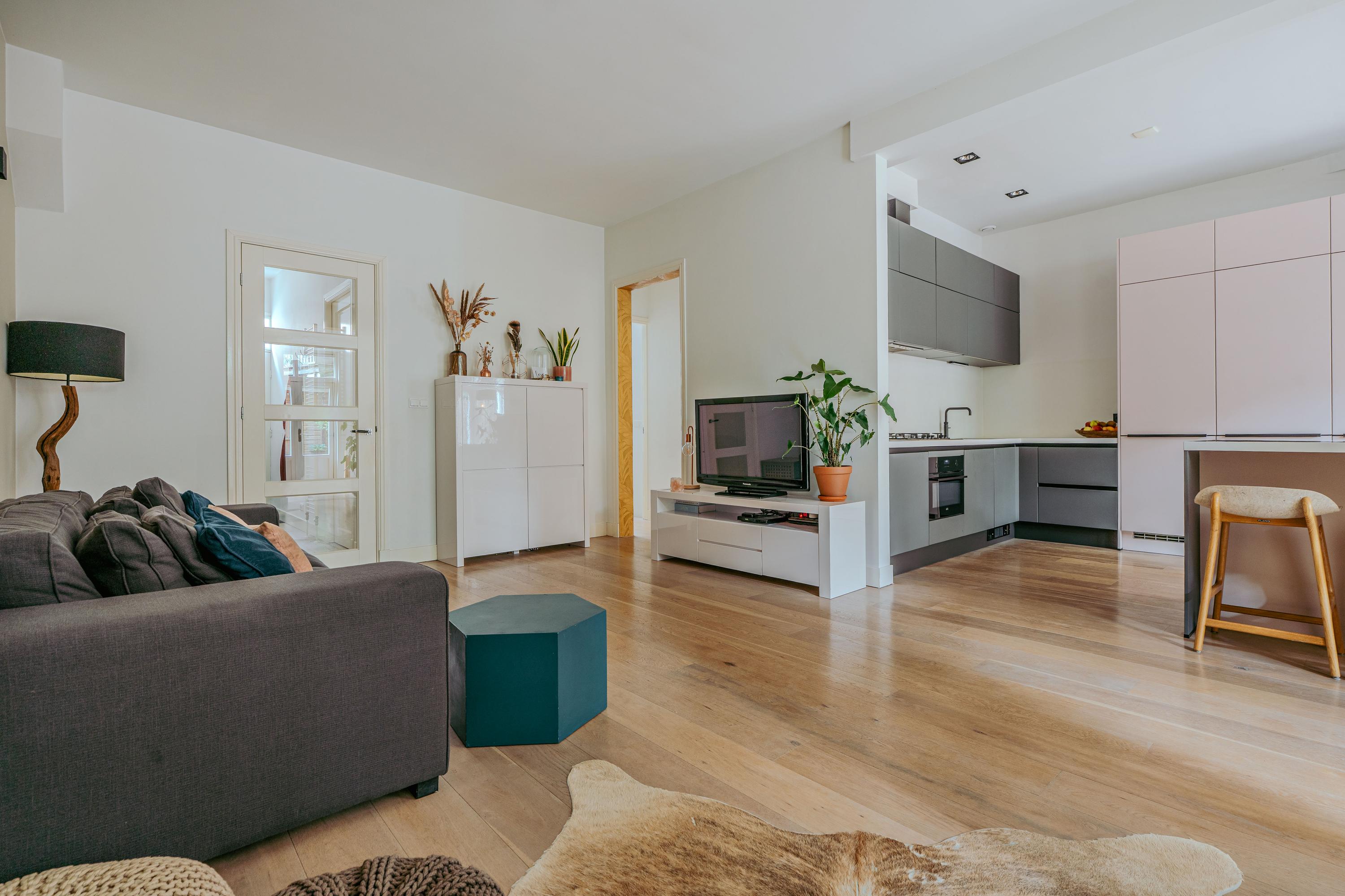 Apartment Amsterdam with private south facing garden offers a refined urban retreat in the heart of De Pijp. With a living area of 89 m², this ground floor residence enjoys abundant natural light, thanks to large windows and a 2.5 meter deep extension with garden doors that create a seamless indoor-outdoor experience.