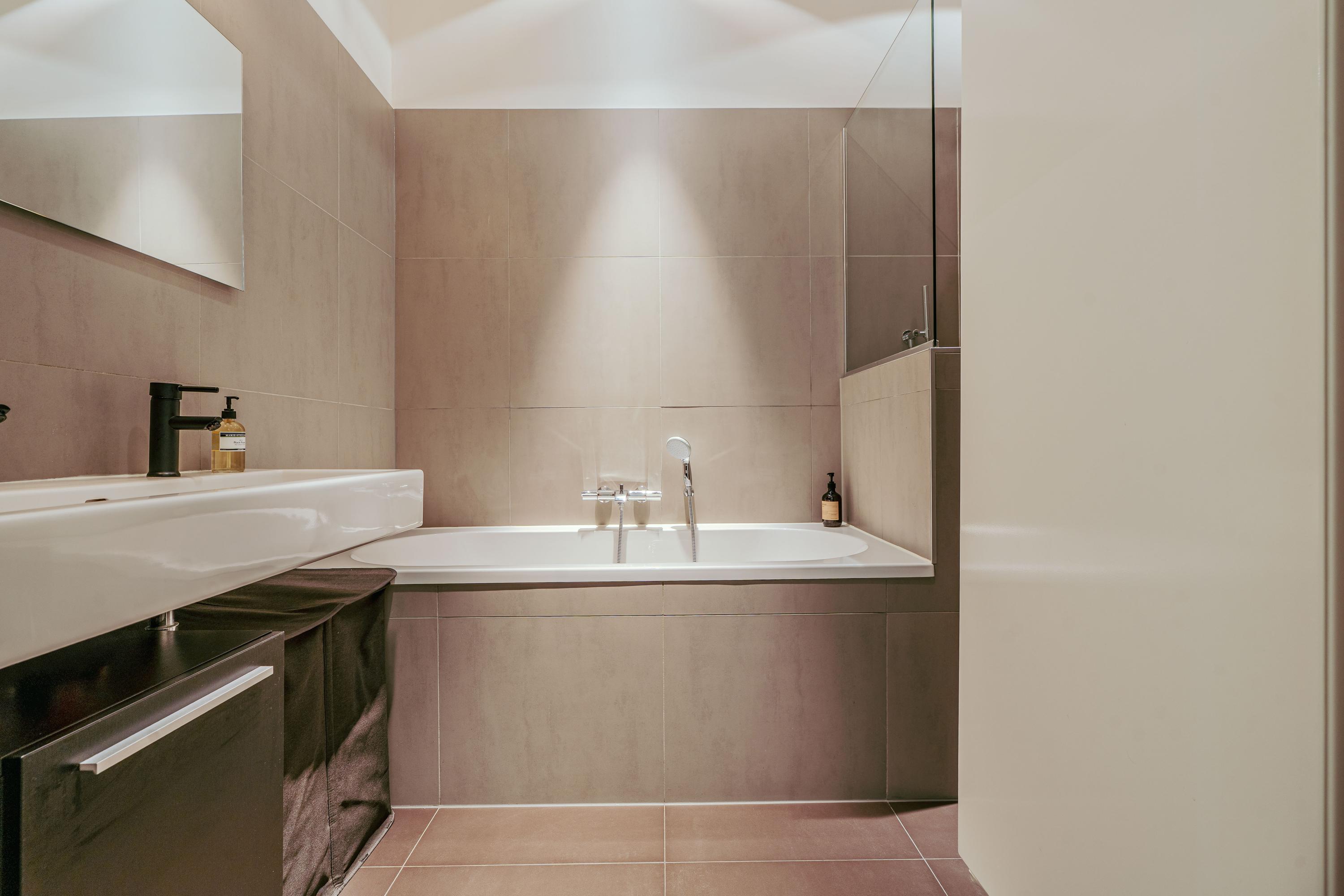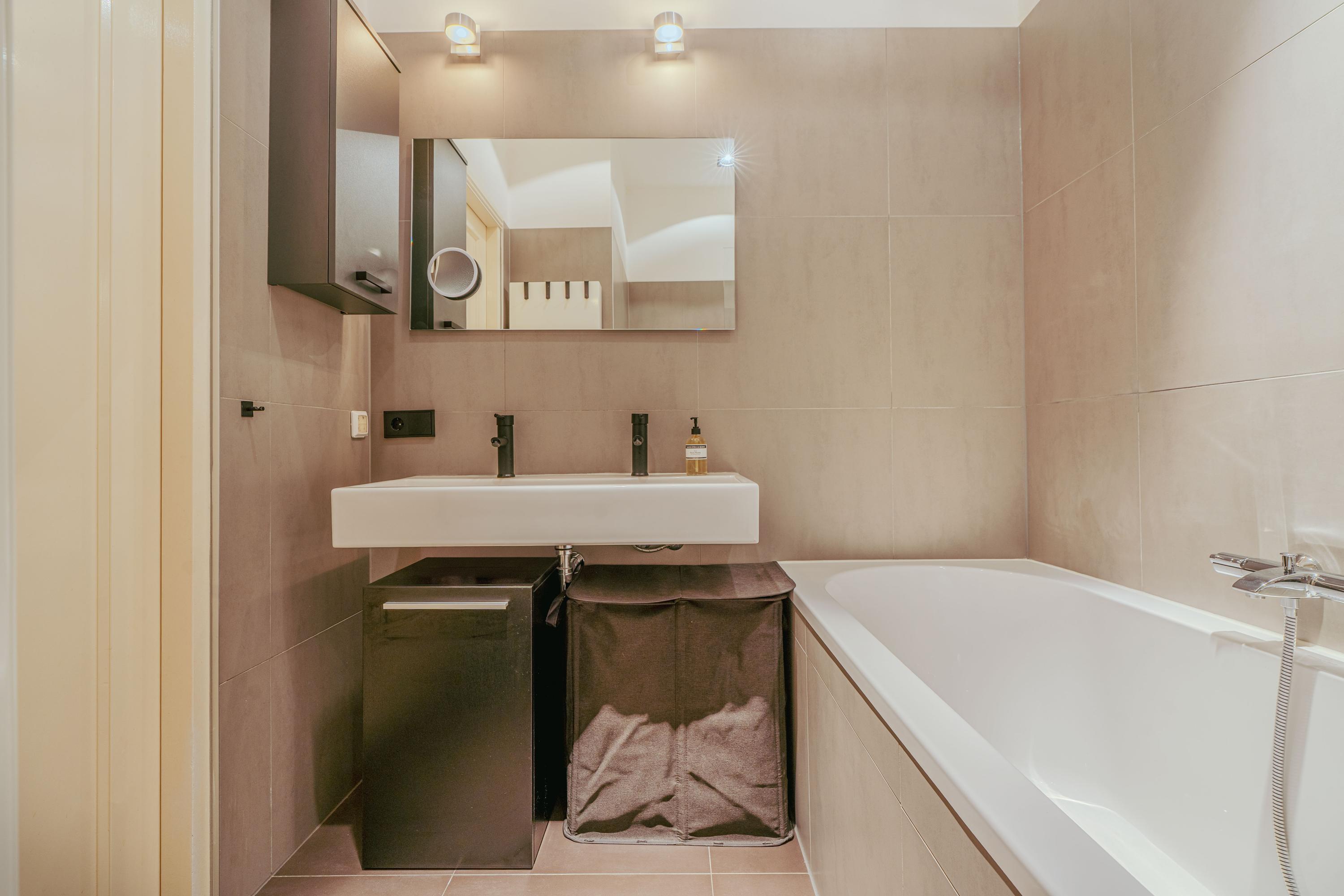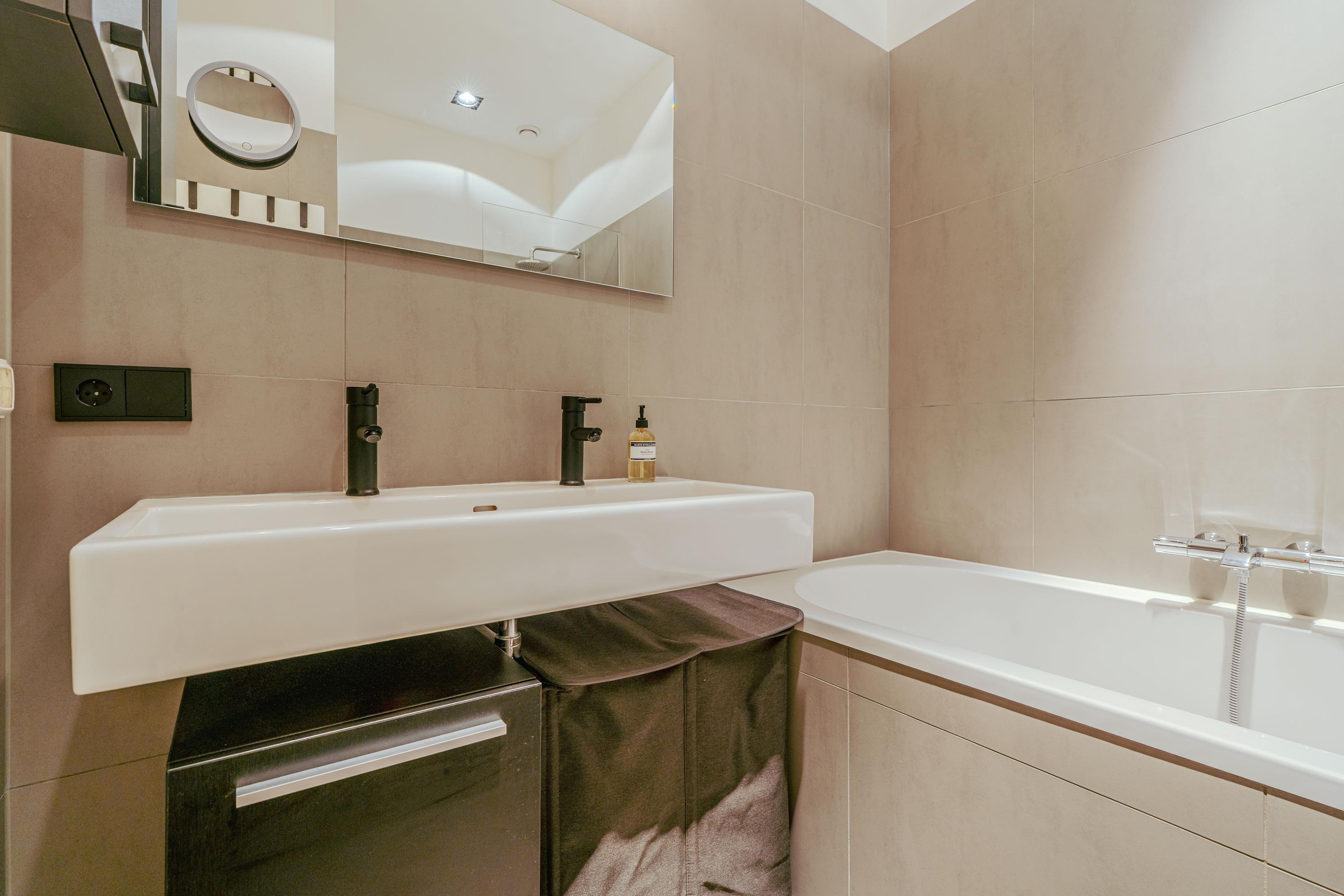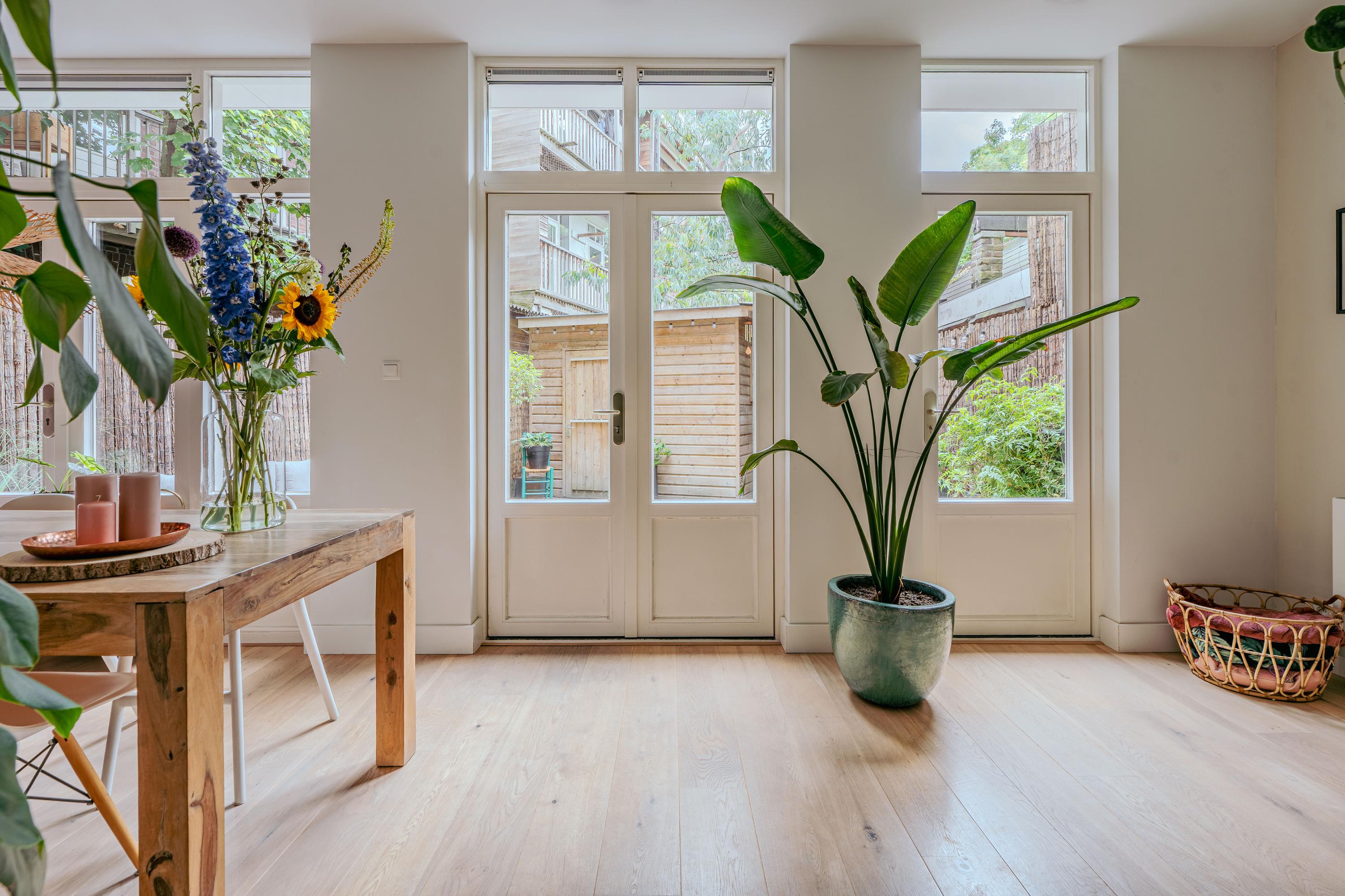 Apartment Amsterdam with private south facing garden offers a refined urban retreat in the heart of De Pijp. With a living area of 89 m², this ground floor residence enjoys abundant natural light, thanks to large windows and a 2.5 meter deep extension with garden doors that create a seamless indoor-outdoor experience.