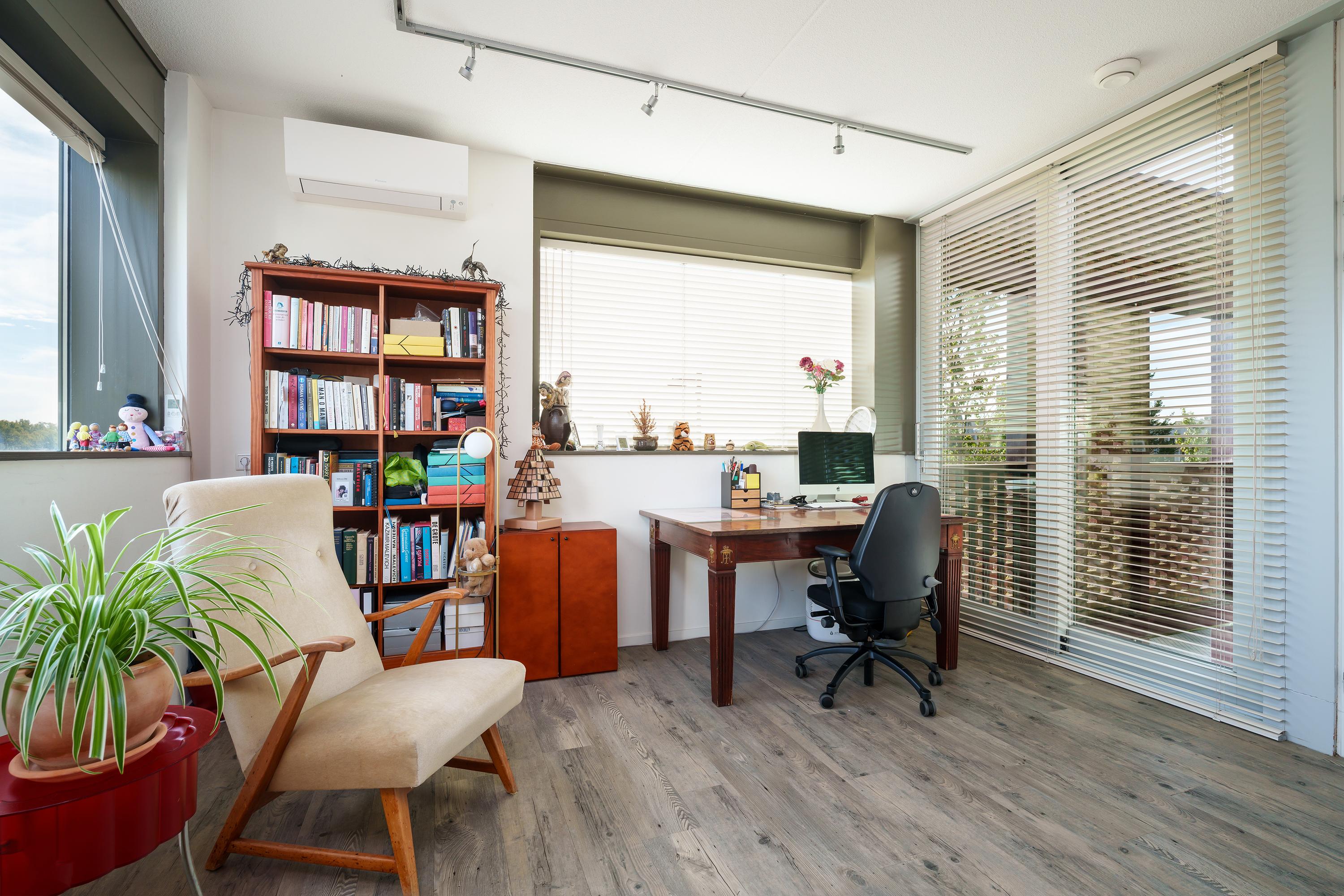 Here you will find the master bedroom of nearly 23 m² (including built-in wardrobes), with large windows overlooking the lake. The second bedroom/office (18 m²) on this floor enjoys magnificent views over the water, the surroundings and the Diemer Vijfhoek.