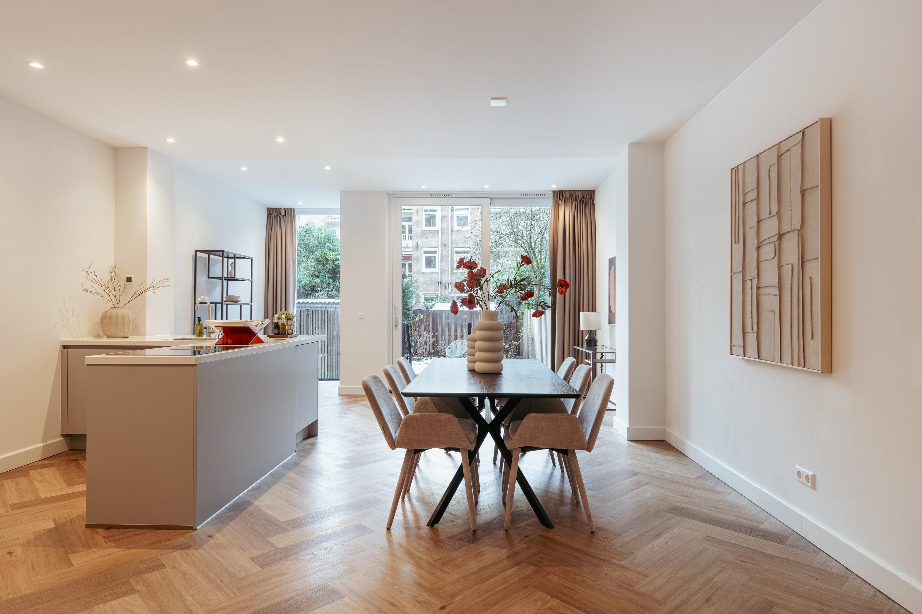 Stylish and recently renovated double ground-floor apartment (approx. 131 m²), ideally located in the heart of Amsterdam’s vibrant De Pijp district. This comfortable home features a modern finish, a practical layout, and a spacious feel throughout. With three bedrooms, two bathrooms, a generous living area, and a large garden, it offers the perfect residence for families or a luxurious pied-à-terre in one of the city’s most sought-after locations.