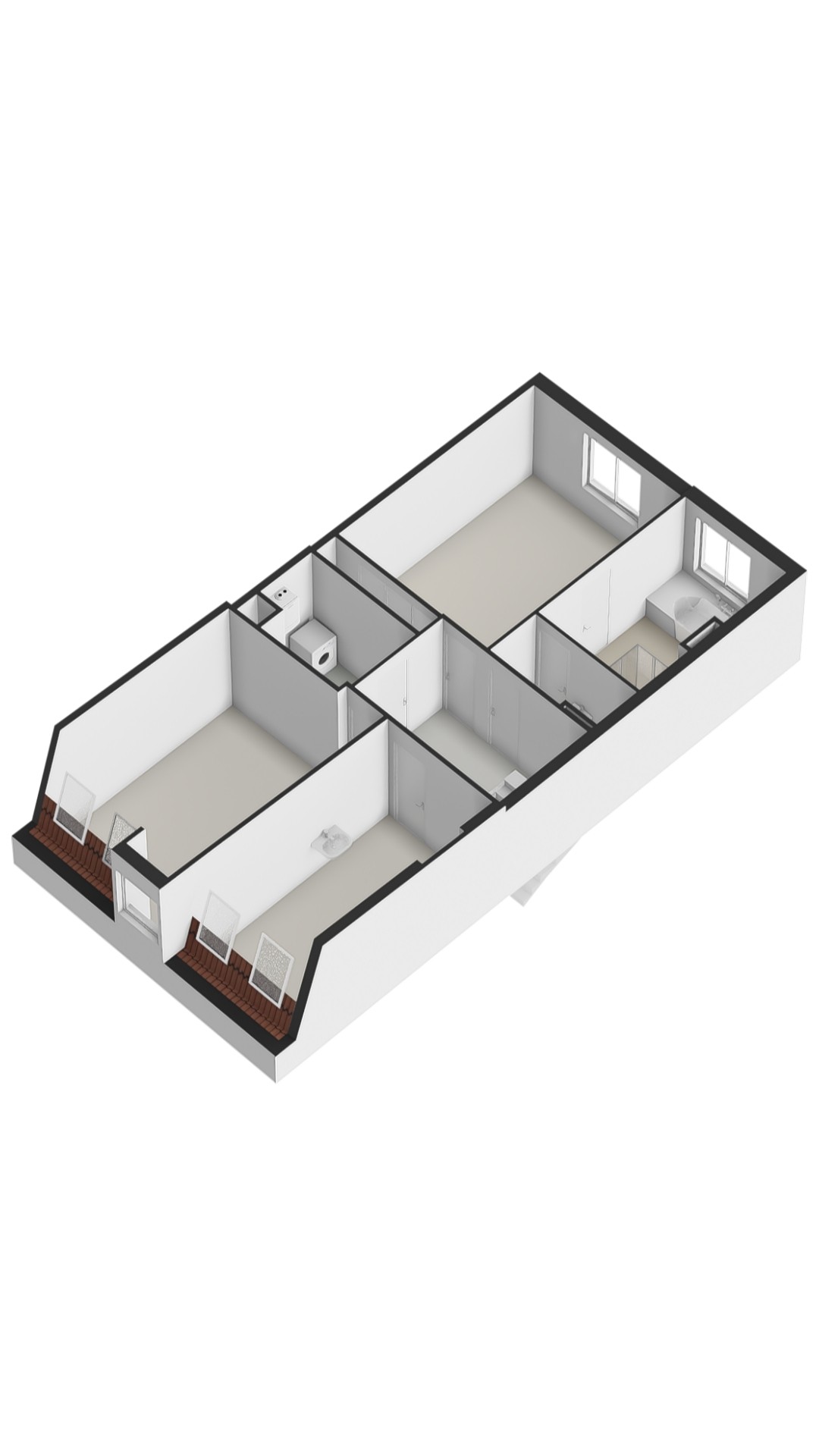 At the front, two additional large bedrooms enjoy abundant daylight through skylights, offering views of the Sarphatipark. These rooms are versatile and well-suited as bedrooms, children’s rooms, or hobby spaces.