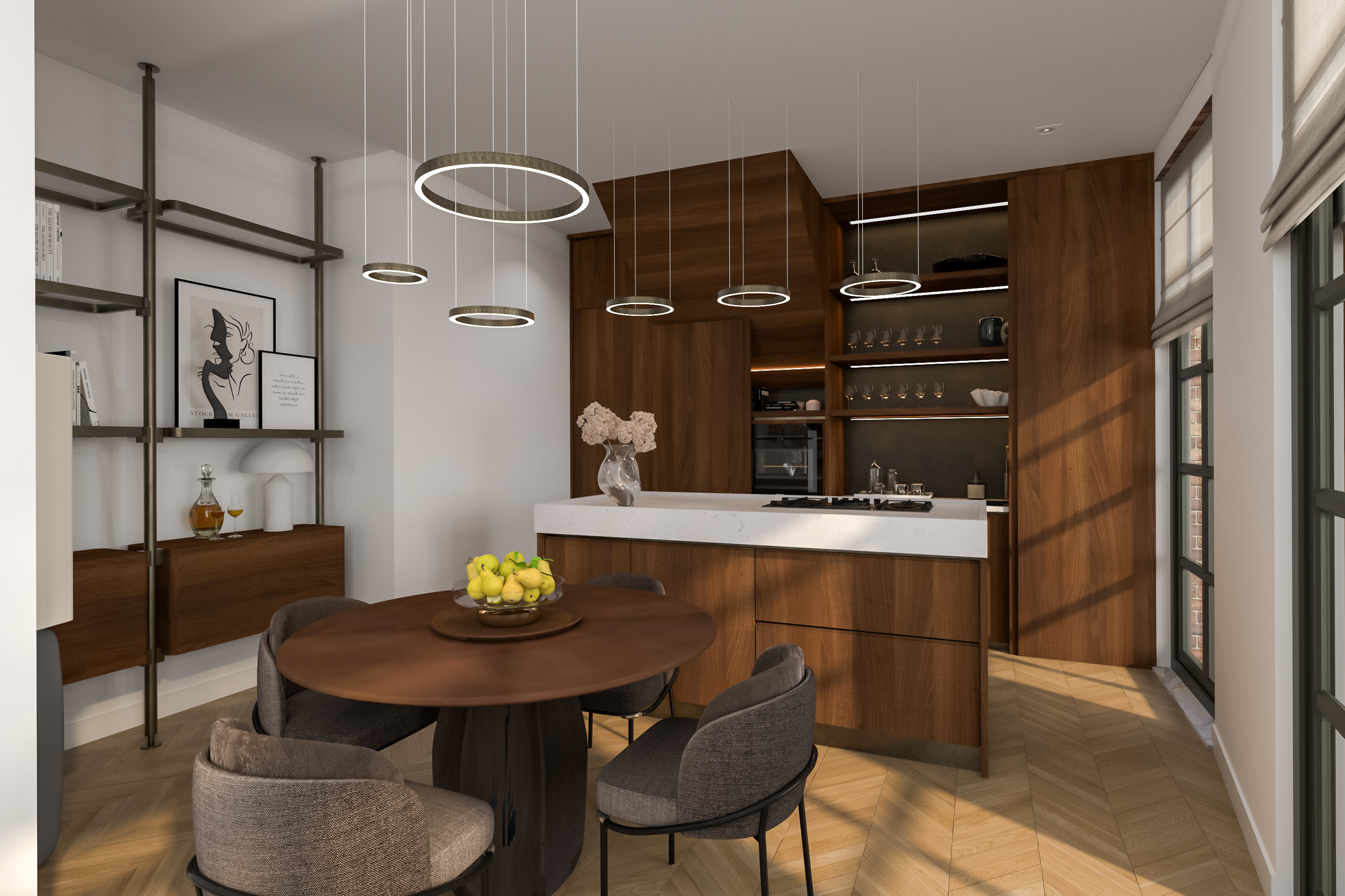 At the charming Schiemanstraat 10, a characterful townhouse is currently being constructed – a completely new build in the style of a New York warehouse. The façade is both classic and bold, featuring long, slender 40 cm bricks, symmetrical window arrangements and high-quality aluminium frames in RAL 6006. Inside, you'll enjoy modern comfort and sustainability, with an A+++ energy label, an all-electric system and triple glazing in ultra-slim profiles throughout.