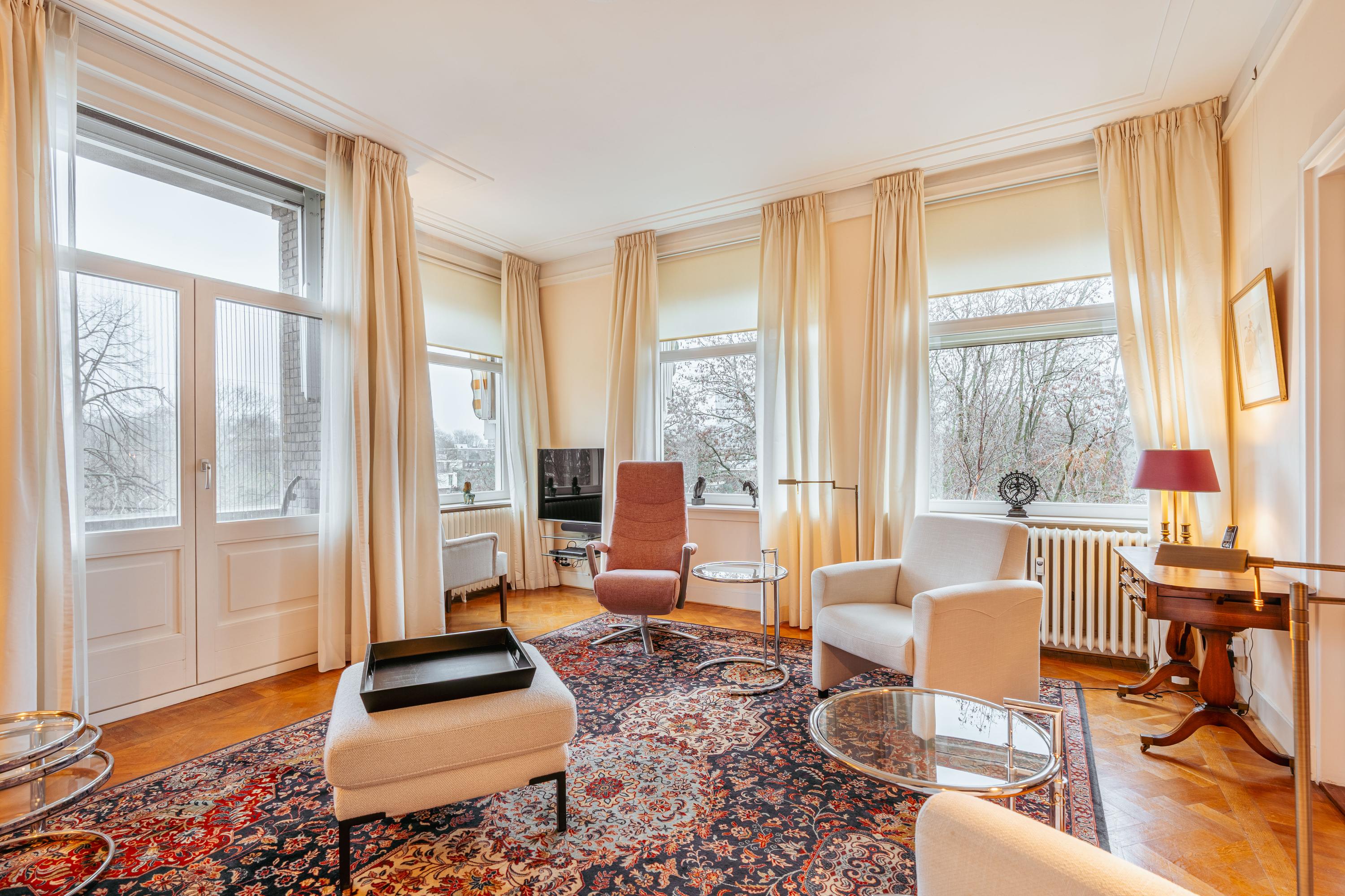 Set on a beautiful waterfront location in the popular Stadion and Beethoven neighbourhoods, we are pleased to offer this well-laid-out corner apartment of approximately 120 m². The property features a bright living and dining room, two bedrooms, a balcony, elevator access and a spacious external storage unit. A comfortable apartment, with all amenities, greenery and excellent public transport connections close at hand.