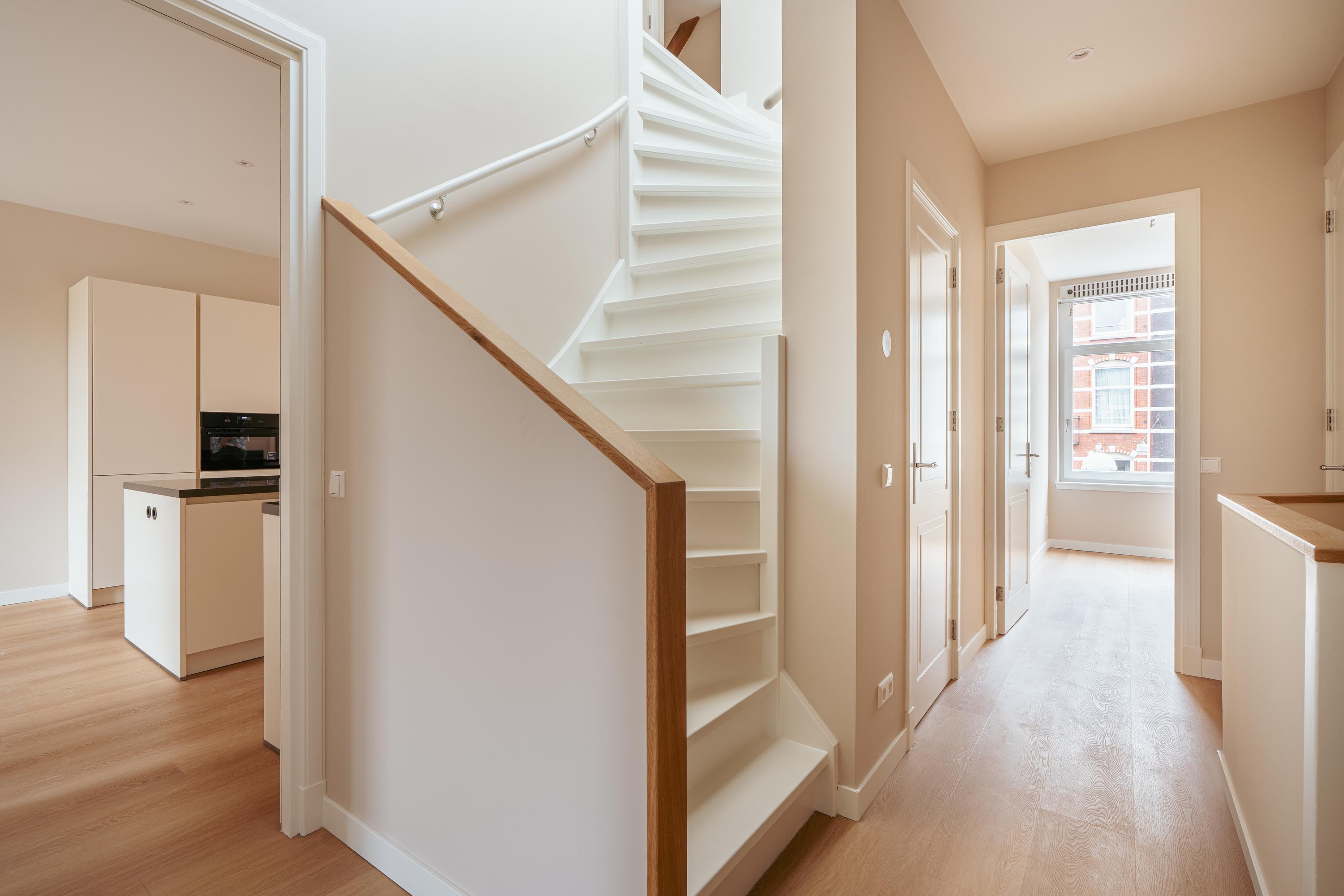 Stylish and fully renovated double upper house of approximately 137 m², situated in a charming building with a characteristic stepped gable. This property boasts an energy label A, four bedrooms, a spacious open kitchen with cooking island, and a delightful roof terrace of 32 m² offering beautiful views over the Lijnbaansgracht.