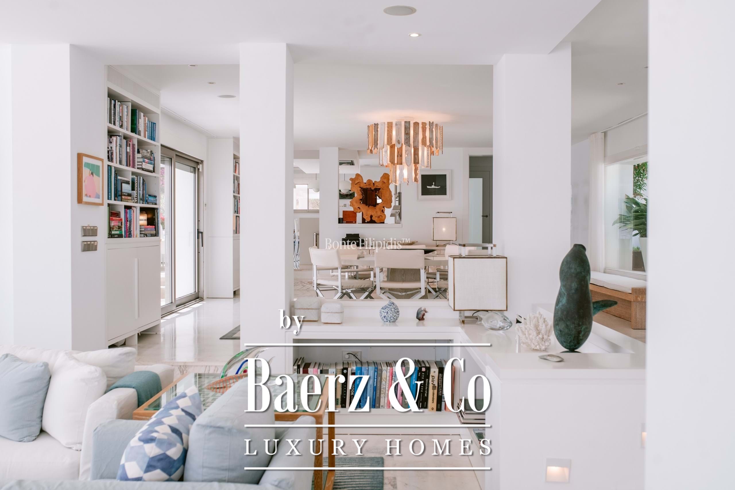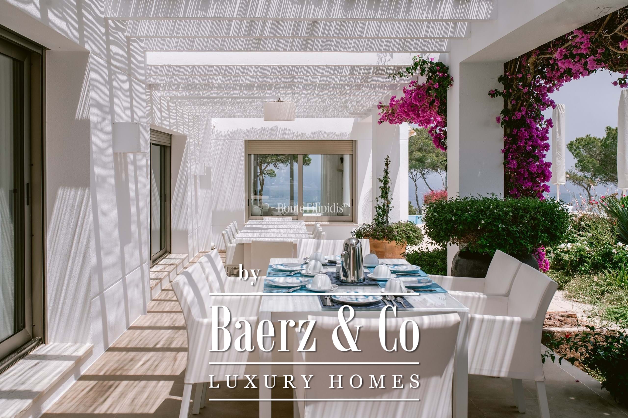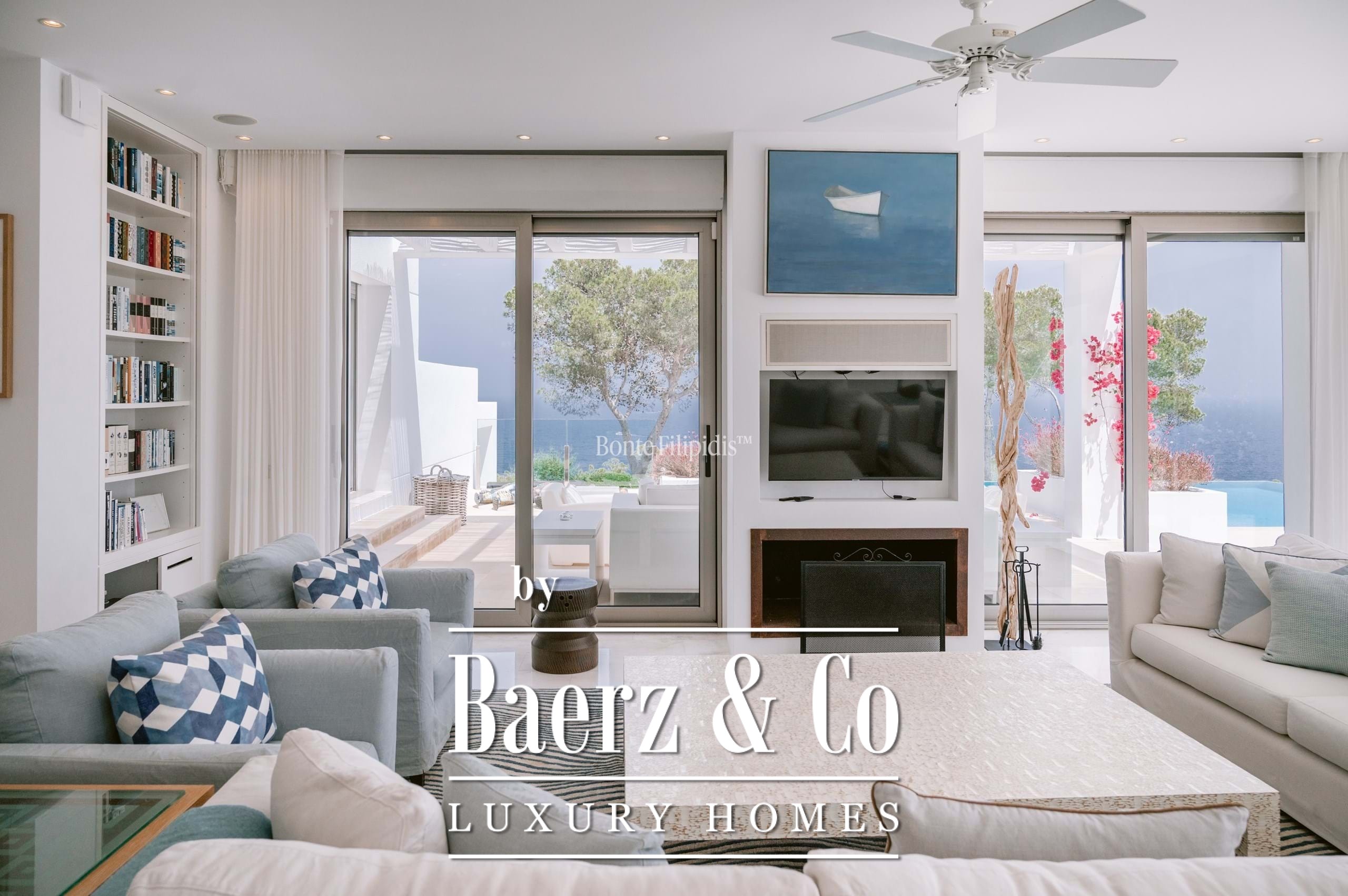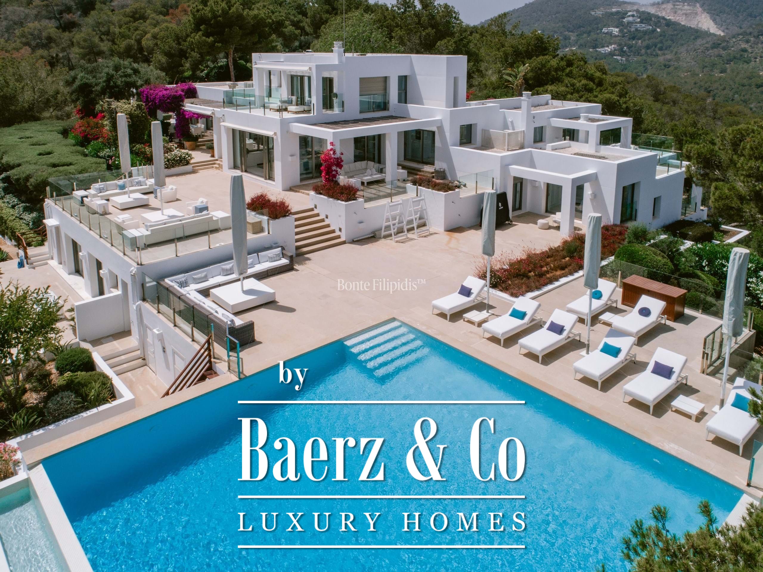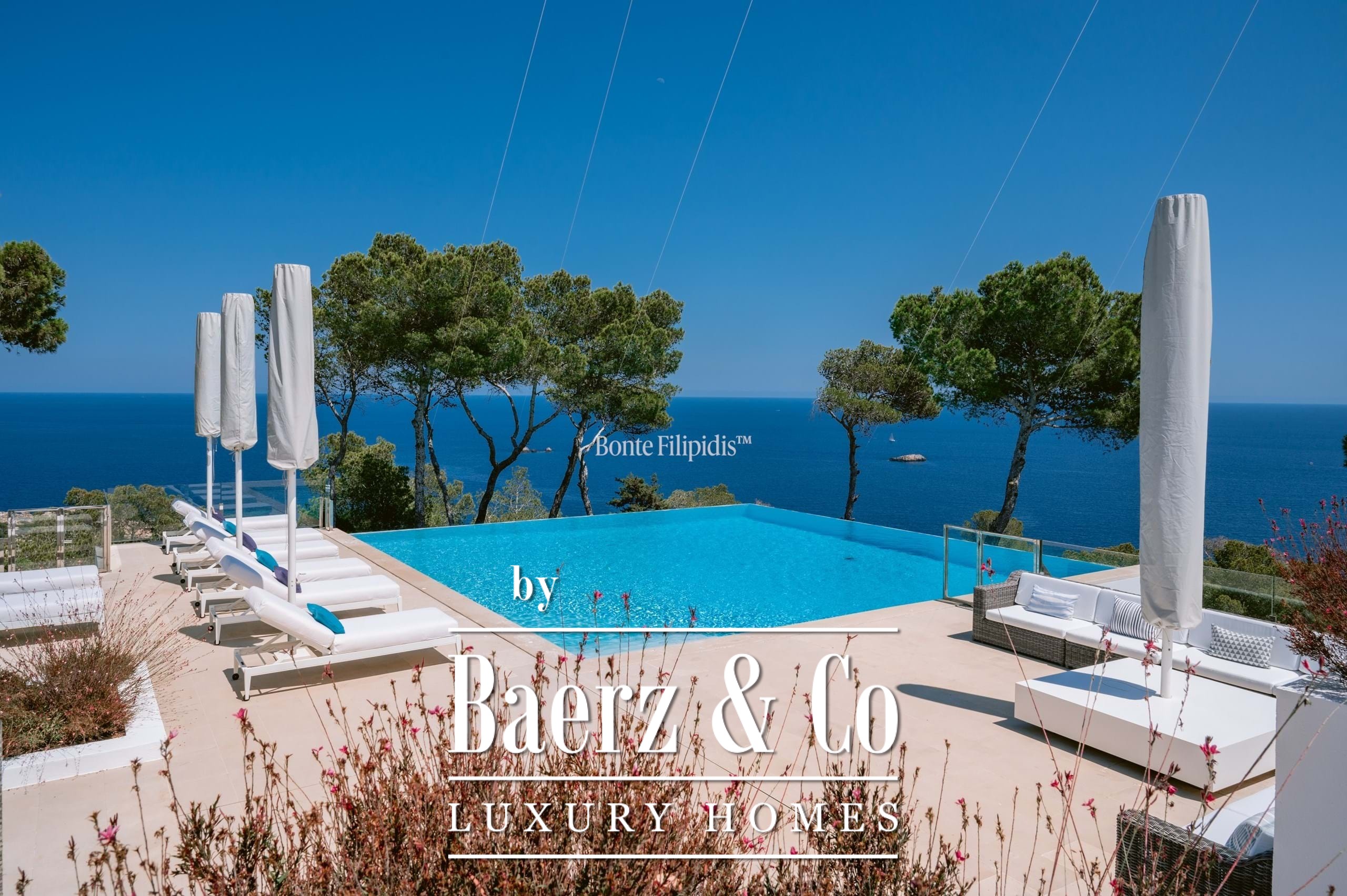 The exterior spaces invite leisure and entertaining, with a saltwater pool, sun terraces, and a fully equipped summer kitchen. Additional highlights include a home cinema, gym, underfloor heating, and a full security system.