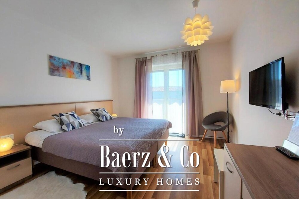 Material comfort is ensured through carefully implemented climate control, underfloor heating in bathrooms, and individual utilities for each apartment. Outdoors, the 818 m² plot is enclosed by lush vegetation and features a communal pool, a summer kitchen for alfresco dining, a sun deck, and an automatically irrigated garden. Four dedicated parking spaces and video surveillance maintain ease and security. This is a versatile opportunity for those seeking quality in Bale, with proven potential for both long-term residence and investment.