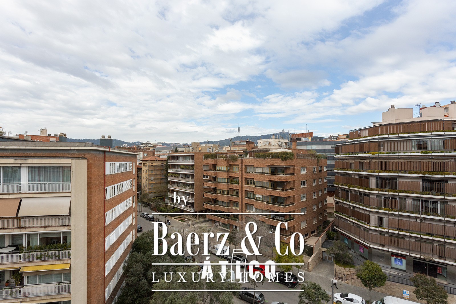 Attic Barcelona is distinguished by its privileged position in Sant Gervasi-Galvany, an address synonymous with discretion and refined urban living. This penthouse occupies 231 m², facing south and welcoming natural light throughout the day. With panoramic views that sweep from the sea to the mountains, each room benefits from a quiet sense of space, accentuated by high ceilings that contribute to the rhythm and comfort of daily life.