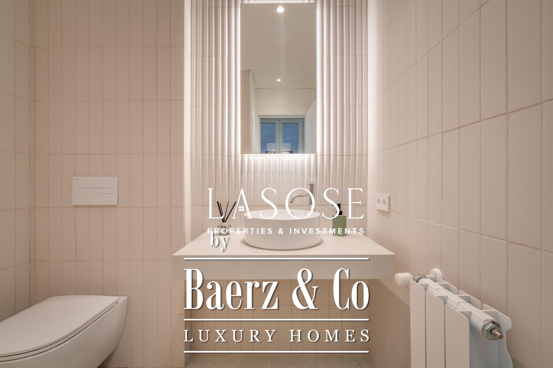 This particular residence offers 137 m² of living space, thoughtfully arranged with two bedrooms and three bathrooms. Balconies and a generous terrace connect interiors to the pulse of the city, while the building’s façade and communal areas reflect the elegance of classic Barcelona. Interior finishes, designed by Estudio Vilablanch, balance modernity with enduring style, featuring premium appliances, expansive wardrobes, heating, and a refined light-filled atmosphere.
