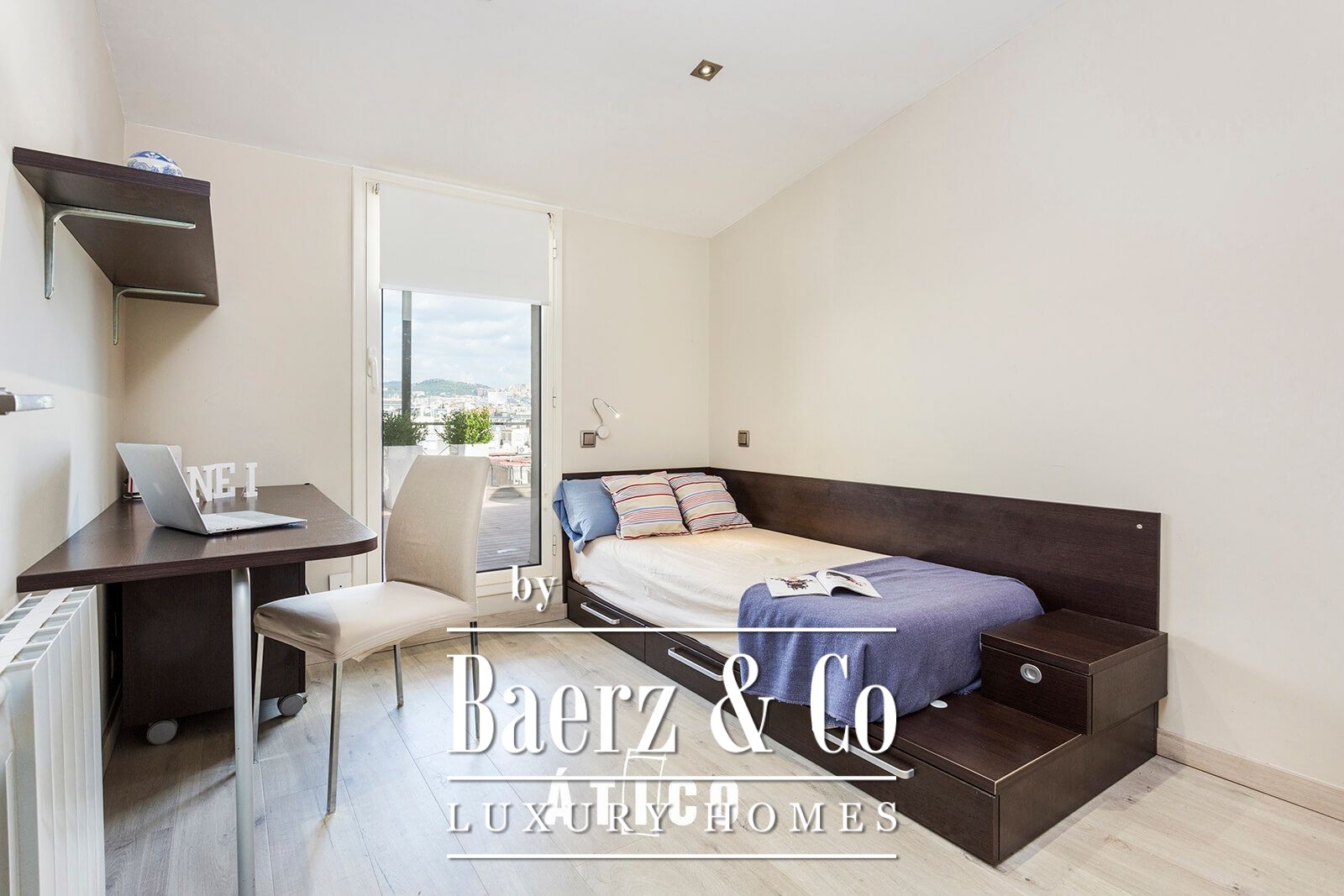 Natural gas heating and air conditioning ensure year-round ease. The setting situates you two minutes from Plaça Catalunya, surrounded by independent shops and the convenience of El Corte Inglés. Families will appreciate proximity to schools. This penthouse for rent in Barcelona is accessible, connected and quietly poised above the rhythms of the city.