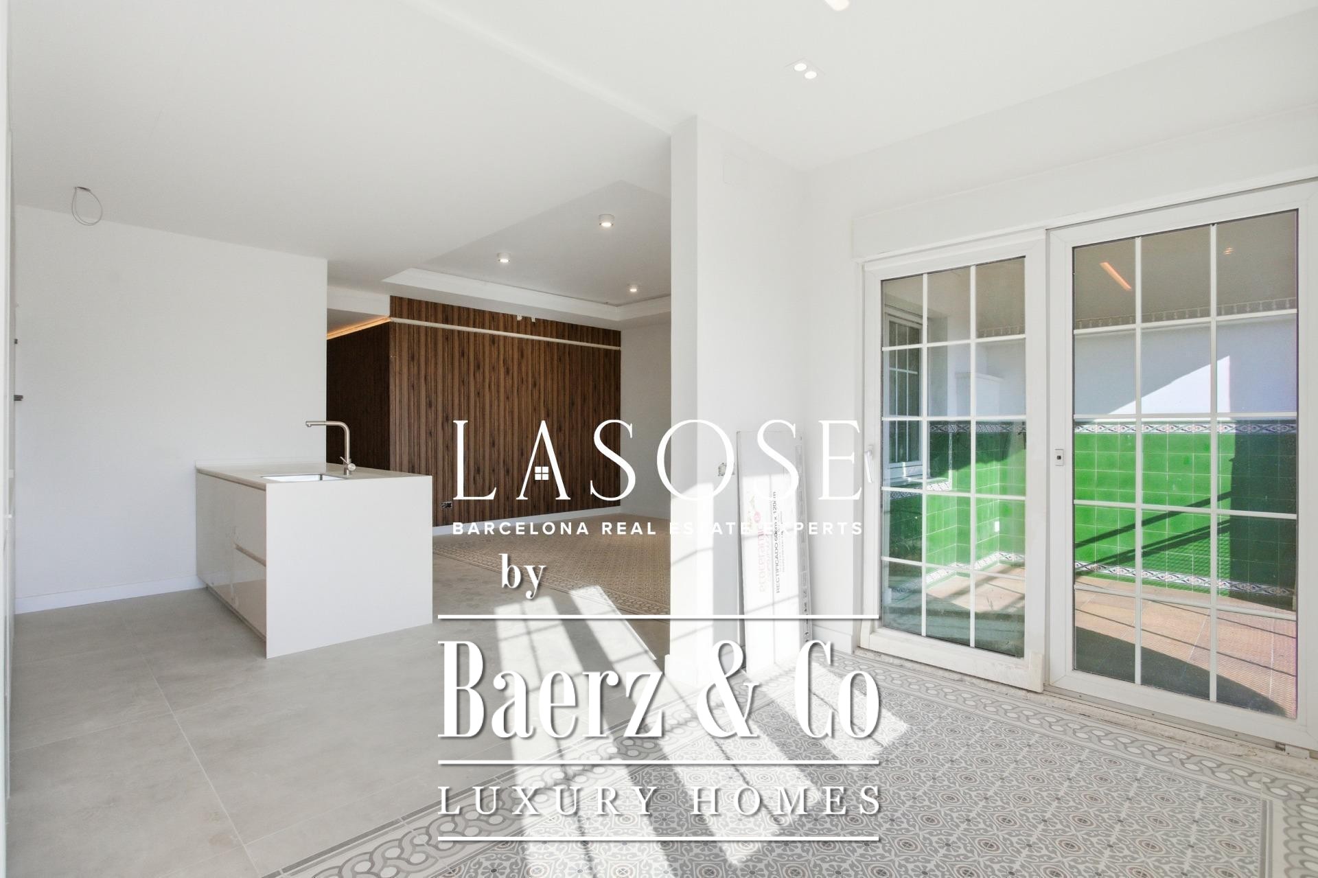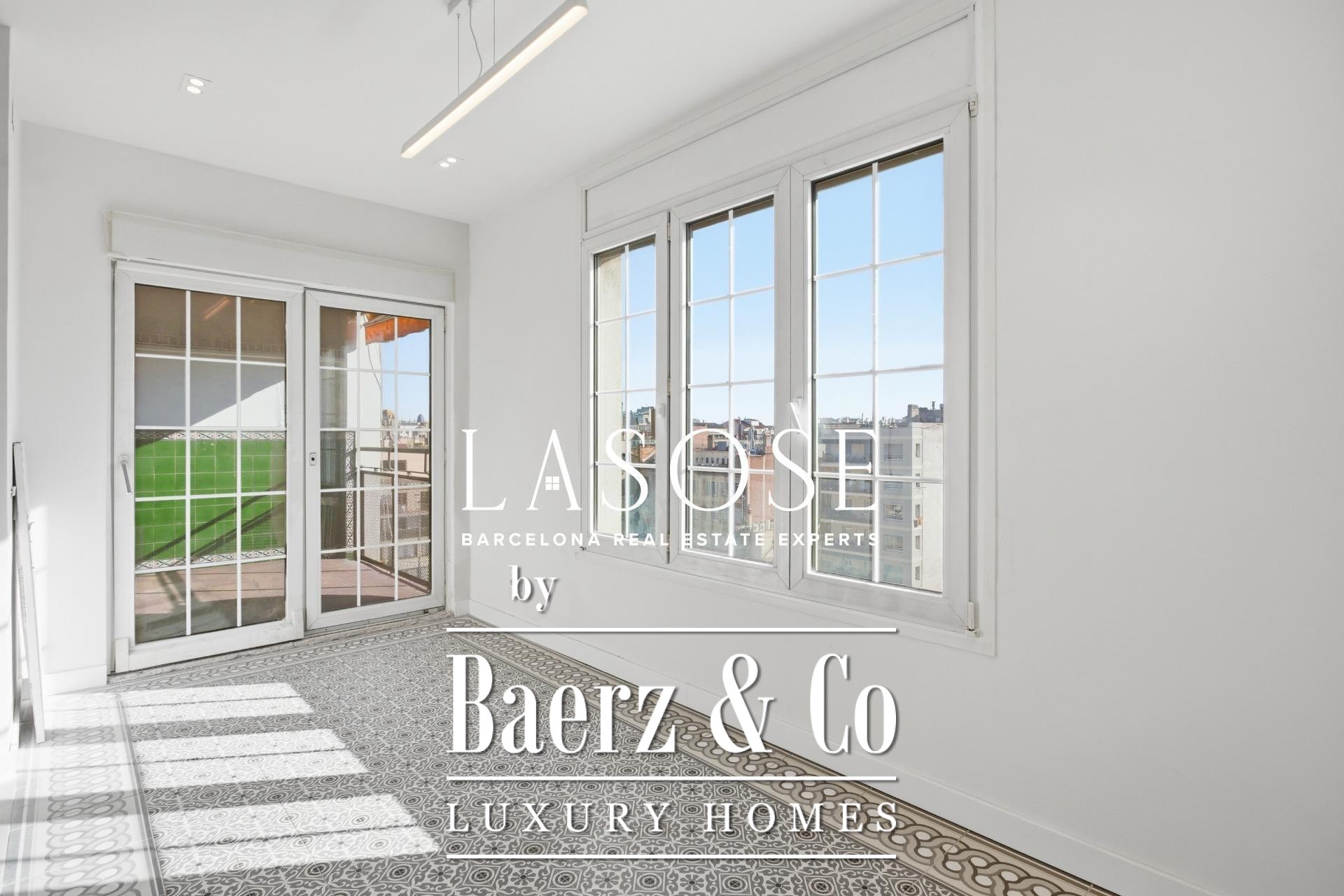 Penthouse Dreta de l'Eixample Barcelona presents a rare intersection of architectural heritage and refined contemporary space. This 131 m² residence unfolds within a stately 1910 building located between Rambla de Catalunya and Carrer de Balmes, a setting acclaimed for its modernist façades, tree-lined boulevards, and discreet vibrancy.