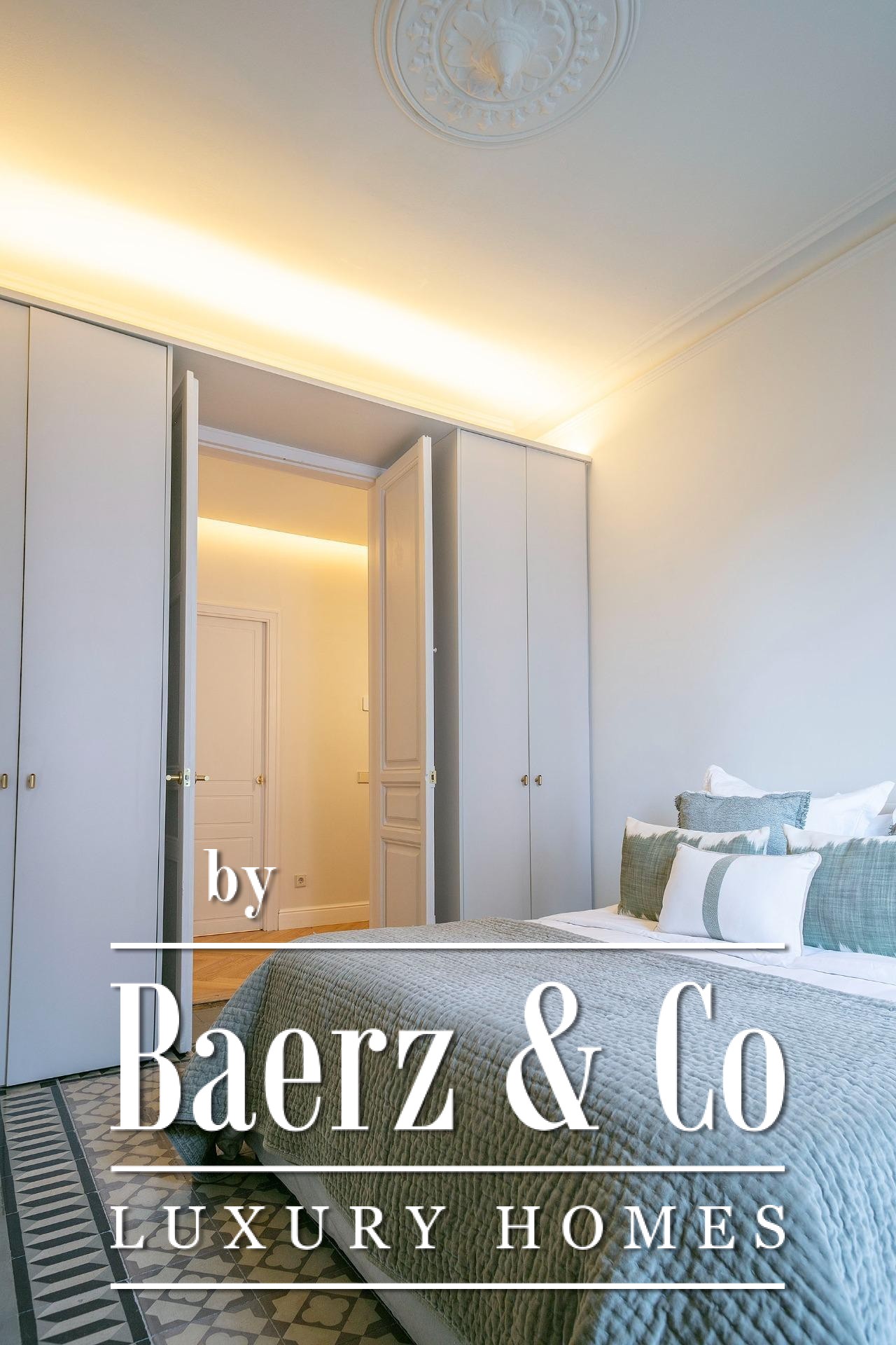 A versatile independent study provides options for work or retreat, complemented by two additional full bathrooms and a guest powder room. Restored original hydraulic tile floors and ceilings pair with herringbone natural oak parquet and bespoke paneling, combining authentic charm with elegant modernity. Balcon, elevator, fitted wardrobes, integrated laundry, and quality heating round out a property of enduring appeal.