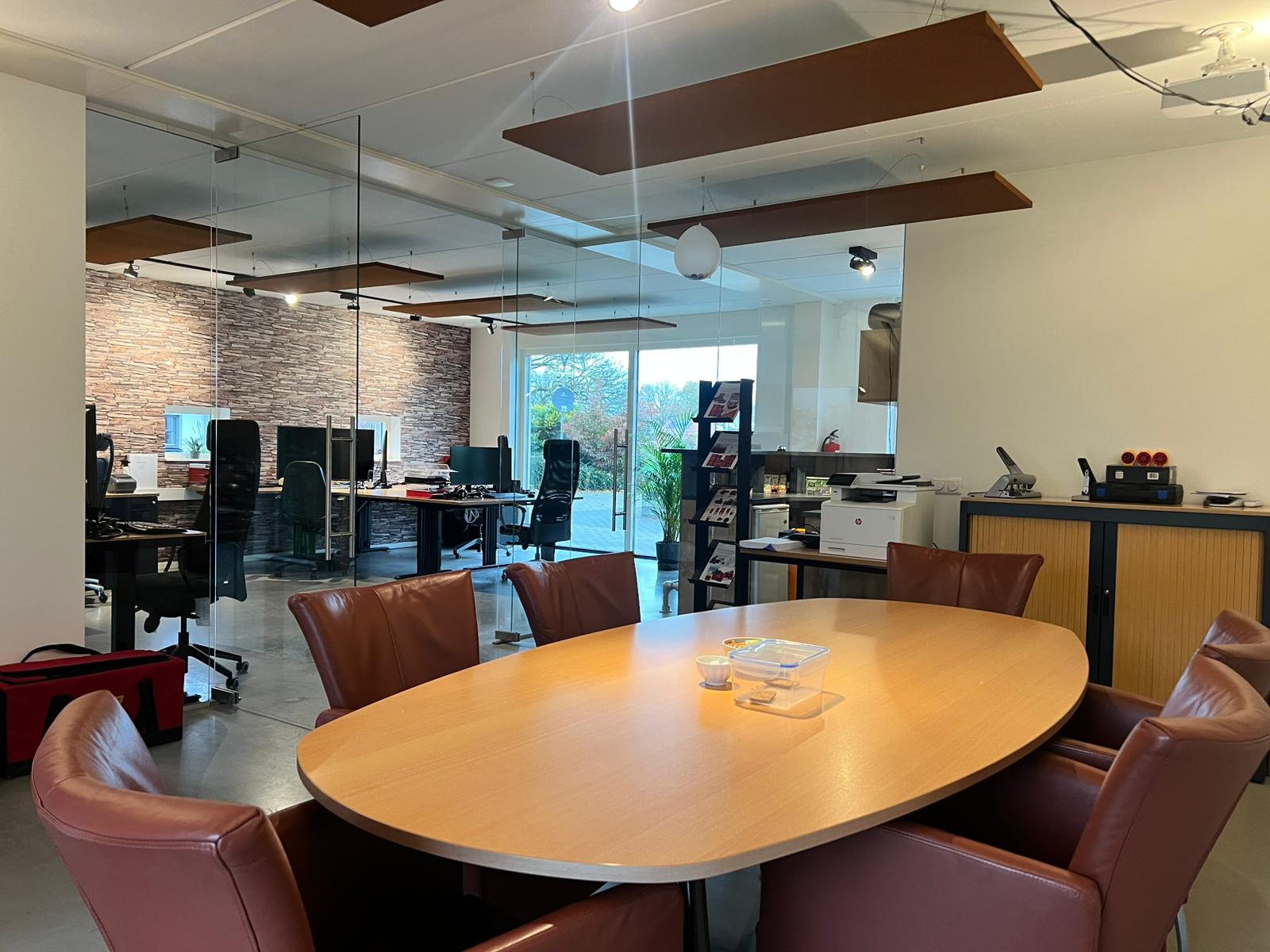 Perhaps you have your own business, maybe with staff, and you want to work from home. That's possible! There is a more than spacious U-shaped annexe consisting of an office with presentation room (approx. 84 m²), toilet, pantry with close-in boiler, and a workshop (90 m²) where you can get straight to work. Like the main house, the entire building is equipped with fibre optic Cat6 Ethernet cables.