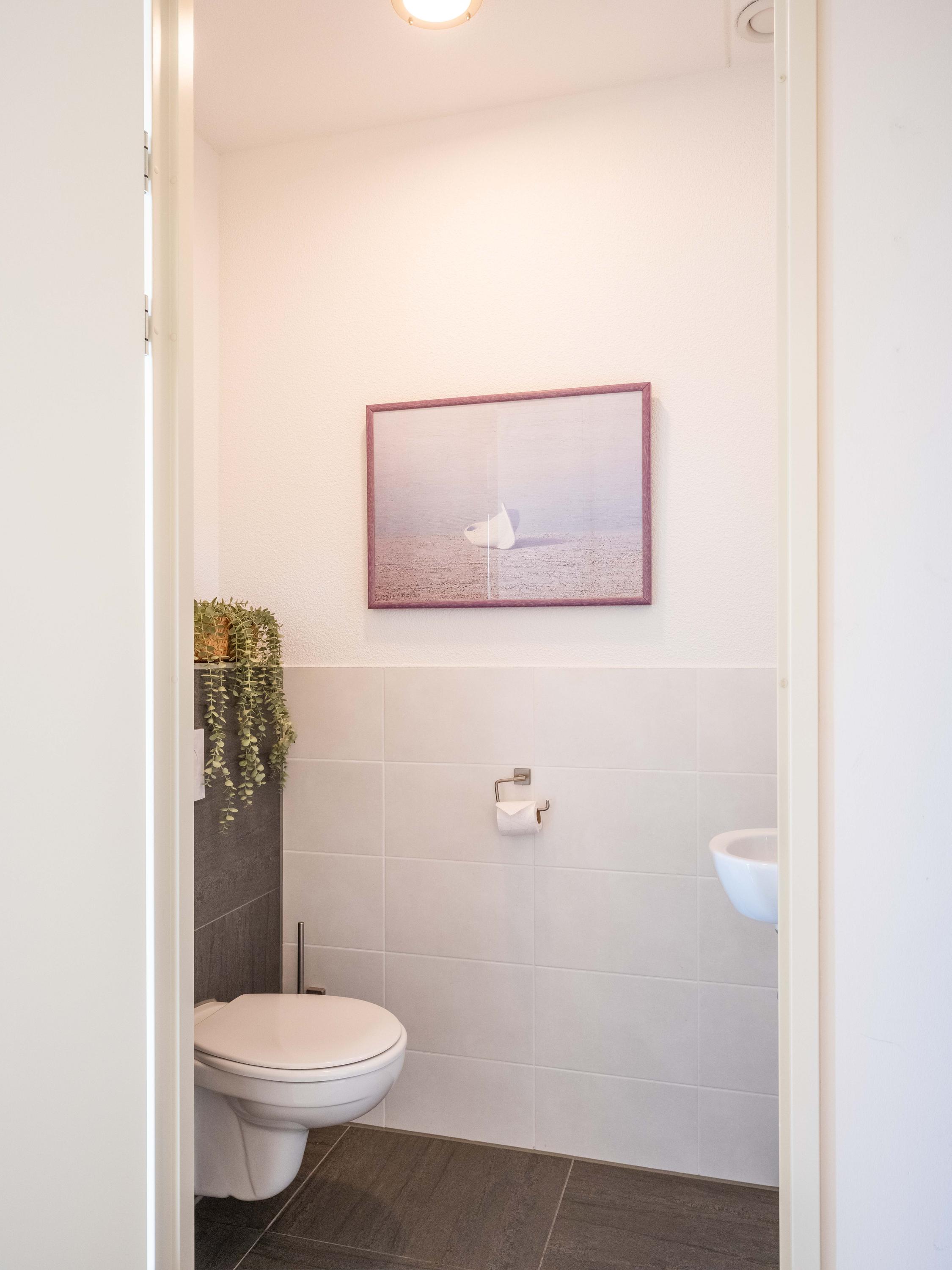In the hall, there is a separate toilet, a cupboard with connections for the washing machine/dryer and a separate technical room.