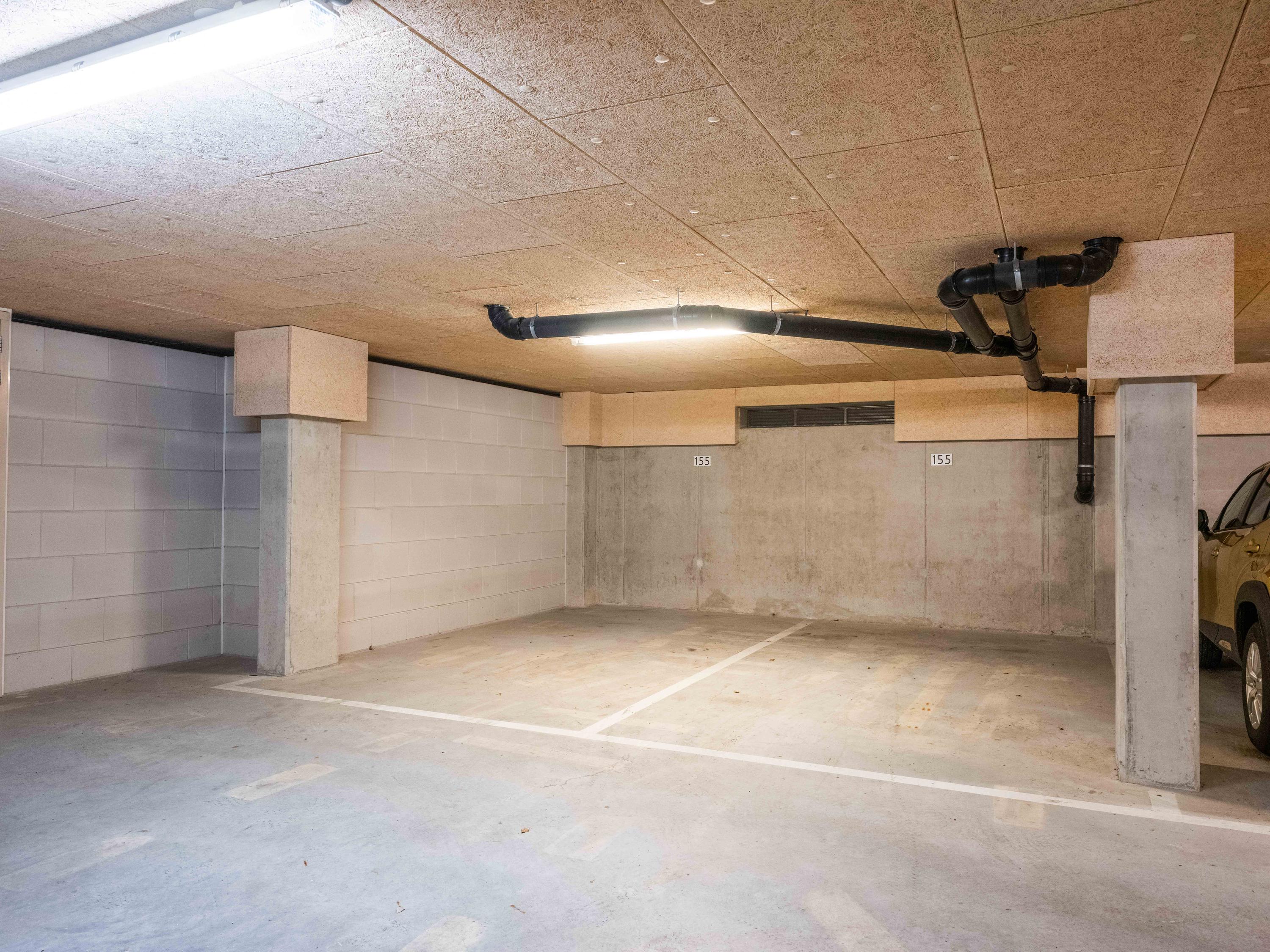You can park your car in two private spaces in the parking garage. You will also find the storage room here, which is equipped with electricity.