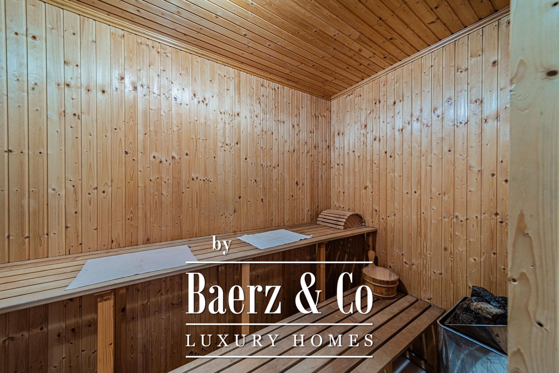 The landscape in front of the villa features pale stone paving, a swimming pool and dedicated areas for sunbathing, all designed to encourage easeful living by the sea. A pedestrian path brings you just 15 metres to the water, where a small pier allows for boat mooring and private retreat. Throughout, the materials and interior finishes display thoughtful attention to detail, imparting a sense of understated exclusivity.