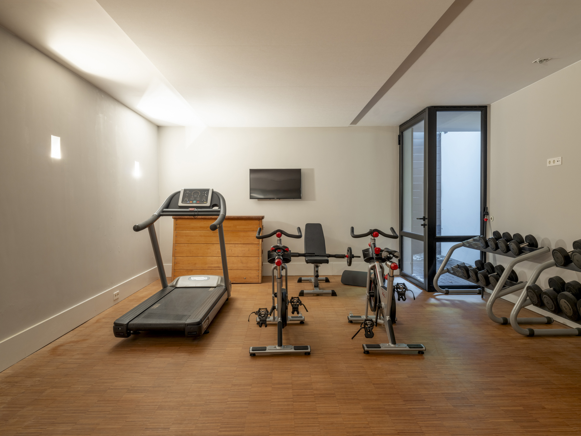 This basement, divided into two parts, can be accessed via the central hall or the study in the side wing. Here, you can work out in the fitness room, do laundry in the laundry/linen room, and watch movies or game in the TV room. This section also includes the technical room.