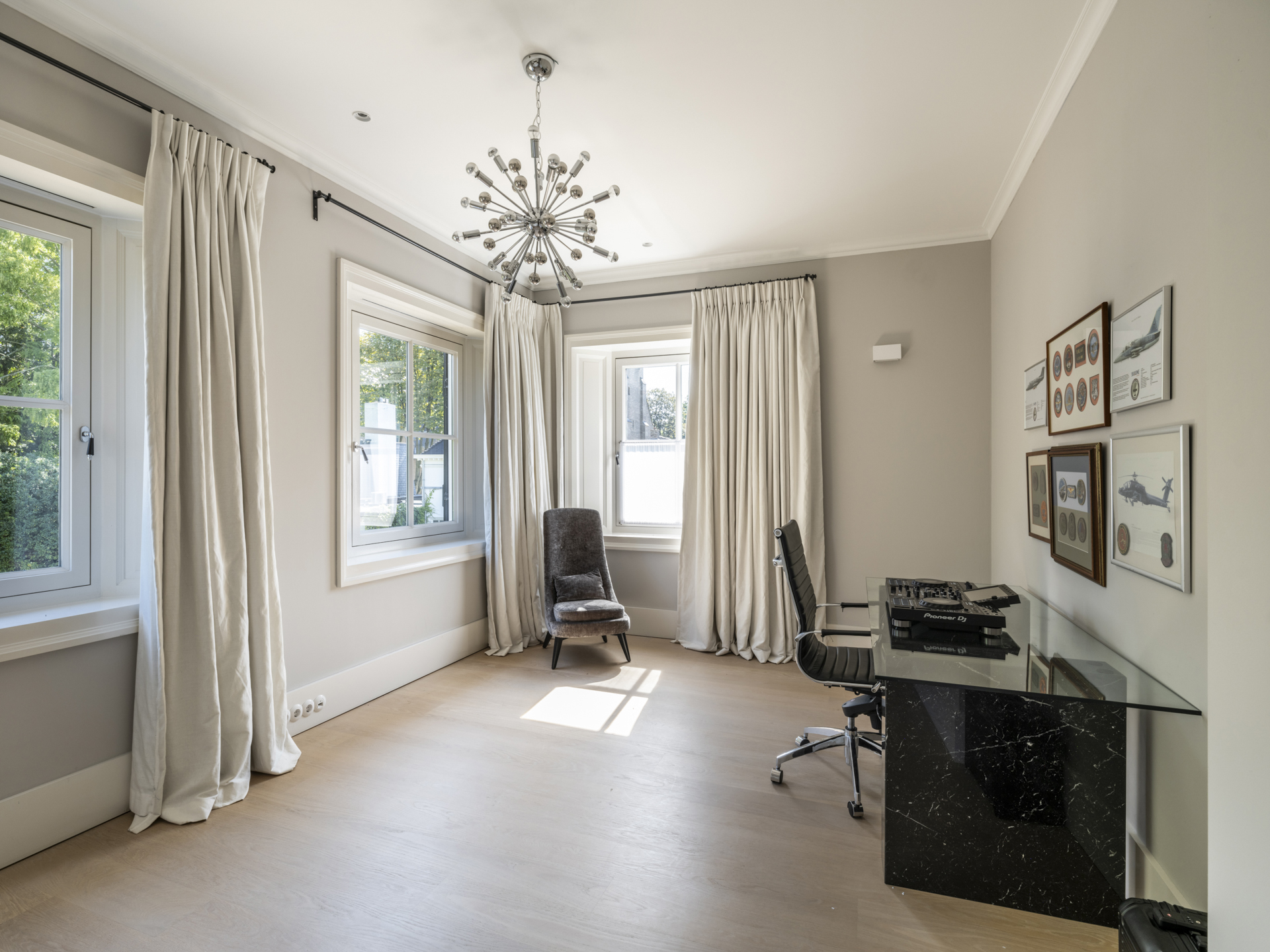 This unique villa offers the atmosphere and charm of a classical villa with the comfort and technology of today. The property includes 7 (bed)rooms, multiple work/TV rooms, and ample sanitary facilities and bathrooms. Additionally, the basement offers a large storage room, a playroom, a laundry room, and a gym.