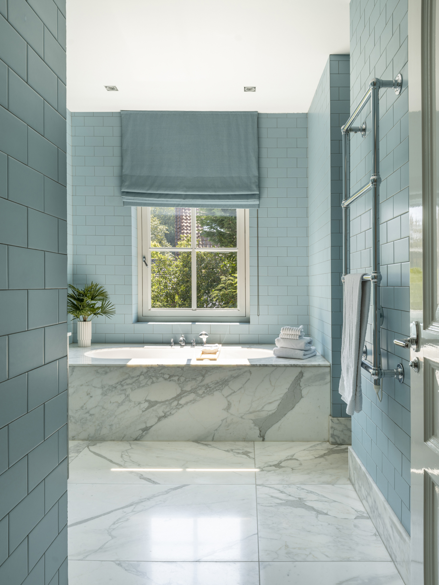 Via a wide staircase and spacious landing, you can reach the master bedroom (with balcony and view of the garden). The adjacent dressing room is openly connected to the master bathroom.