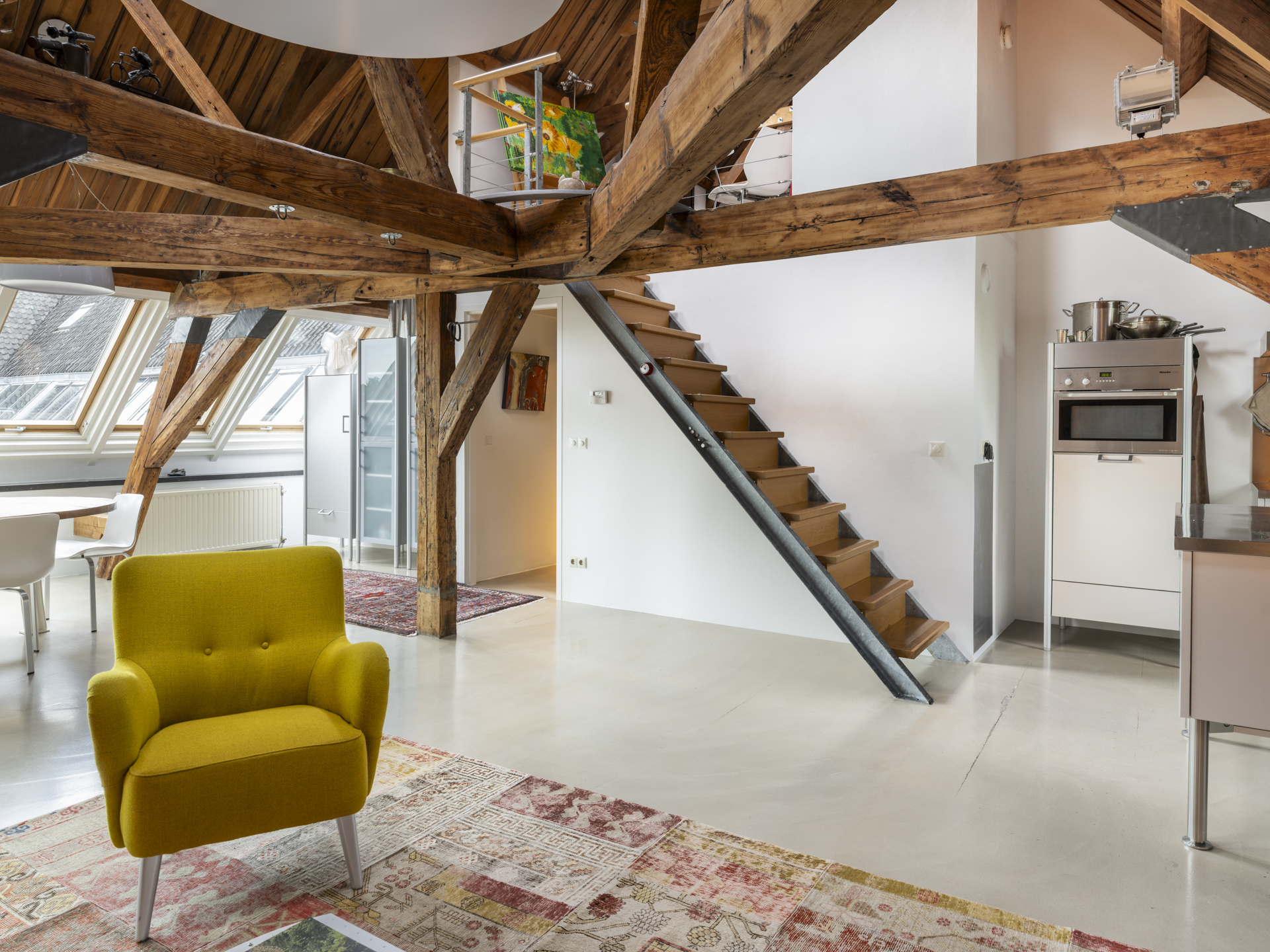 This portiekflat Breda sits atop the historic 'Justinus van Nassau', a monument whose layered provenance reaches back to the sixteenth century. The transformation into a residential complex around 2000 preserved its distinctive Louis XVI roof structure, creating a singular living environment in the city's vibrant heart. The focus keyword portiekflat Breda is aptly suited to this home, where open volumes and a soaring roofline nearly 6 meters high imbue the 155 m² space with unique light and rhythm.