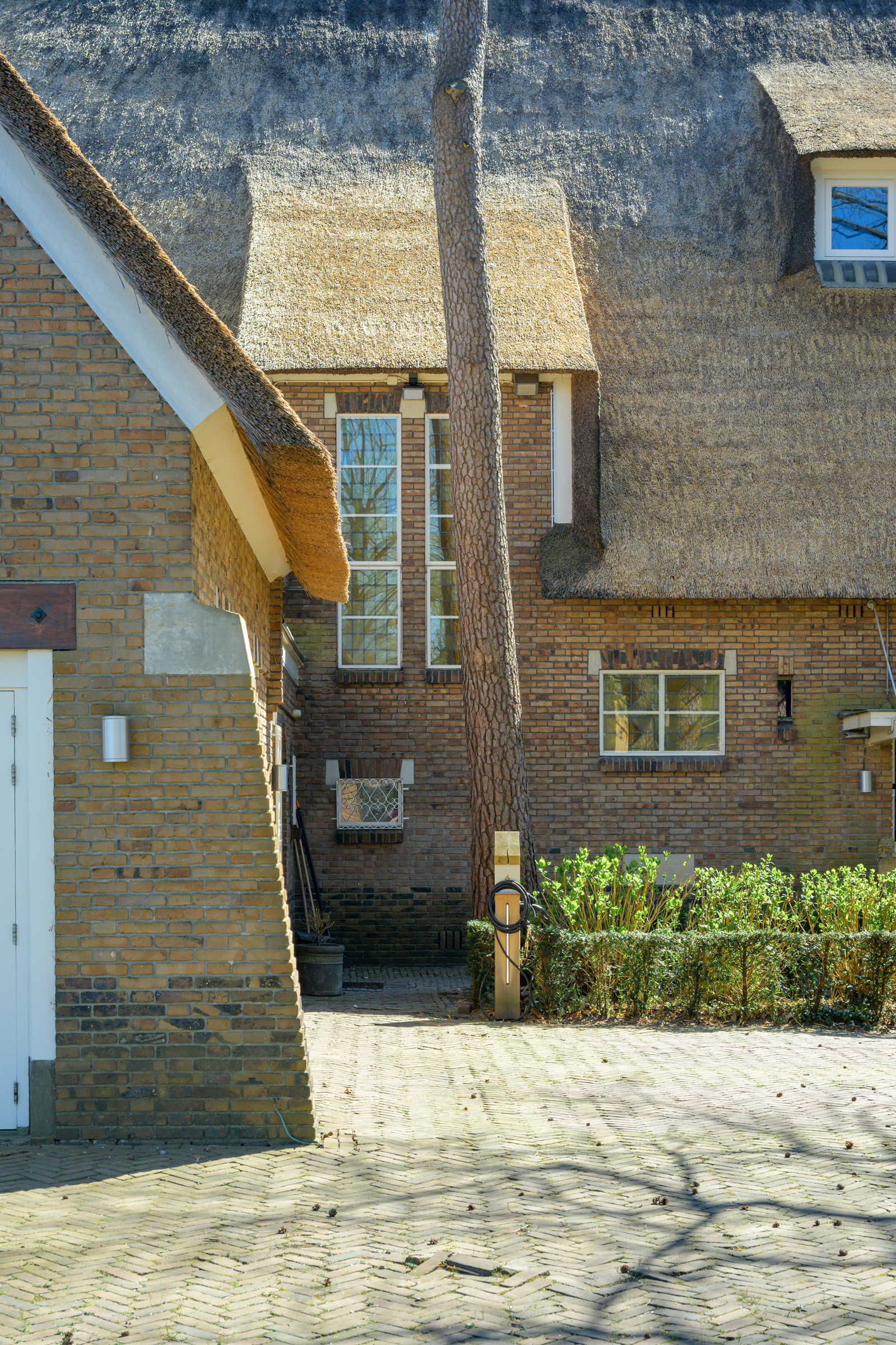 Villa Breda is an expansive country house set on 2,830 m² of wooded land in the stately Ruitersbos district, where privacy meets quiet grandeur. This villa offers 521 m² of living space, seamlessly blending original 1932 details with modern craftsmanship. The thatched roof and stained glass articulate its heritage, while extensive renovations support contemporary comfort.