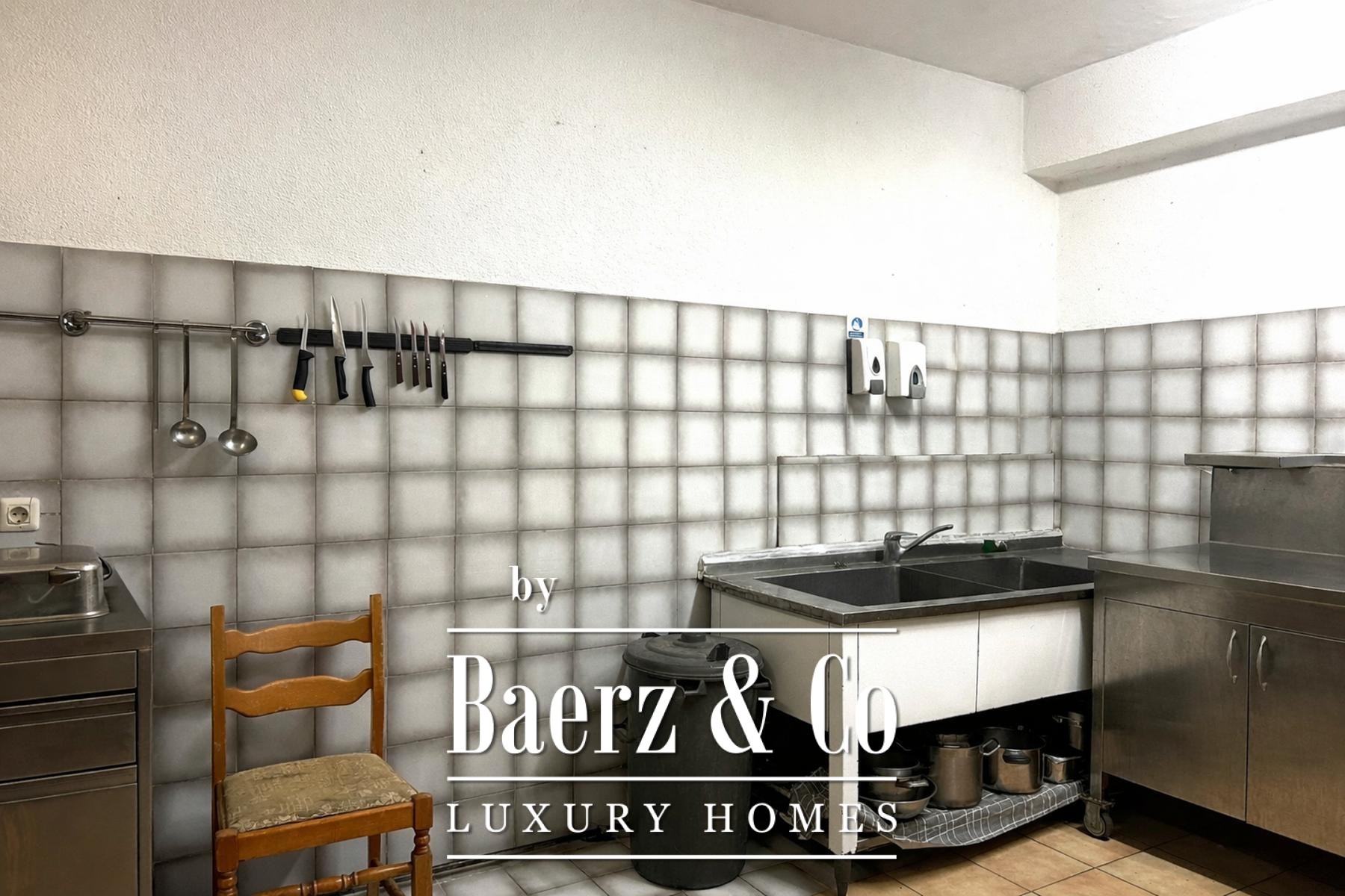 On the ground floor, a hospitality space of 259 m² opens directly to a covered passage, ready for new concepts or continuation of an established business. A smaller apartment is also integrated on this level; the upper floors contain additional residential units with both internal and external connections, offering privacy and independence to each.
