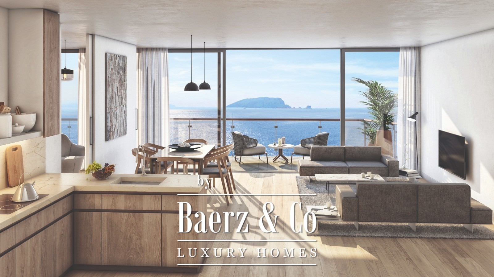 The residence spans 115 m² across two levels on the 10th and 11th floors, comprising two bedrooms, two bathrooms, a guest toilet, open living and dining areas, and a terrace with uninterrupted sea views. Delivered fully furnished, the apartment’s interiors are poised for immediate comfort and discretion.