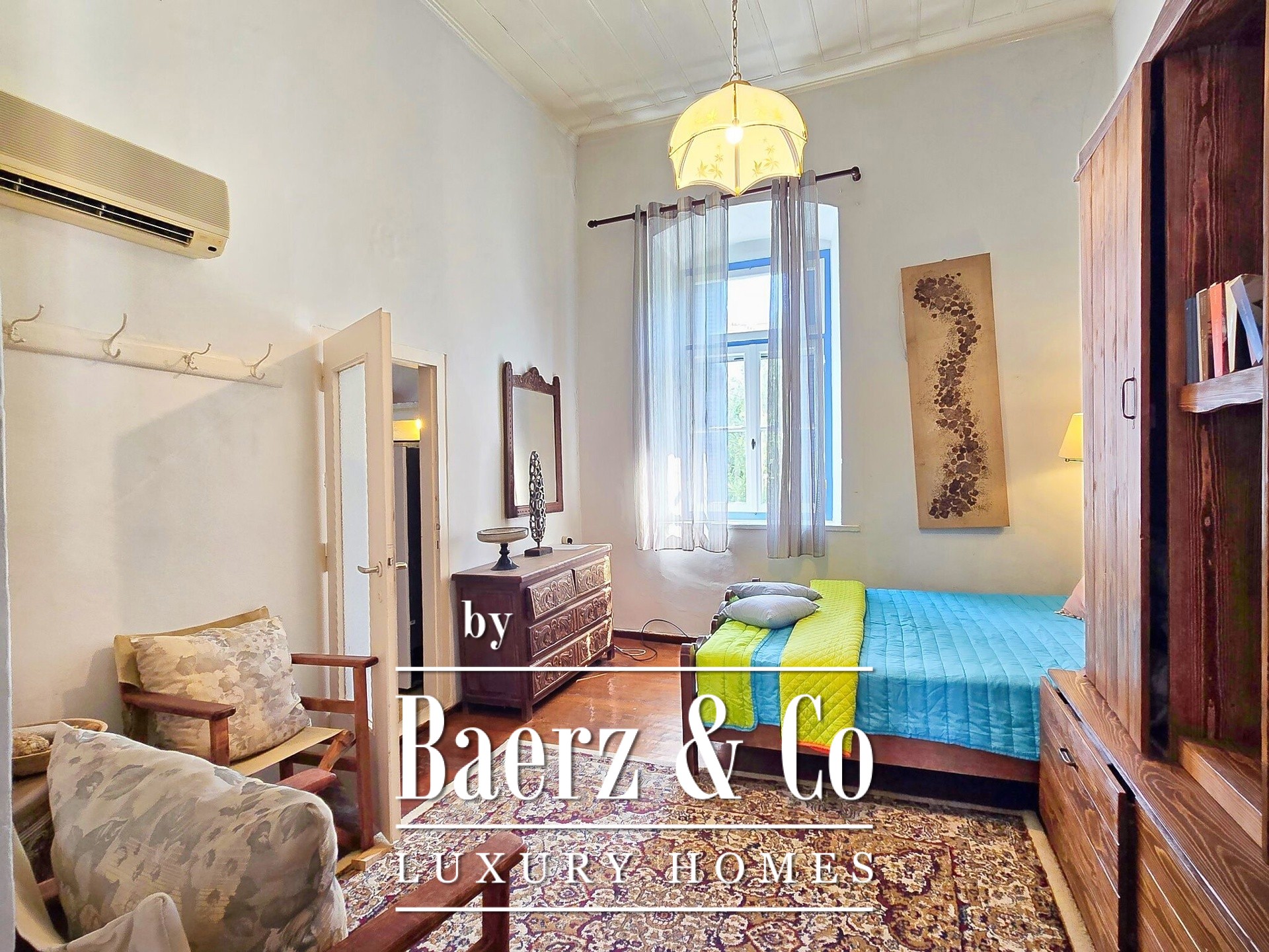 In front of the beach of Agios Mamas, we will encounter a rare gem of the great architecture of Spetses. This is a first floor apartment, which is an integral part of a well-preserved stone-built mansion. With a total area of 198.90 sq m, the apartment is distinguished by the sense of grandeur and authenticity it exudes, while above it there is a 12.90 sq m attic, with a small terrace that offers a unique view. Upon entering the