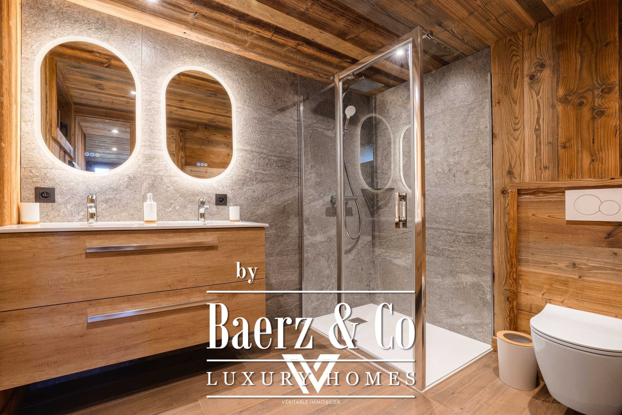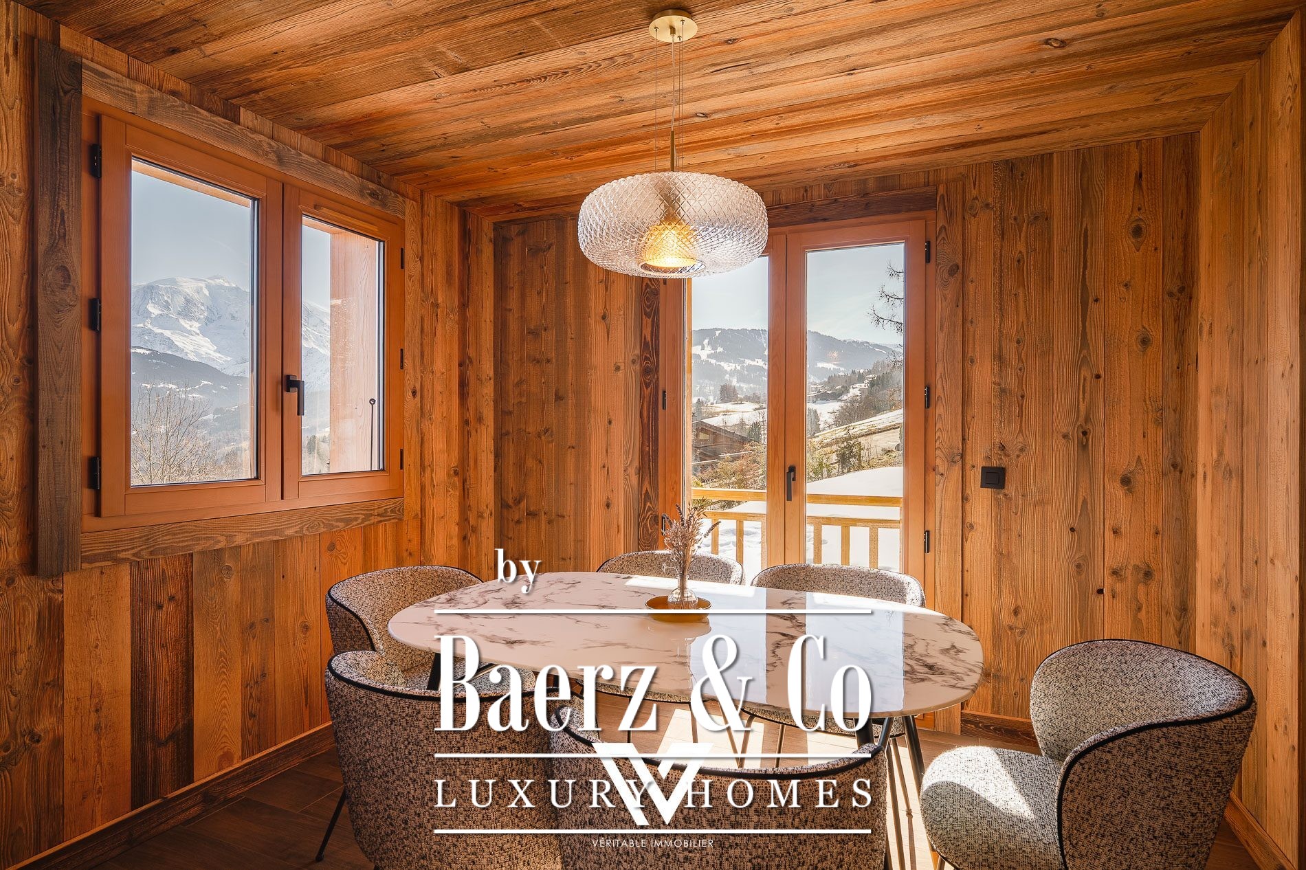 Chalet Combloux facing Mont Blanc is an exceptional residence reimagined with meticulous attention to detail and environmental responsibility. Renovated throughout using high-quality eco-friendly materials, the 147 m² chalet blends refined features with a palpable warmth, set on a plot of 785 m² in this renowned alpine setting.