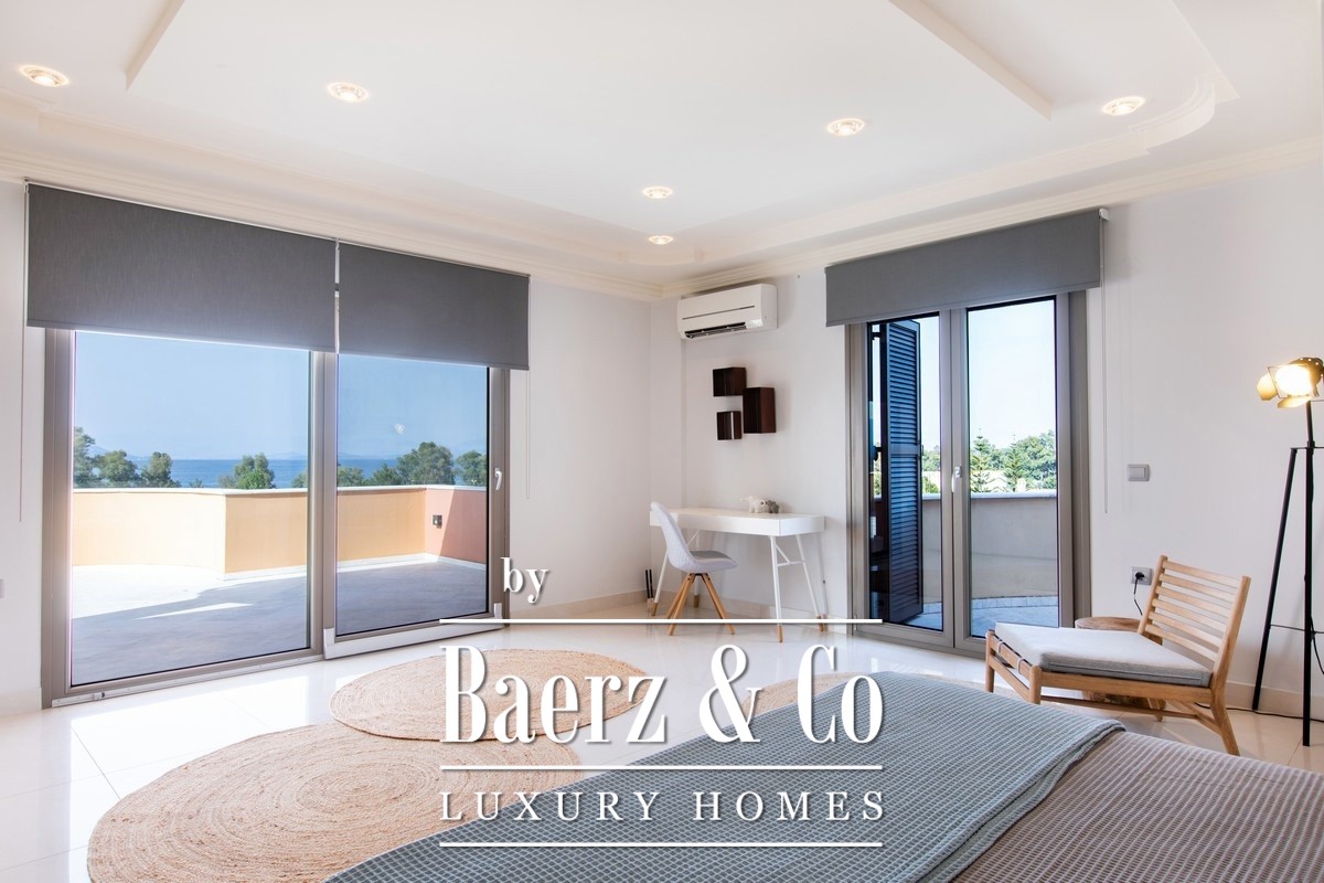 This property opens with two independent ground-floor apartments, each thoughtfully designed for autonomy and privacy. The main maisonette spans the first and second floors, featuring an expansive living zone, state-of-the-art kitchen, and a sequence of luminous bedrooms opening to semi-outdoor spaces that invite in sea breezes and landscape views. Five bathrooms are distributed across the home for comfort.