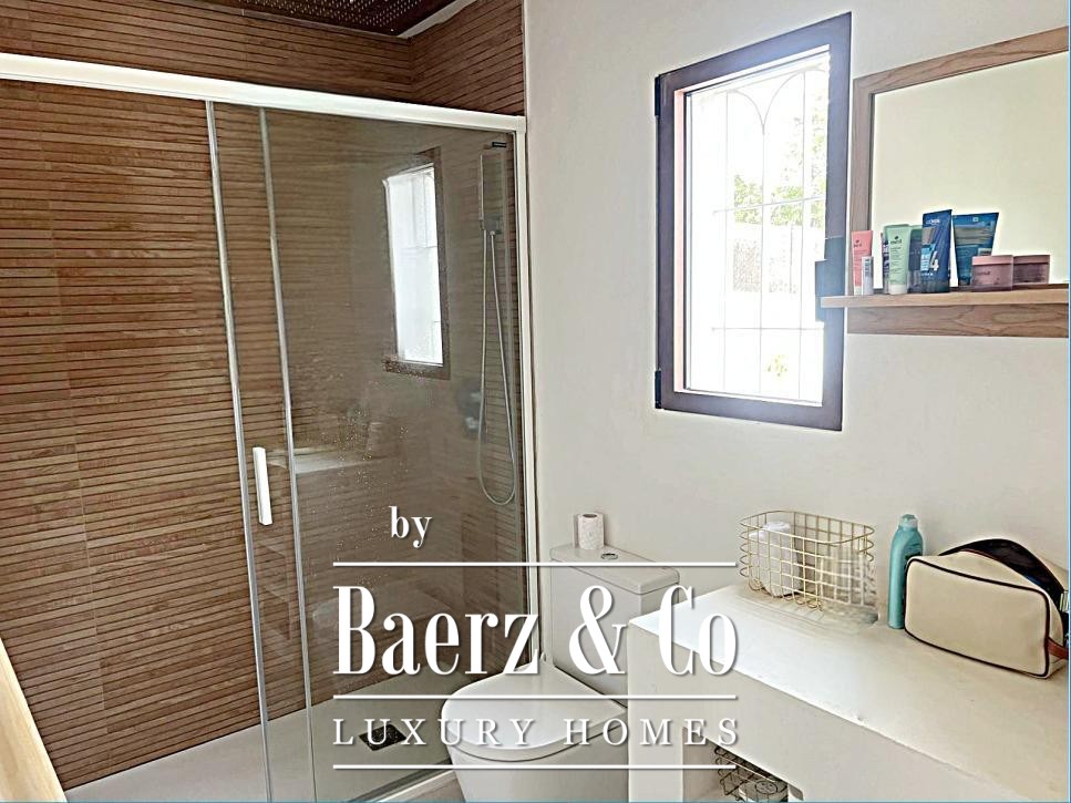 Ibiza-Style Villa Cunit offers a masterfully renovated, single-storey home where Mediterranean light defines the rhythm of daily life. This property features 141 m² of usable living space and a total built area of 347 m², designed for effortless flow across one luminous level, set above a 147 m² garage accommodating two to three vehicles. Whitewashed walls, open-plan American kitchen, and a fireplace evoke restrained luxury. The expansive living area, with its wide sliding glass door, extends onto an East-facing terrace overlooking the 10 m by 4.75 m swimming pool, where sunlight traces the day’s arc. Additional South and West windows ensure sunlight throughout the house.