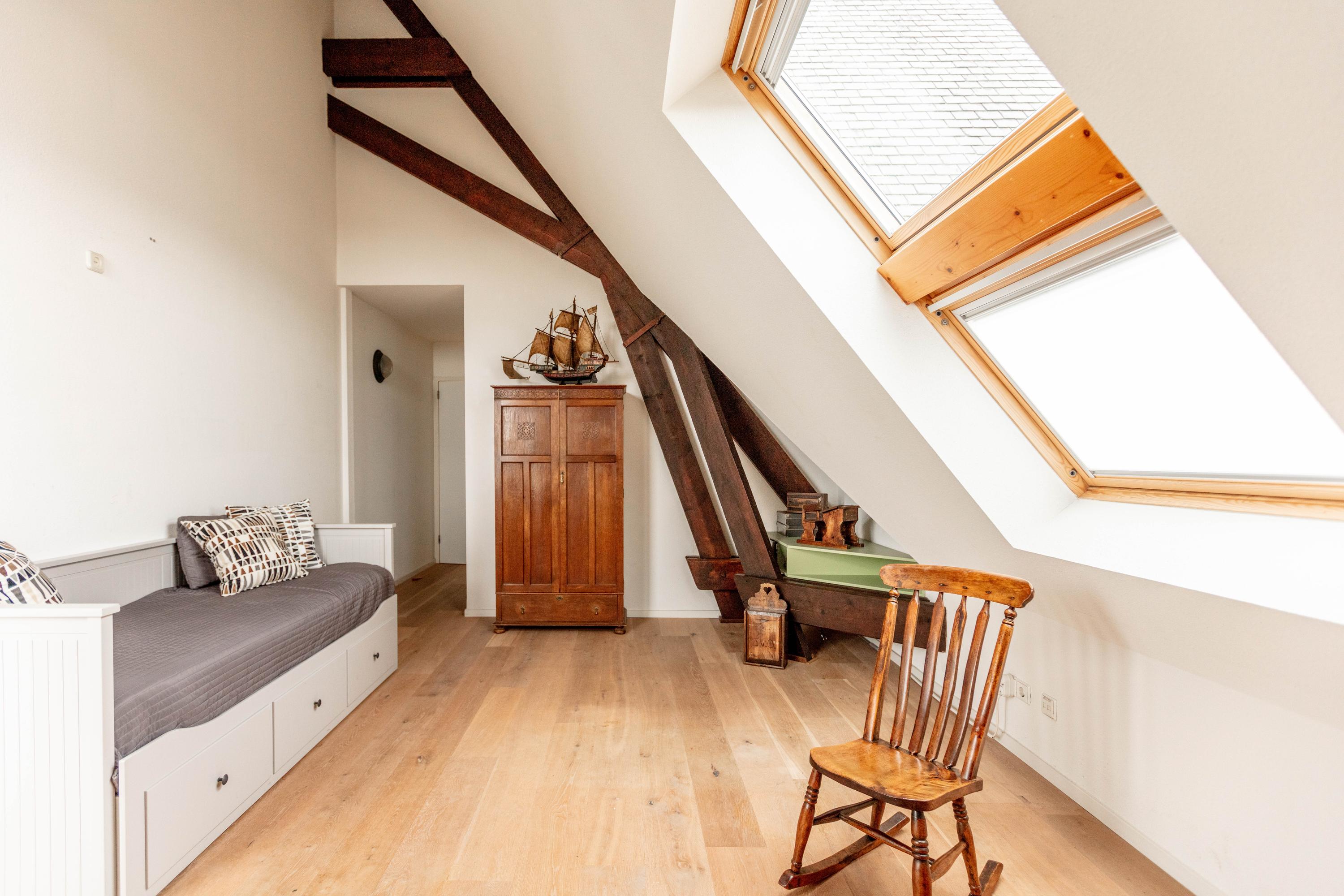 Deze kamer beschikt over een dakvenster en toegang tot een eigen balkon.