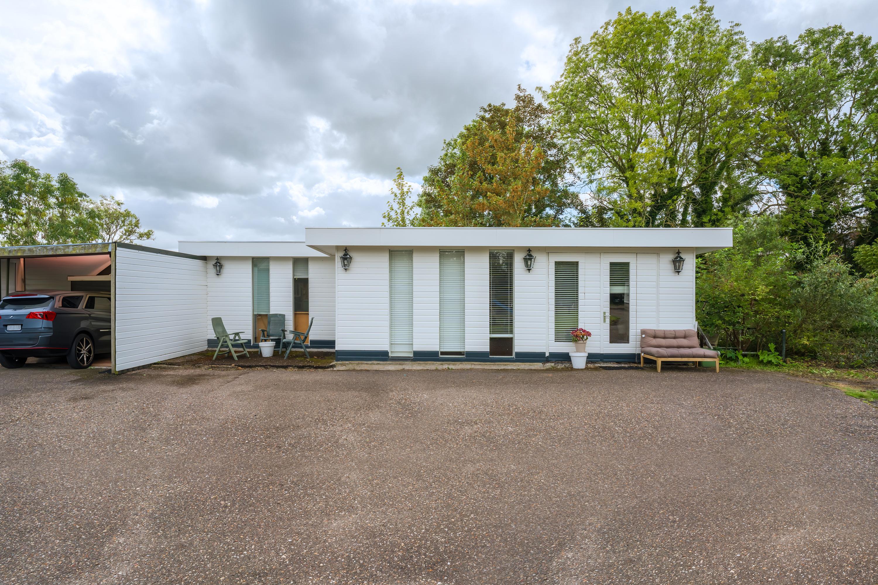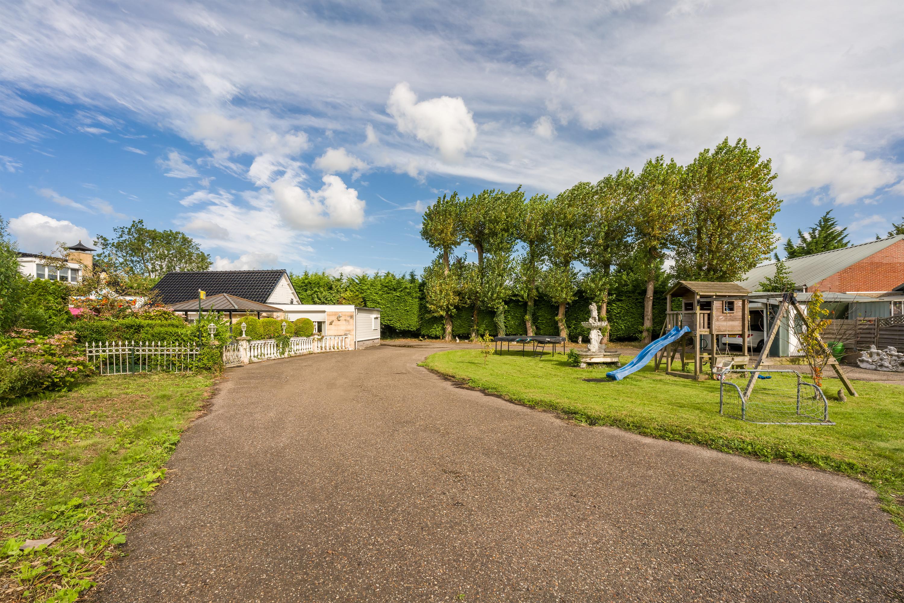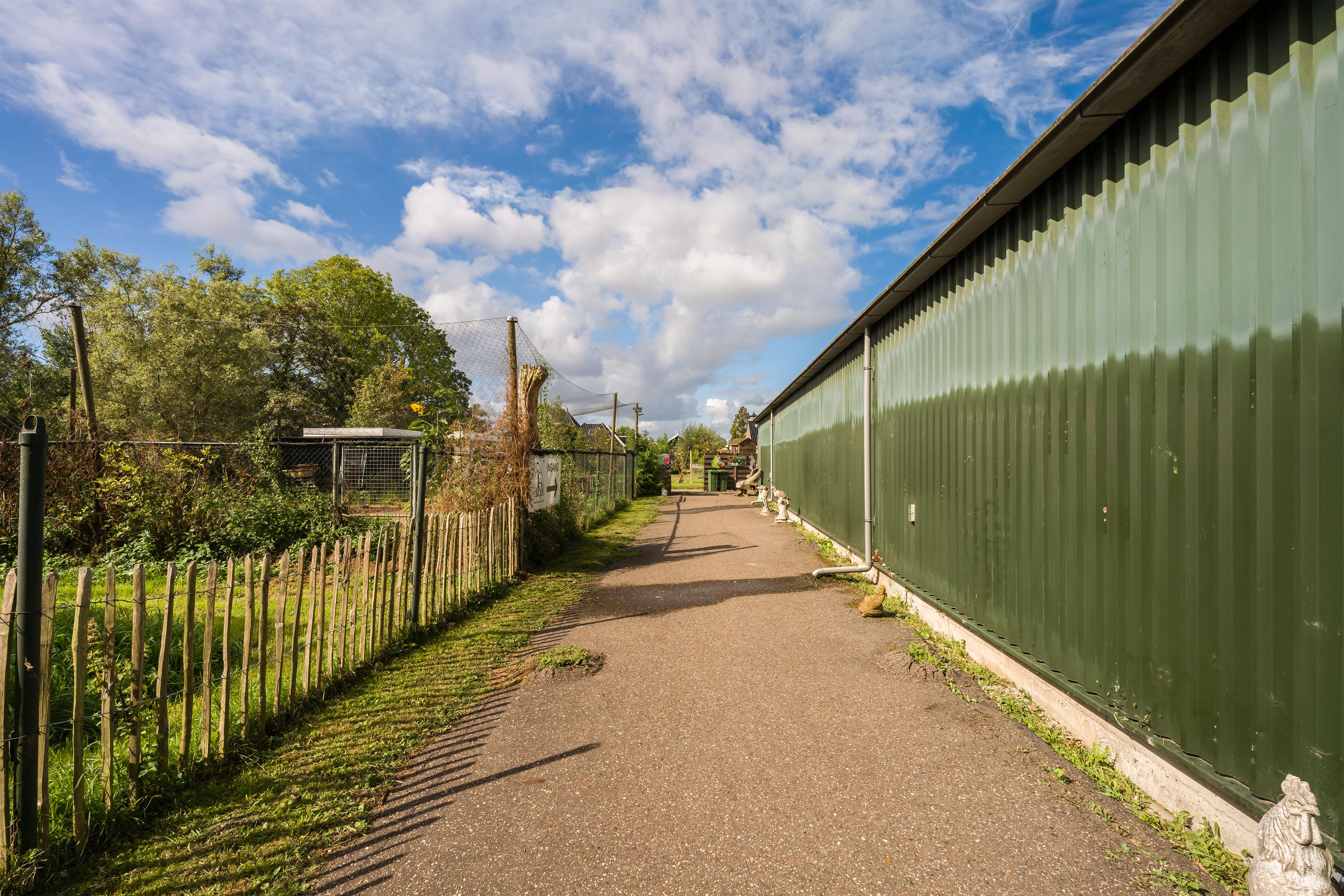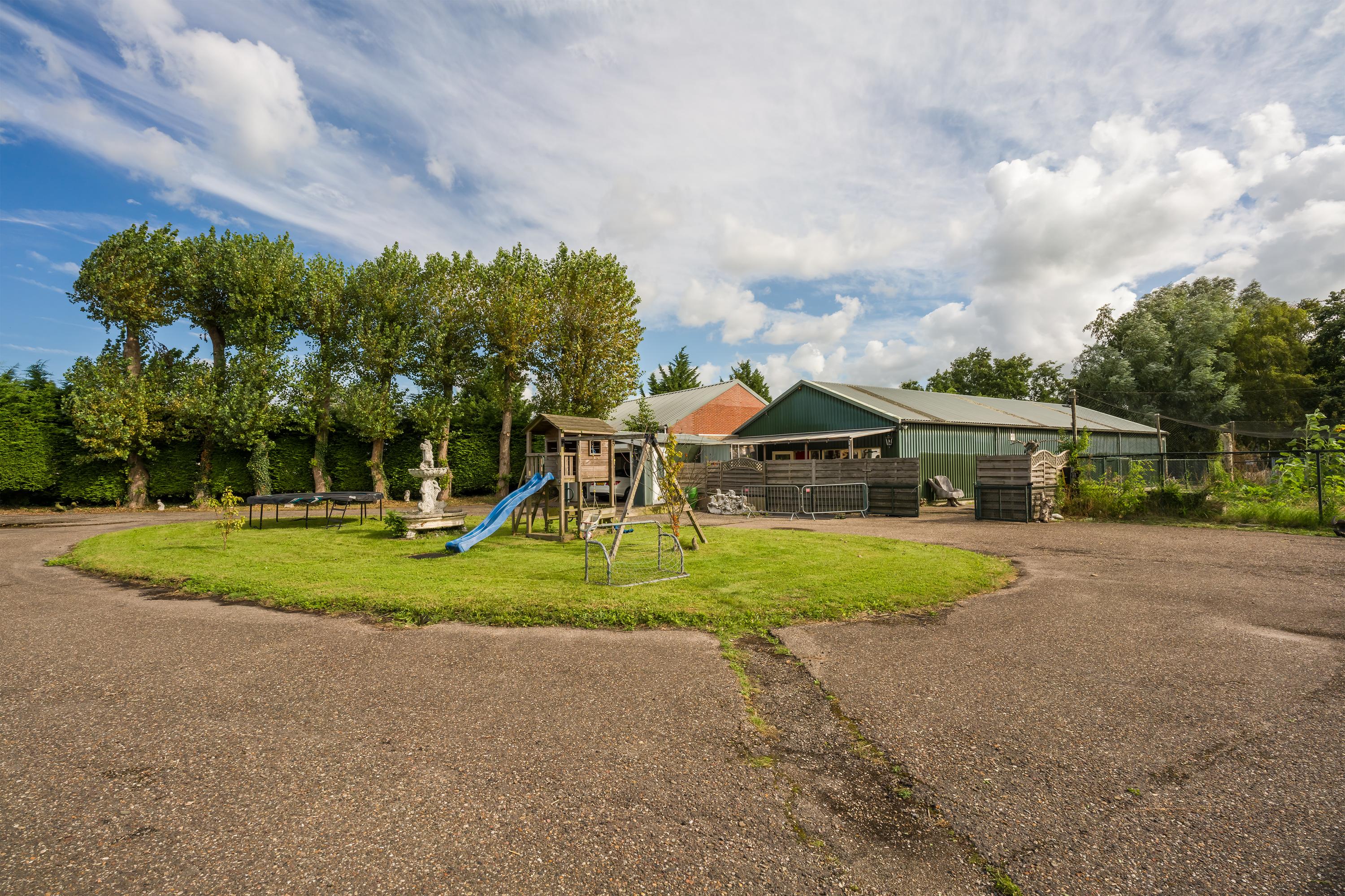 A beautifully enclosed private domain is hidden behind this cleverly positioned detached house with a guesthouse. The entire property exudes a grand vibe as soon as you drive up. Your eyes are drawn to the white iron gates that accentuate the green plot as you approach the gate. Your journey continues along the asphalt driveway, turning around at the back of the property and parking on the roundabout. From here, you can admire the American-style bungalow with its piled terrace, the spacious guesthouse, the commercial space, and the animal enclosures, where flamingos once graced the North Holland landscape.