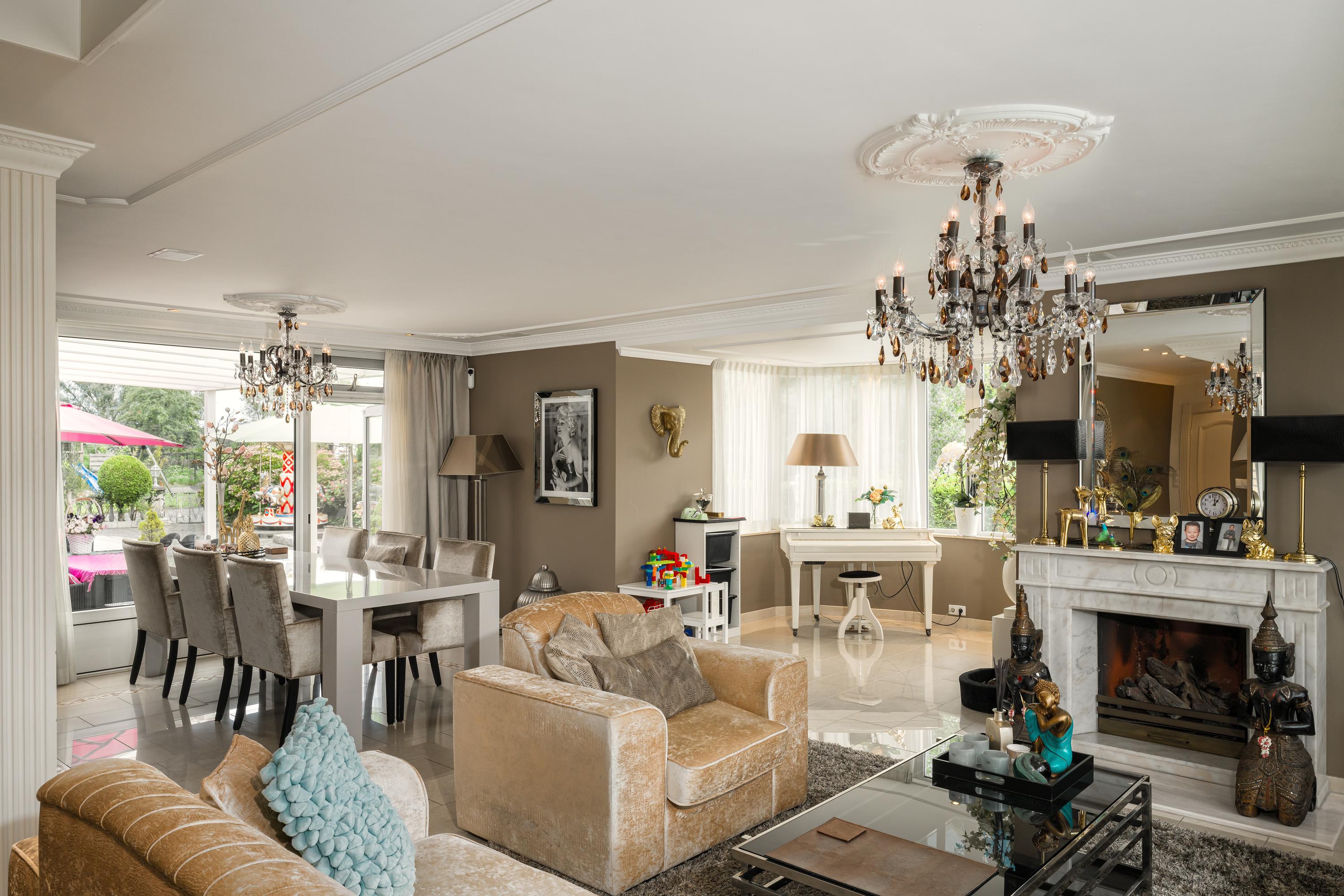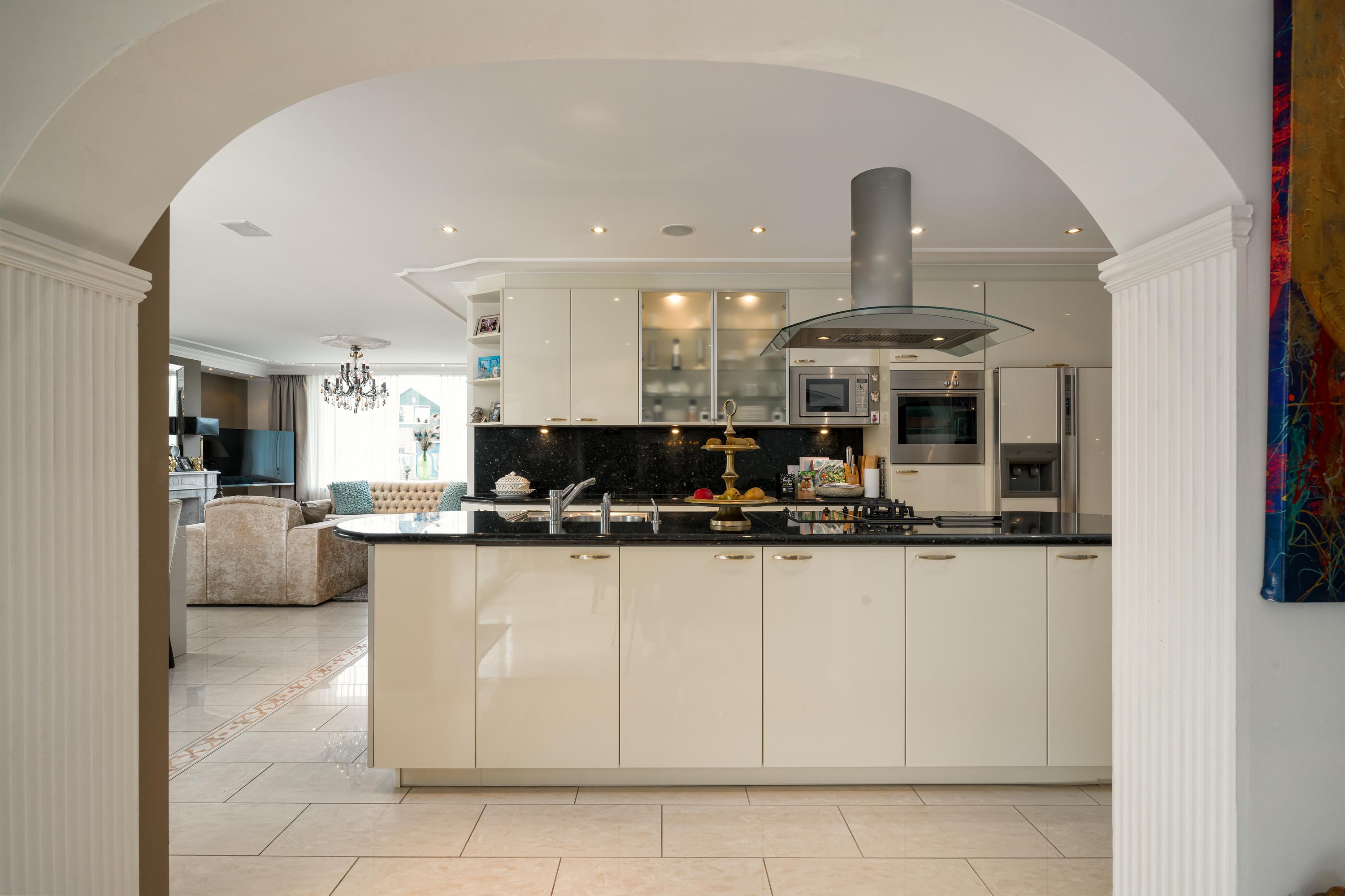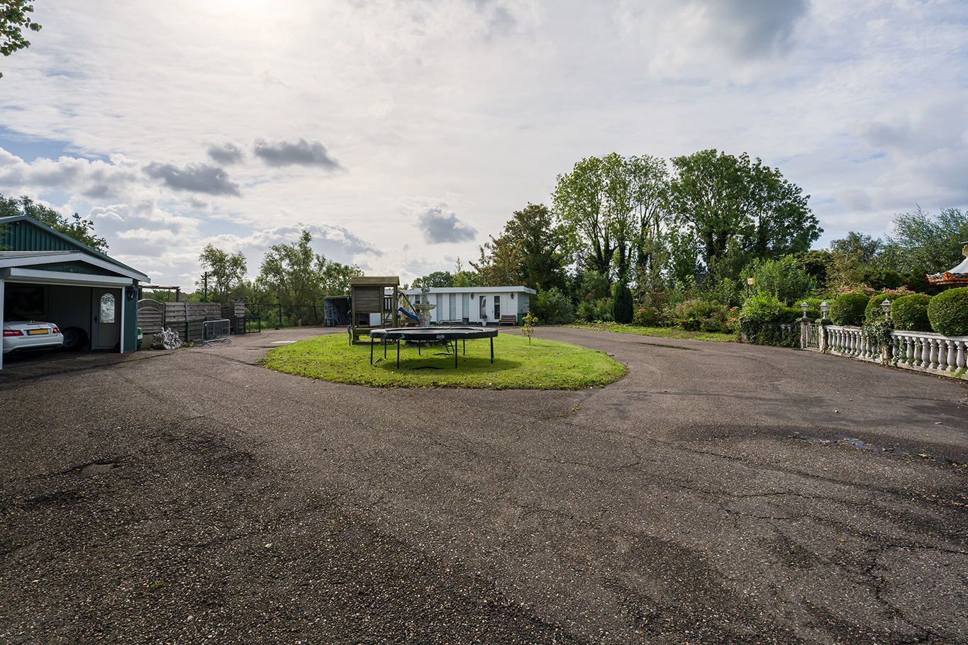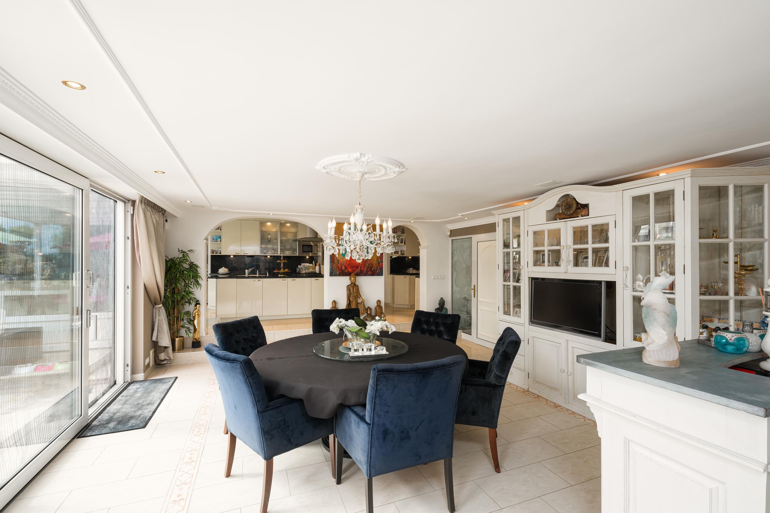 A beautifully enclosed private domain is hidden behind this cleverly positioned detached house with a guesthouse. The entire property exudes a grand vibe as soon as you drive up. Your eyes are drawn to the white iron gates that accentuate the green plot as you approach the gate. Your journey continues along the asphalt driveway, turning around at the back of the property and parking on the roundabout. From here, you can admire the American-style bungalow with its piled terrace, the spacious guesthouse, the commercial space, and the animal enclosures, where flamingos once graced the North Holland landscape.