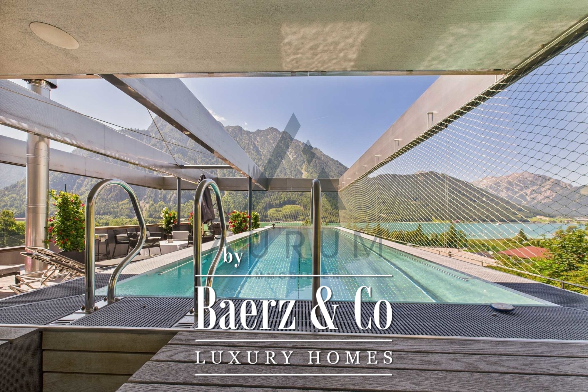 This exceptional property is located on a slightly elevated, sunny, south-facing slope above Lake Achensee in the district of Eben, part of the municipality of Eben am Achensee (Maurach district). The property is situated in a quiet and well-maintained residential area with unobstructed panoramic views of the lake and the surrounding mountain range.