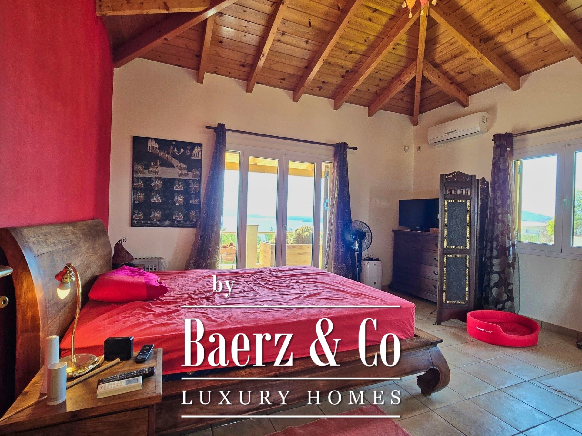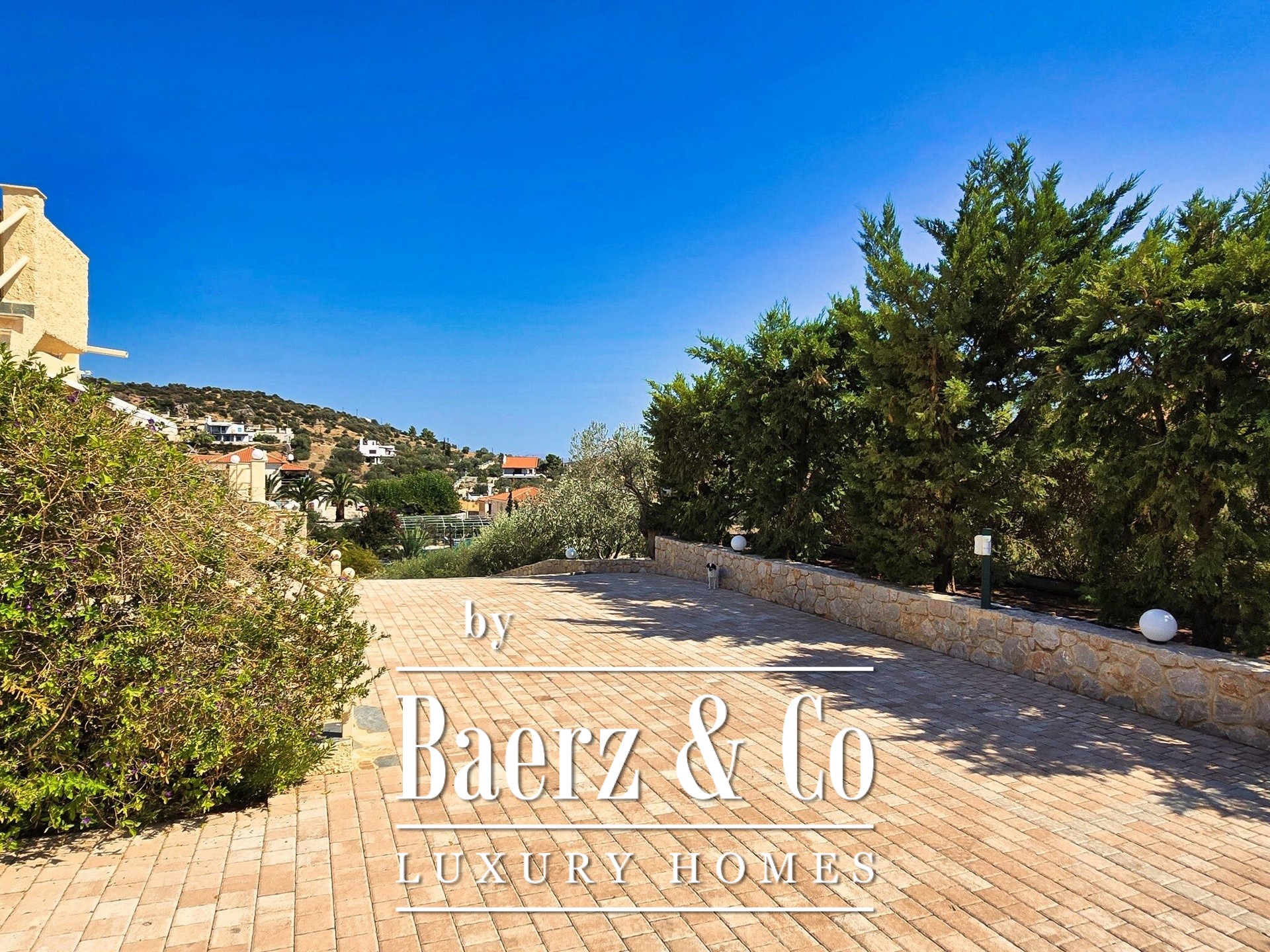 Tranquility, luxury and unobstructed sea views are the elements that characterize this unique residence, which is located just 500 meters from the nearest beach in the area, in a quiet and well-kept neighborhood characterized mainly by luxurious holiday homes.