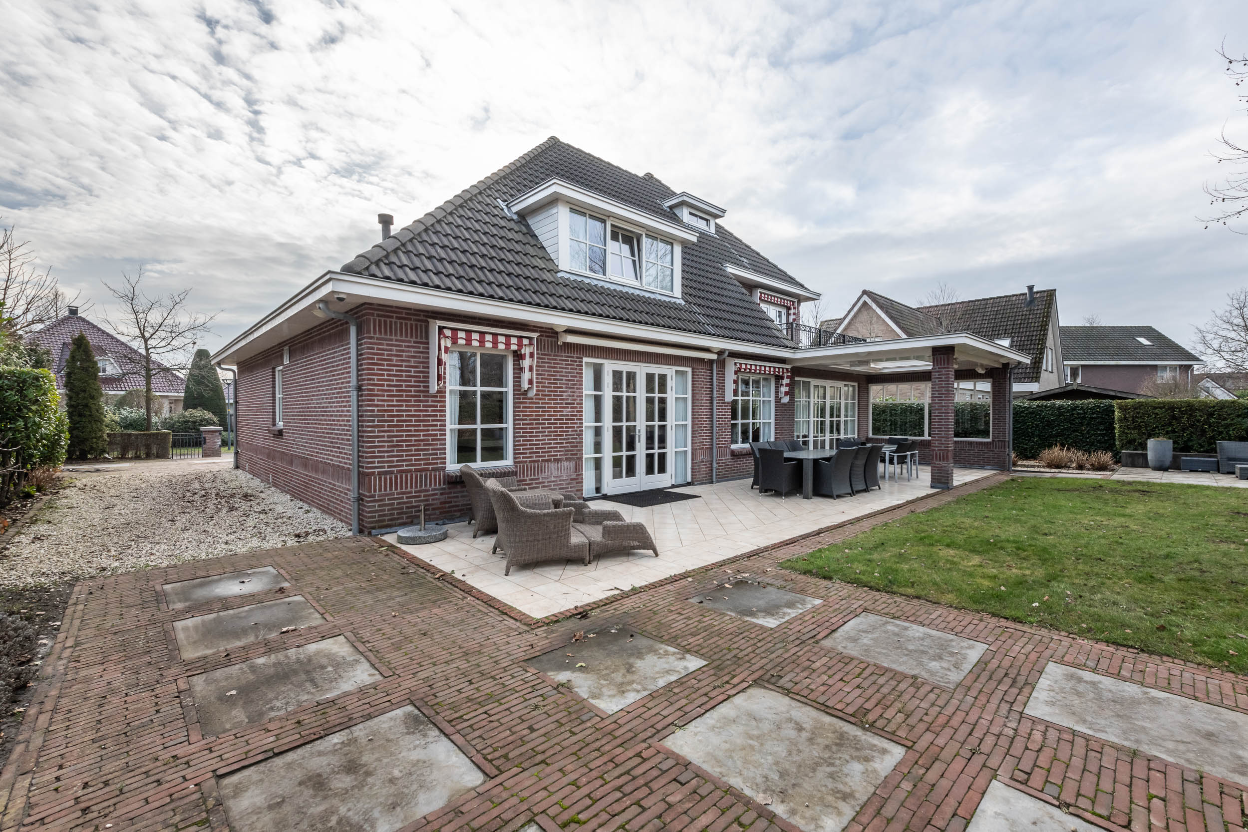 This unique villa was built in 2003 using traditional methods and high-quality materials. The villa features a front garden with a private driveway leading to the spacious double garage, while the rear offers a beautifully landscaped garden with multiple terraces and a partially covered veranda equipped with patio heating.