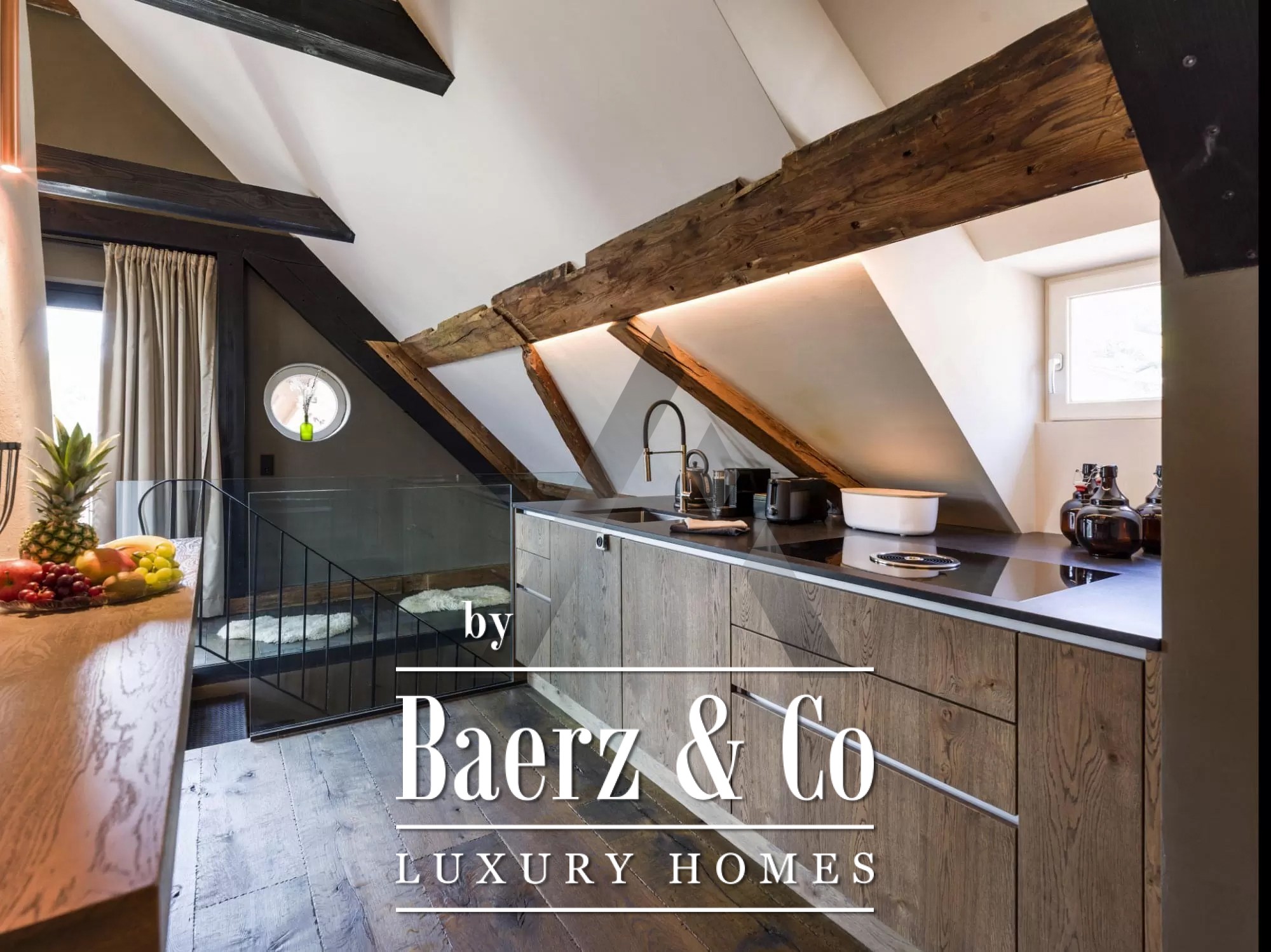 This penthouse apartment Hopfgarten im Brixental is set within a remarkable 300-year-old townhouse, poised at the edge of the tranquil pedestrian zone. Spanning approximately 194 m², the residence combines historic context with a modern sensibility. An airy open-plan living, dining, and kitchen space forms the heart of the home, anchored by a fireplace and extending out to a west-facing terrace. Here, panoramic views over the village offer a constant dialogue between indoors and the elemental landscape.