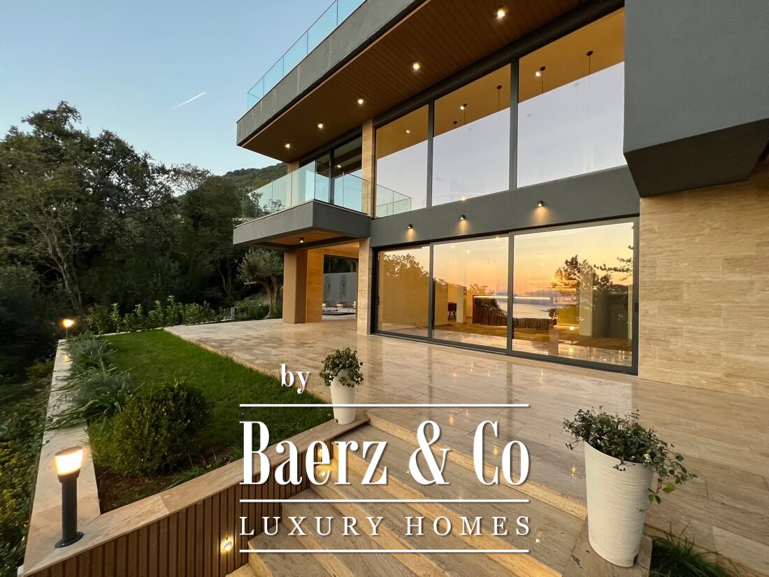 A new modern family villa with three bedrooms, terraces with panoramic sea views and with a rooftop pool is located in area on the coast of the Tivat Bay, between Kotor & Tivat. A unique location with its microclimate and beautiful nature on a hill above the Tivat airport, its south-western orientation provides sunshine all year round. A quiet and cozy area is protected from the tourist hustle and bustle, while it is only a 10-minute drive from the center of Tivat and Kotor, 5 minutes from the main shopping centres, the international Cambridge school and the airport. This place is very convenient for both permanent living and vacations.
