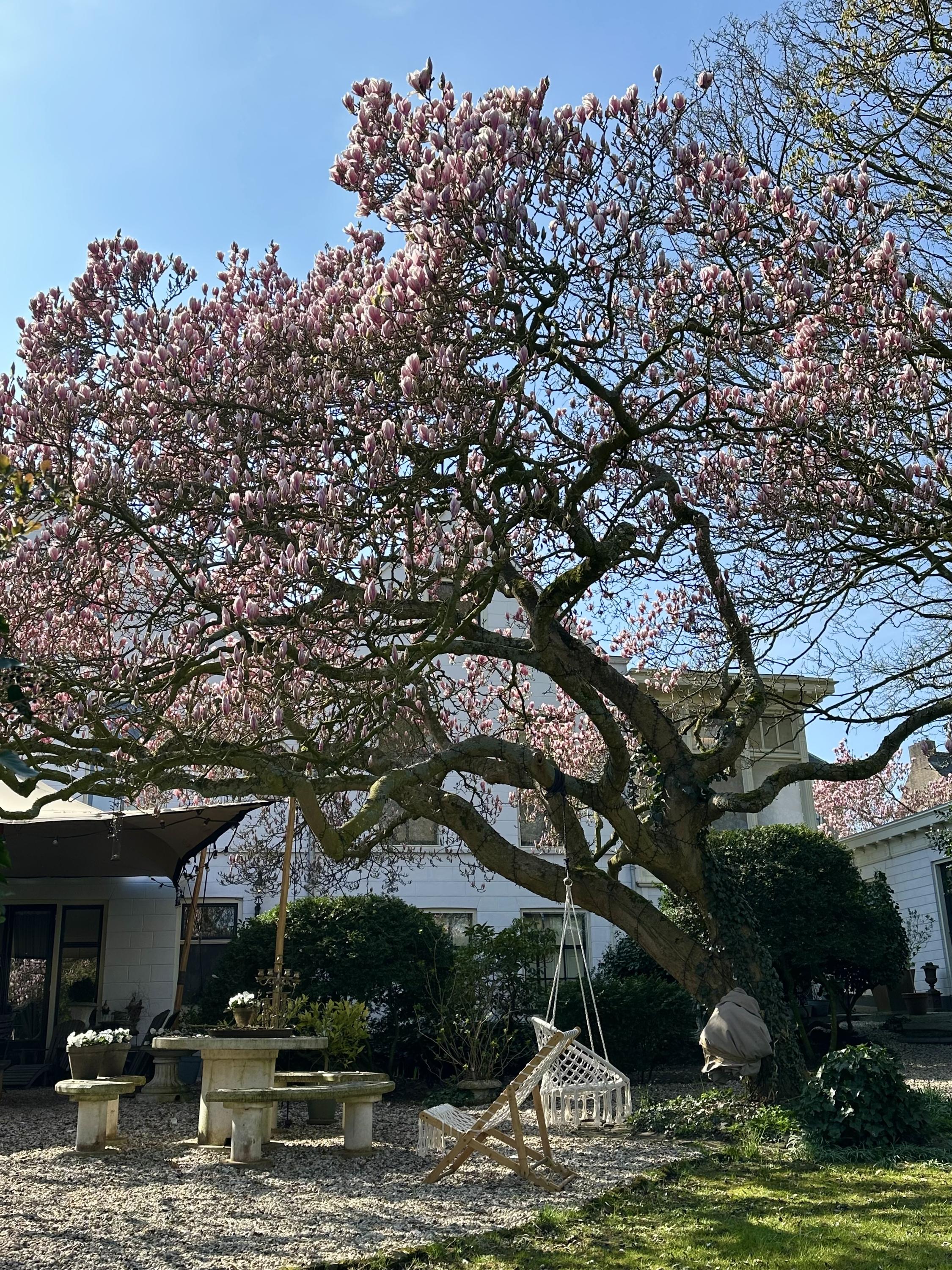 Characterful chestnut trees, winding gravel paths, a pond, and several terraces create a unique experience.