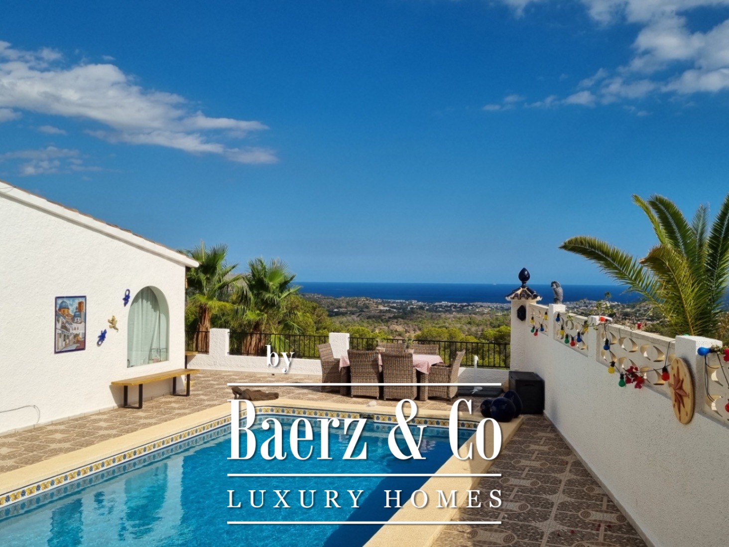 Outside, an array of palm and fruit trees create a sense of quiet seclusion. The private pool, dedicated parking, and refined garden spaces complete the sense of retreat. The outdoor kitchen enhances the Mediterranean atmosphere, making alfresco living effortless.