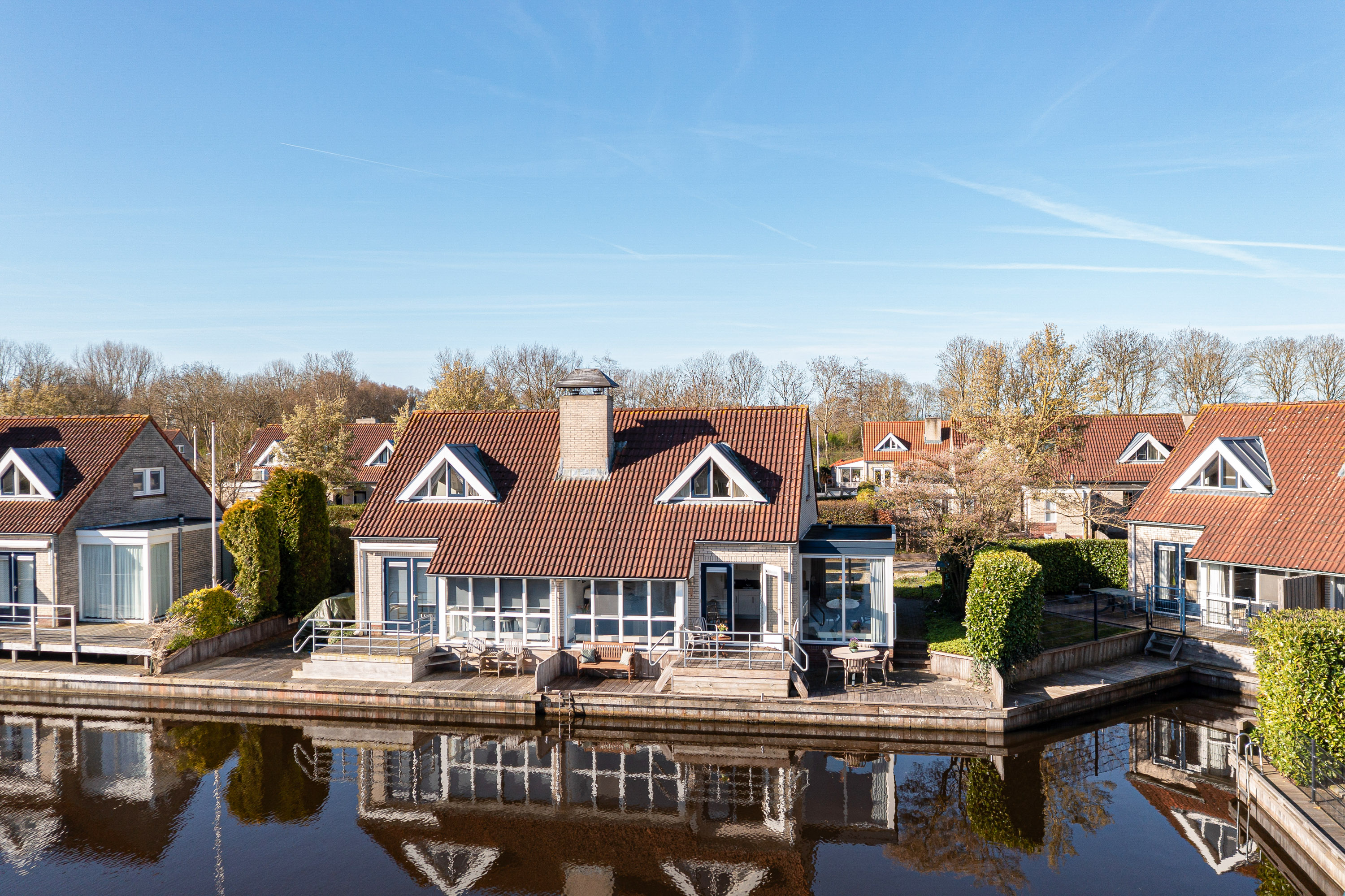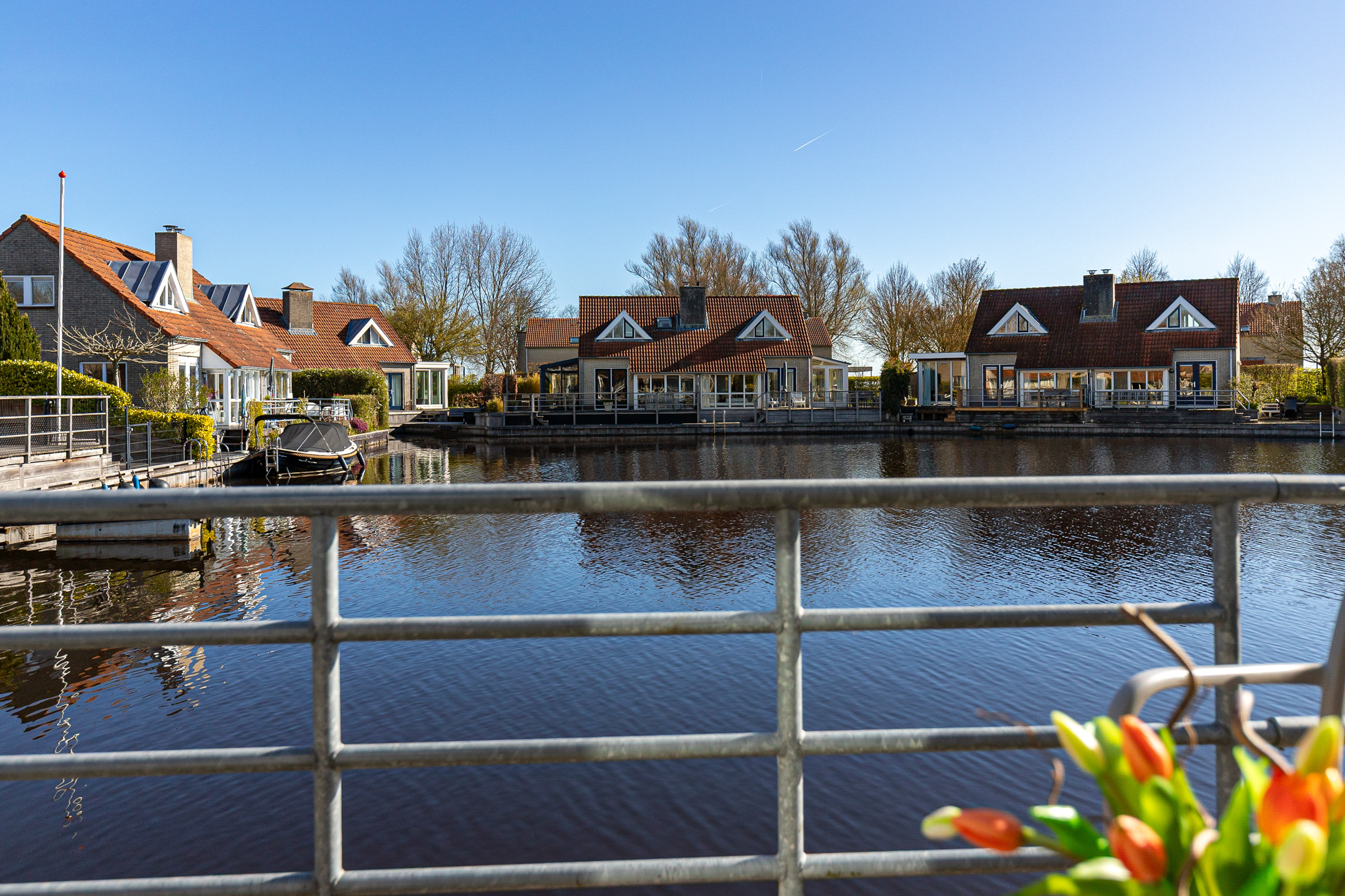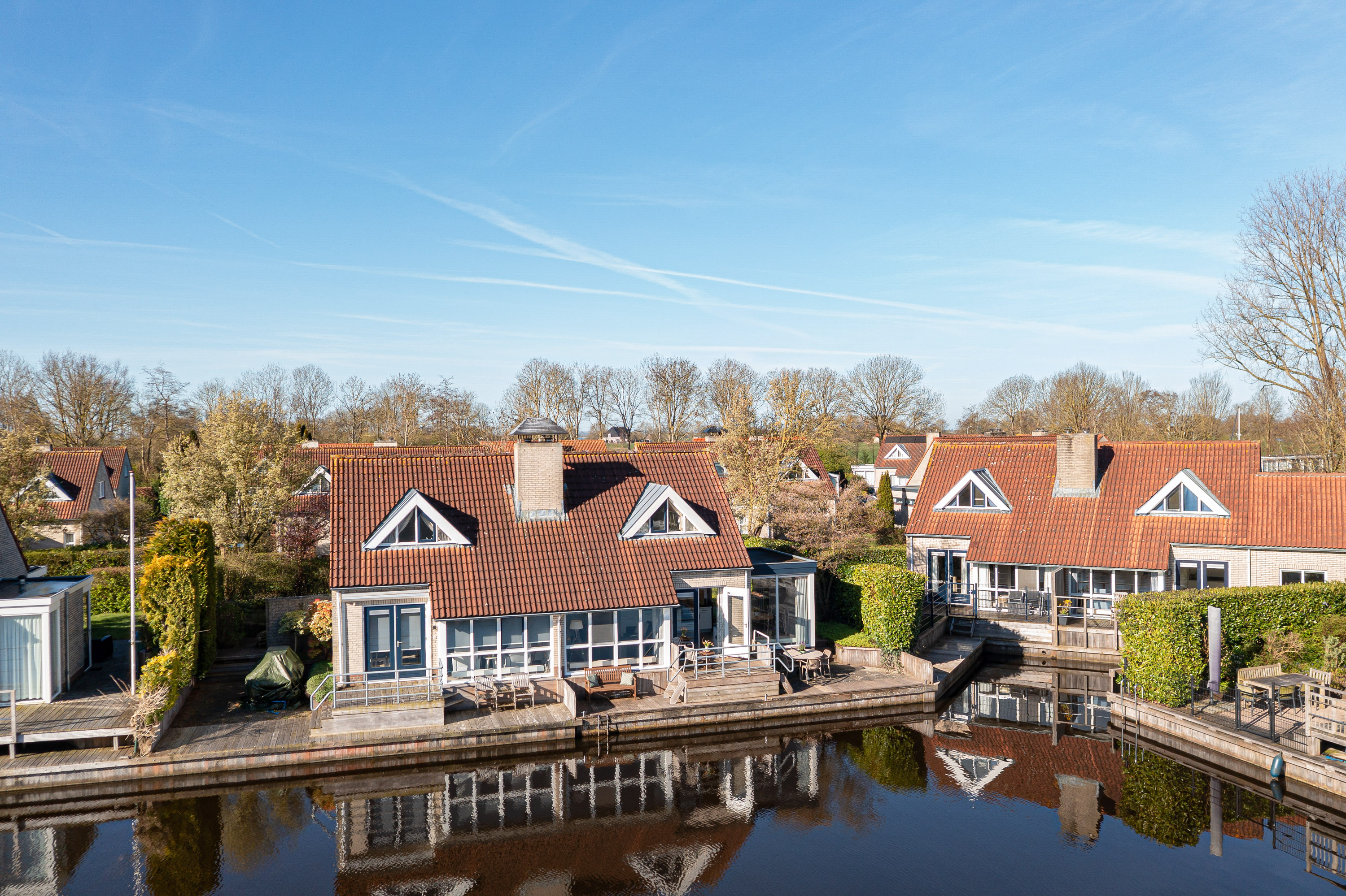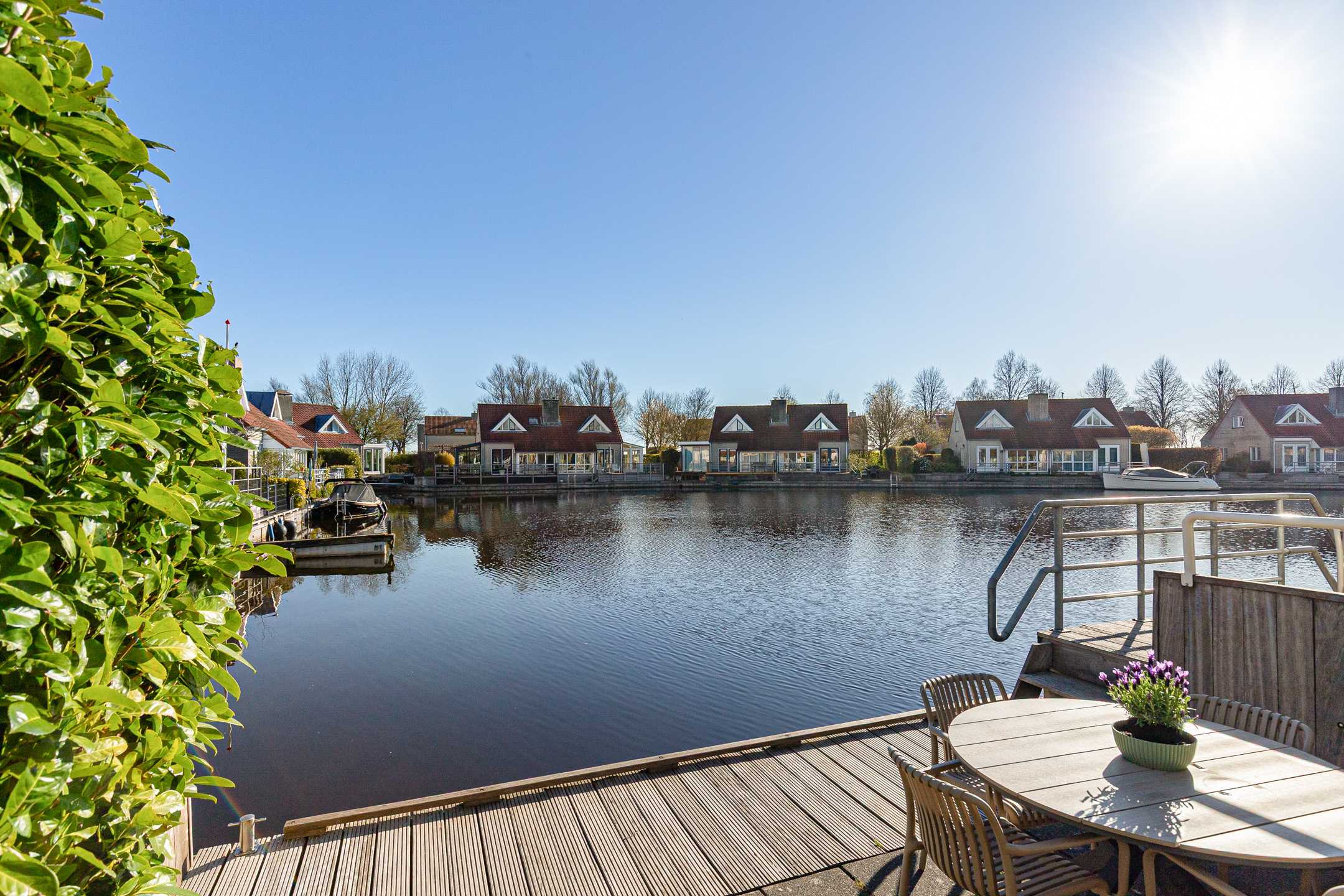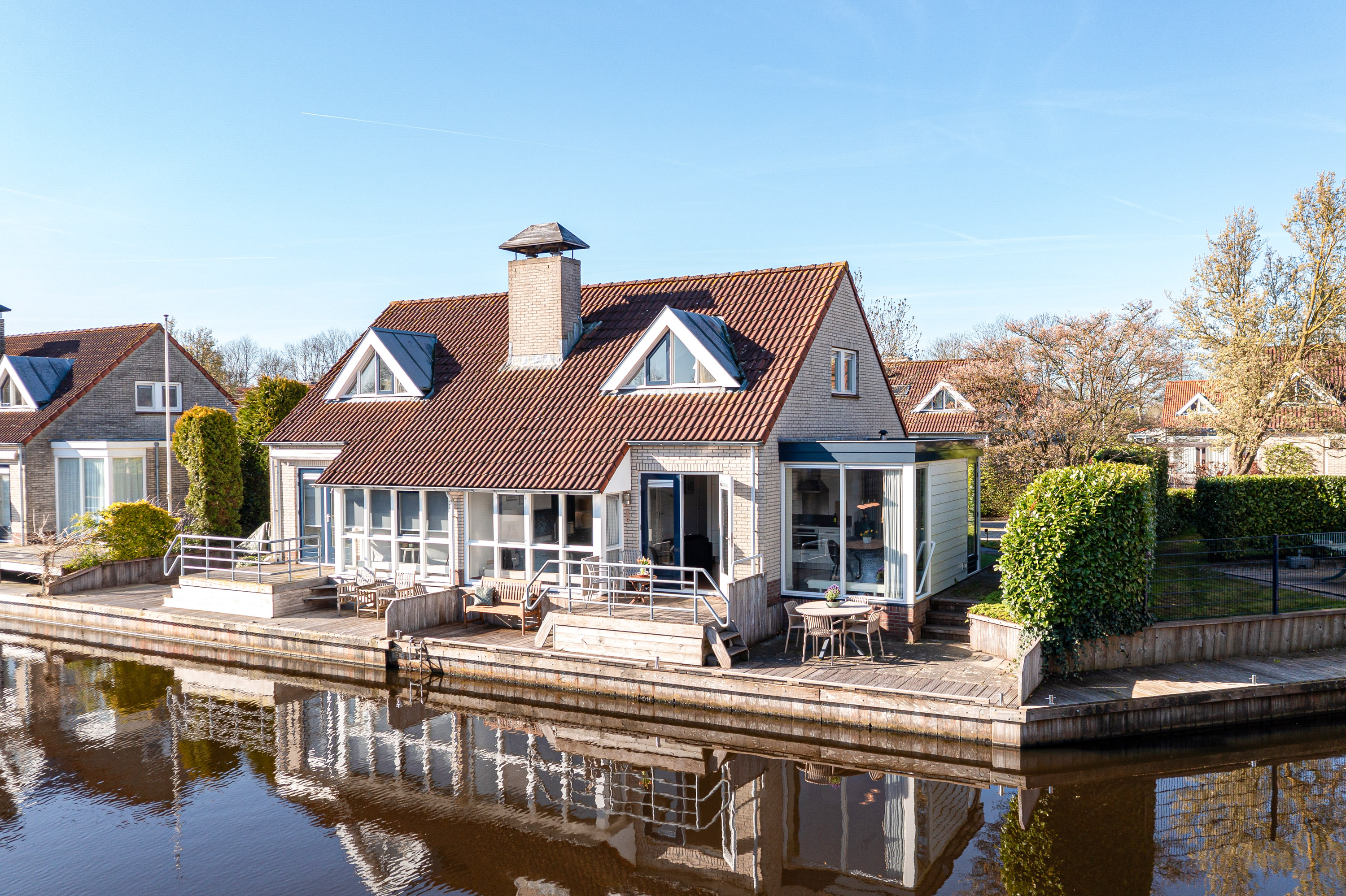 This waterfront house in Langweer captures the essence of waterside living—balancing discretion and ease with the freedom of direct water access, all in an atmosphere of understated luxury.