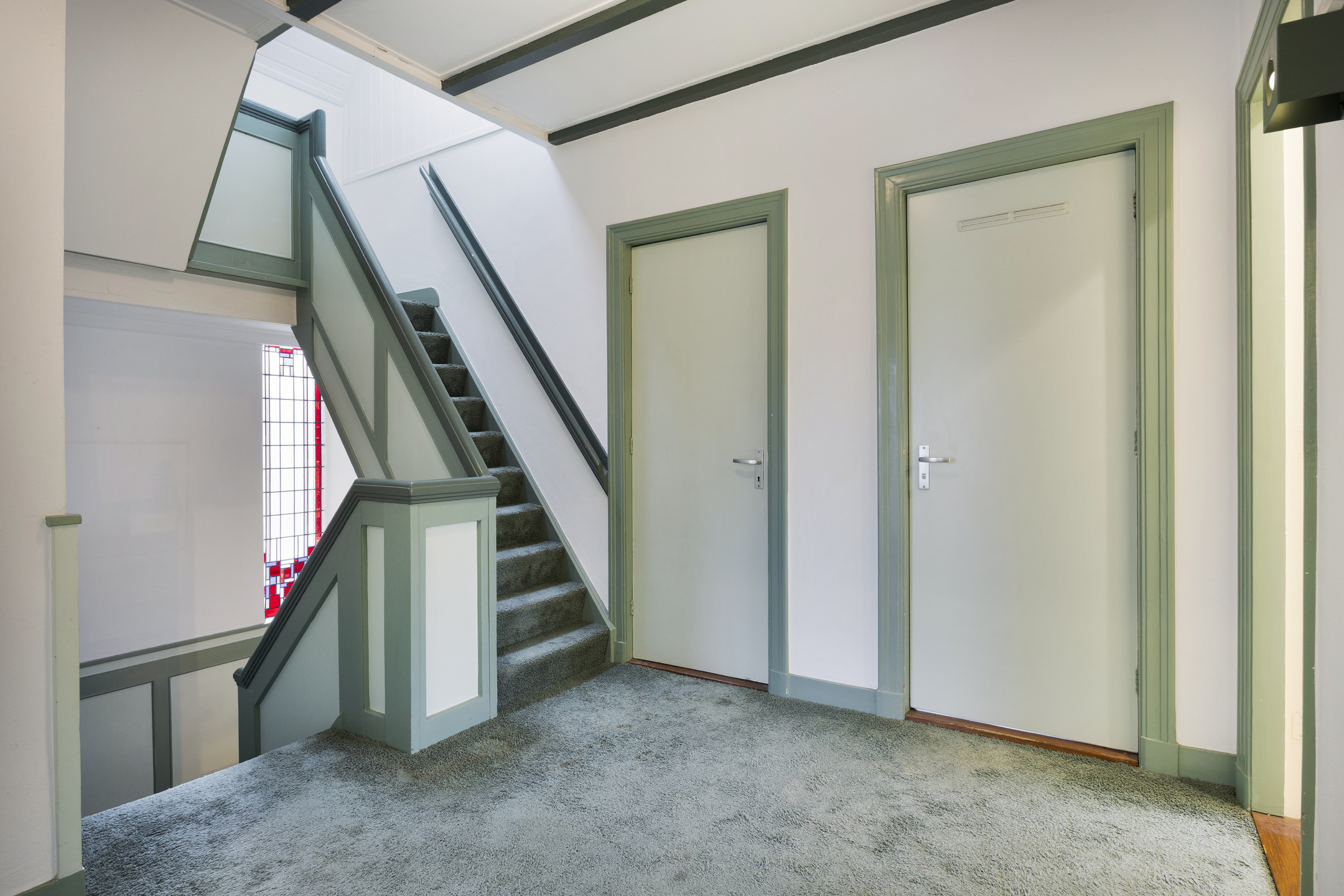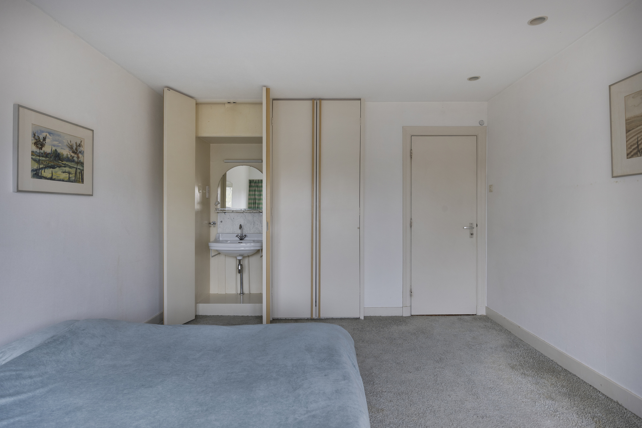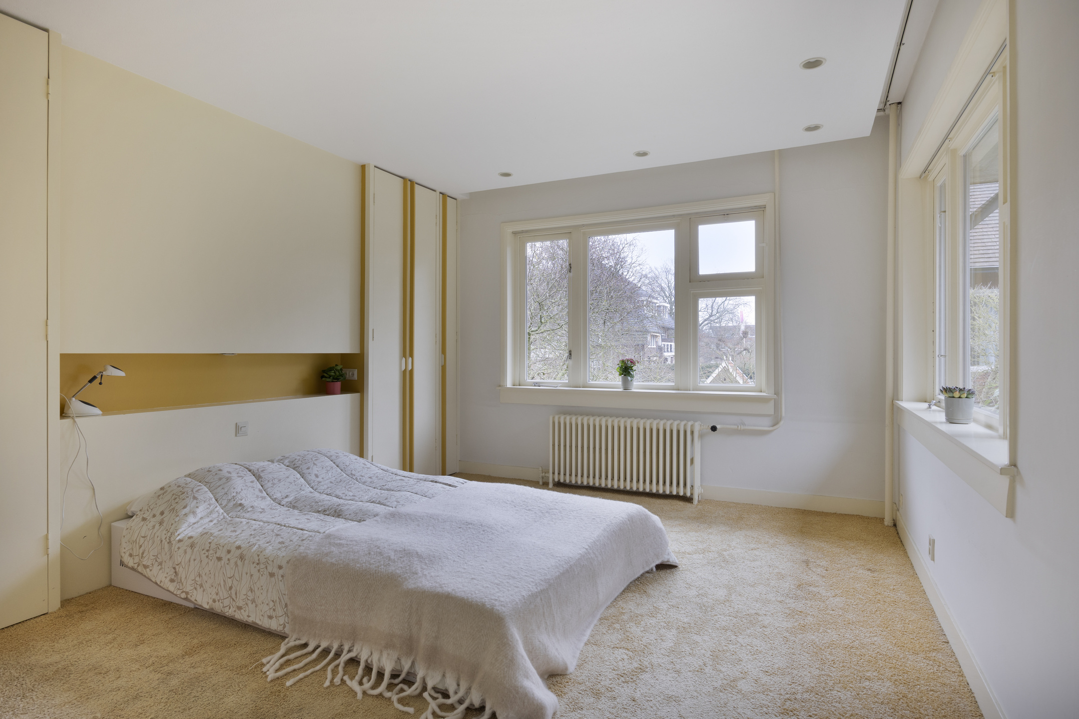 De centrale overloop biedt toegang tot alle kamers. Daarbij bevinden zich aan de voorzijde twee slaapkamers, waarvan één met openslaande deuren naar het ruime dakterras en weids uitzicht over de voortuin en Fruinlaan. Aan de achterzijde bevinden zich ook twee slaapkamers, waarvan één in gebruik is als de ouderslaapkamer met een direct verbinding naar de badkamer. Op de overloop bevindt zich nog een aparte wc met fonteintje. Trouwens, alle slaapkamers beschikken over een eigen wastafel met marmeren achterblad.