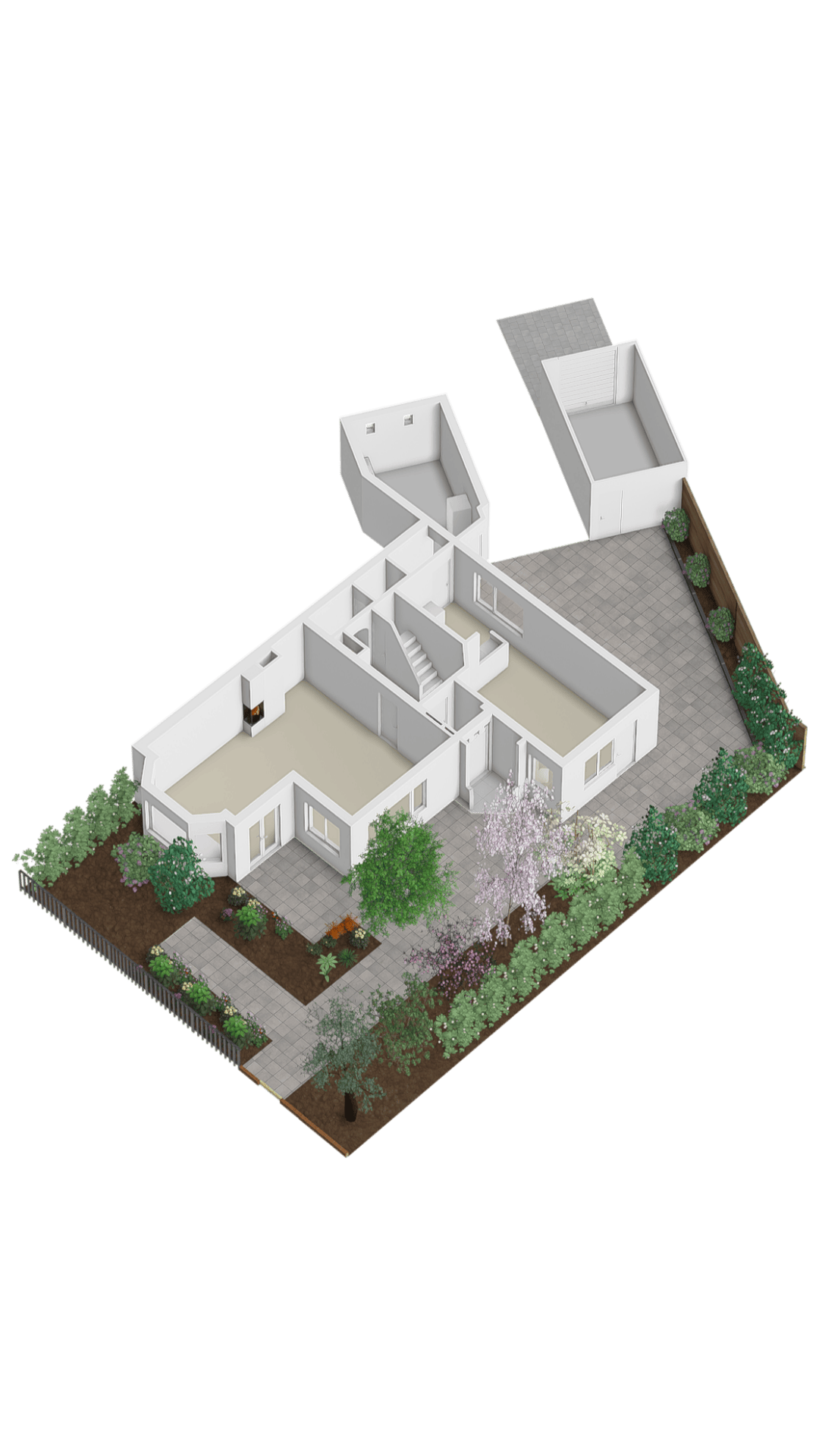 Hier wordt de bijzondere en speelse opzet van de woning goed zichtbaar. Het dak heeft verschillende nokken en dit is terug te zien in de indeling. Nu zijn er meerdere slaapkamers, een douche en ook nog een speelzolder die speels met elkaar in verbinding staan. Uiteraard kan dit nog naar eigen inzicht worden ingedeeld.